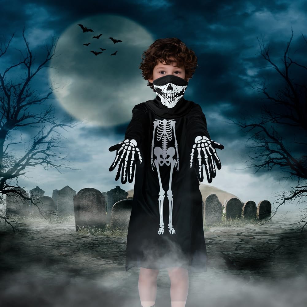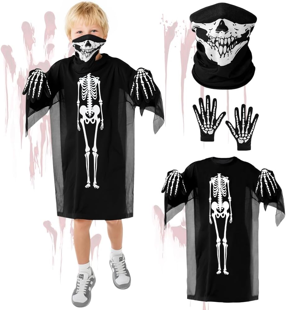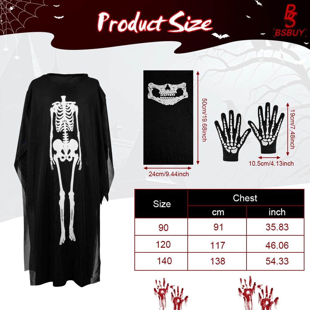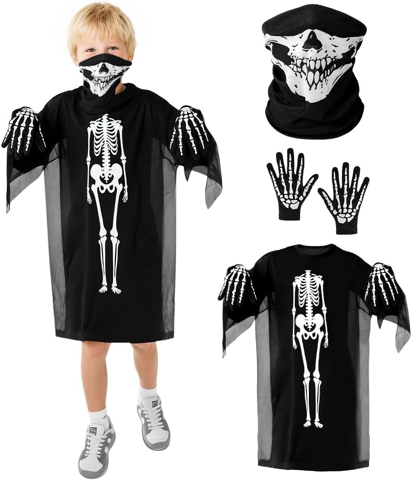 Costume Da Scheletro: Riceverai un costume da Morte composto da 3 pezzi, tra cui una tunica a forma di teschio, un paio di guanti a forma di teschio, una maschera a forma di teschio e un mantello a forma di teschio. I vari stili ti permettono di creare look diversi e adatti alle tue esigenze. Design Monopezzo: Ogni costume da Mietitore di Halloween presenta un design monopezzo, che lo rende facile e veloce da indossare e da togliere, rendendo facile il cambio d'abito, anche per ballare e posare. Consulta la tabella delle taglie nelle immagini prima di ordinare per selezionare la taglia giusta. Design a Forma di Teschio: Questo costume da Mietitore per bambini presenta un design classico con tunica, perfetto per qualsiasi festa. La maschera presenta una stampa a teschio e i guanti sono stampati con teschi bianchi per un effetto realistico. Questo costume da fantasma urlante può essere indossato anno dopo anno, regalando momenti divertenti e spettrali. Tessuto di alta Qualità: Questo costume da fantasma urlante è realizzato in 100% poliestere, traspirante e confortevole, con molta elasticità per una vestibilità comoda. Questa tunica da Mietitore presenta un'immagine inquietante del Mietitore e maniche con fantasie fantasiose. Occasioni Adatte: Questo spettrale costume da fantasma è perfetto per feste di Halloween, Natale, festival letterari, feste a tema Mietitore, costumi horror, carnevali, cosplay del Mietitore, feste a tema e balli in maschera. È anche un ottimo regalo per bambini e bambine.
