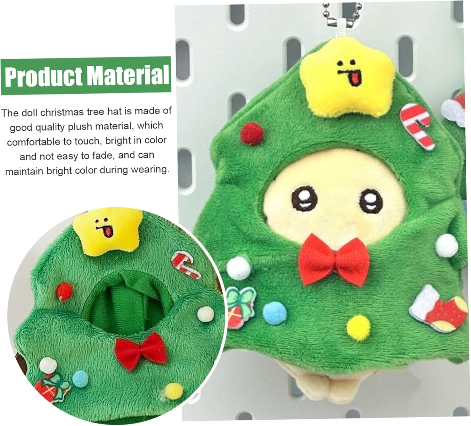 Decorazioni natalizie versatili: funzionano non solo come copricapo per bambole, ma anche come adorabili decorazioni natalizie da appendere agli alberi di Natale, fondendo la moda delle bambole con la creatività dell'arredamento della casa Accessorio unico per le vacanze: aggiunge un tocco unico e affascinante alle collezioni di bambole, rendendolo un accessorio stagionale ideale per i collezionisti che cercano costumi per bambole a tema natalizio Cappelli festivi per bambole: cappelli per bambole appesi al cappello verde dell'albero di Natale cattura perfettamente l'allegria natalizia, migliorando qualsiasi costume da bambola con un tocco festivo e uno stile stagionale per le celebrazioni natalizie Facile da montare: progettato per adattarsi in modo sicuro e confortevole a una varietà di teste di bambole, questo cappello di peluche consente di indossarlo senza problemi senza danneggiare i vestiti o le parrucche delle bambole. Design morbido e confortevole: realizzato con morbidi materiali di peluche natalizi, questo cappello garantisce una consistenza delicata adatta a delicati vestiti per bambole, aggiungendo allo stesso tempo un accogliente fascino natalizio