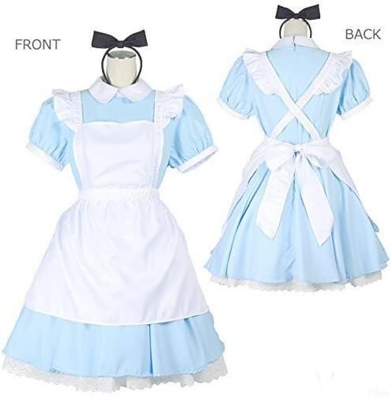Materiale in poliestere, buona qualità. Nel set sono presenti vestito + grembiule + fascia per capelli. Taglia M o 36 taglia francese, per circonferenza massima torace 85 CM, circonferenza massima vita 70 CM, larghezza spalle 37 CM, lunghezza abito 80 CM. Taglia L o 38 taglia francese, per circonferenza massima torace 90 CM, circonferenza massima vita 75 CM, larghezza spalle 39 CM, lunghezza abito 85 CM. Taglia XL o 40 taglia francese, per circonferenza massima torace 95 CM, circonferenza massima vita 80 CM, larghezza spalle 41 CM, lunghezza abito 90 CM. Taglia XXL o 42 taglia francese, per circonferenza massima torace 100 CM, circonferenza vita massima 85 CM, larghezza spalle 43 CM, lunghezza abito 95 CM.