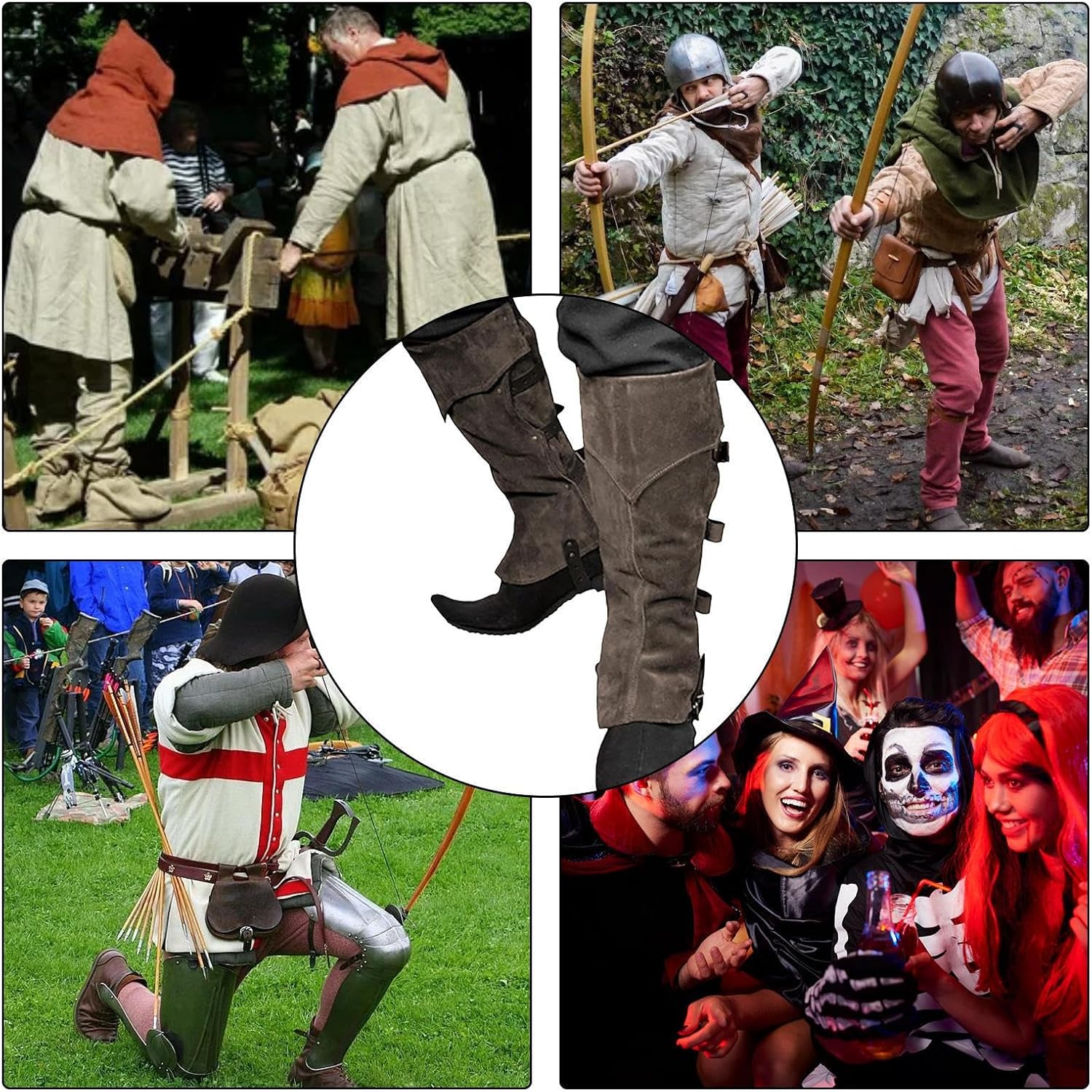 Calzature cosplay perfette: solleva le tue calzature cosplay medievali con robusti ciccioli in ecopelle, in stile per completare le cavigliere guerriere mentre servono come stivali alti al ginocchio per qualsiasi tema costume da cavaliere Soluzione leggera: costumi salvaspazio realizzati per essere legwear leggerissimi, offrono una facile portabilità con funzionalità di usura rapida per un uso senza interruzioni all'aperto Comoda copertura per le gambe: la combinazione di robusto tessuto spazzolato e materiale flessibile garantisce una copertura delle gambe traspirante e confortevole, fornendo un supporto affidabile e movimenti illimitati per ogni occasione senza compromettere lo stile Sistema di vestibilità regolabile: progettati con un sistema di dimensionamento incluso, questi copriscarpe si adattano perfettamente a varie forme del corpo, offrendo misure versatili e fasce regolabili per una vestibilità perfetta durante qualsiasi performance o evento Molteplici occasioni: trasforma il tuo legwear teatrale utilizzando coprigambe ispirati allo steampunk, adatti come accessori pronti per il servizio fotografico e pezzi adattabili per costumi multi-evento, eccellendo nell'estetica pronta per i festival