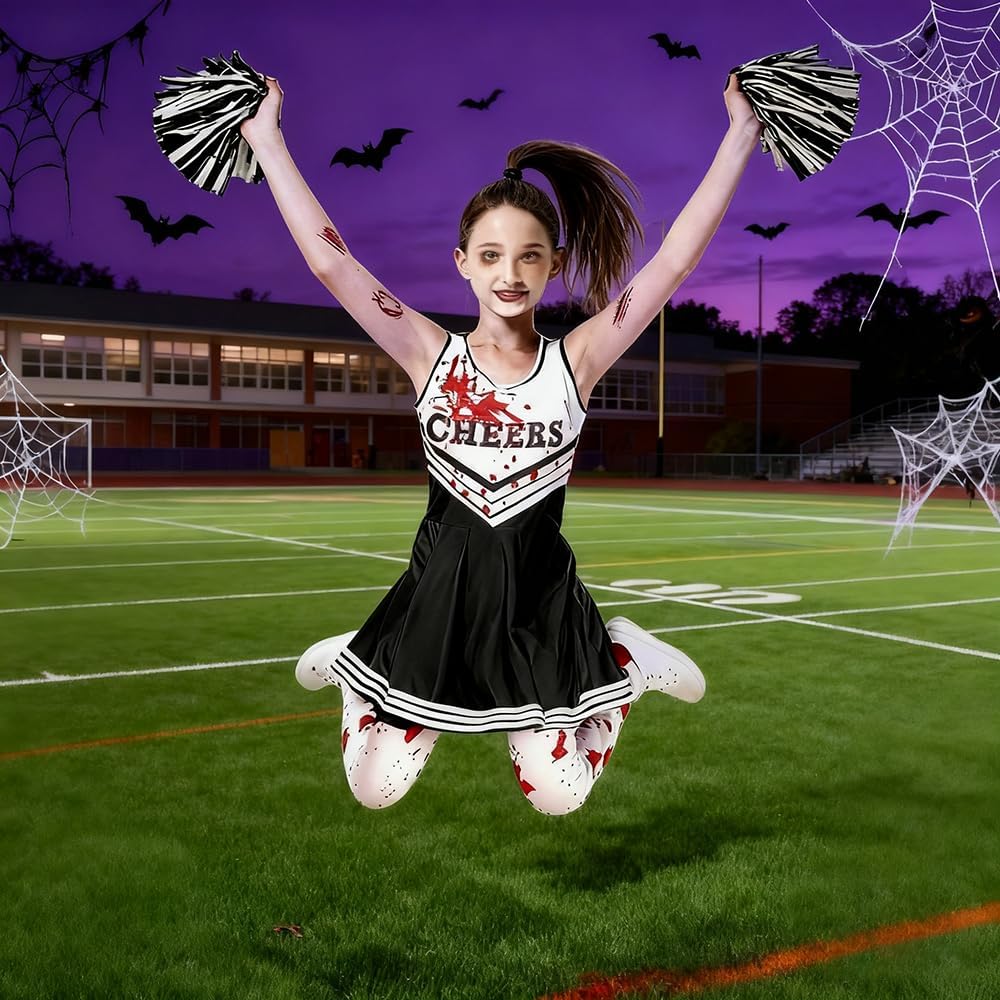 Costume da cheerleader per bambine, vestito da cheerleader per bambini, costume da cheerleader con accessori da cheerleader per carnevale, Halloween, travestimenti, feste a tema