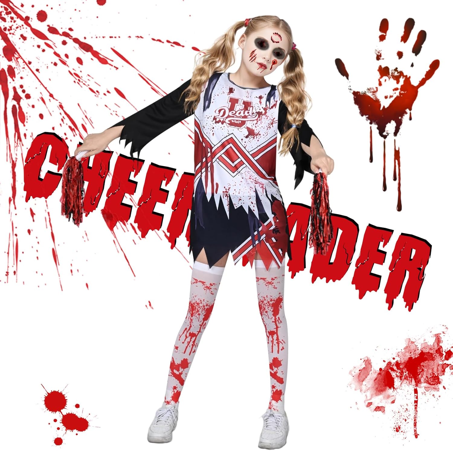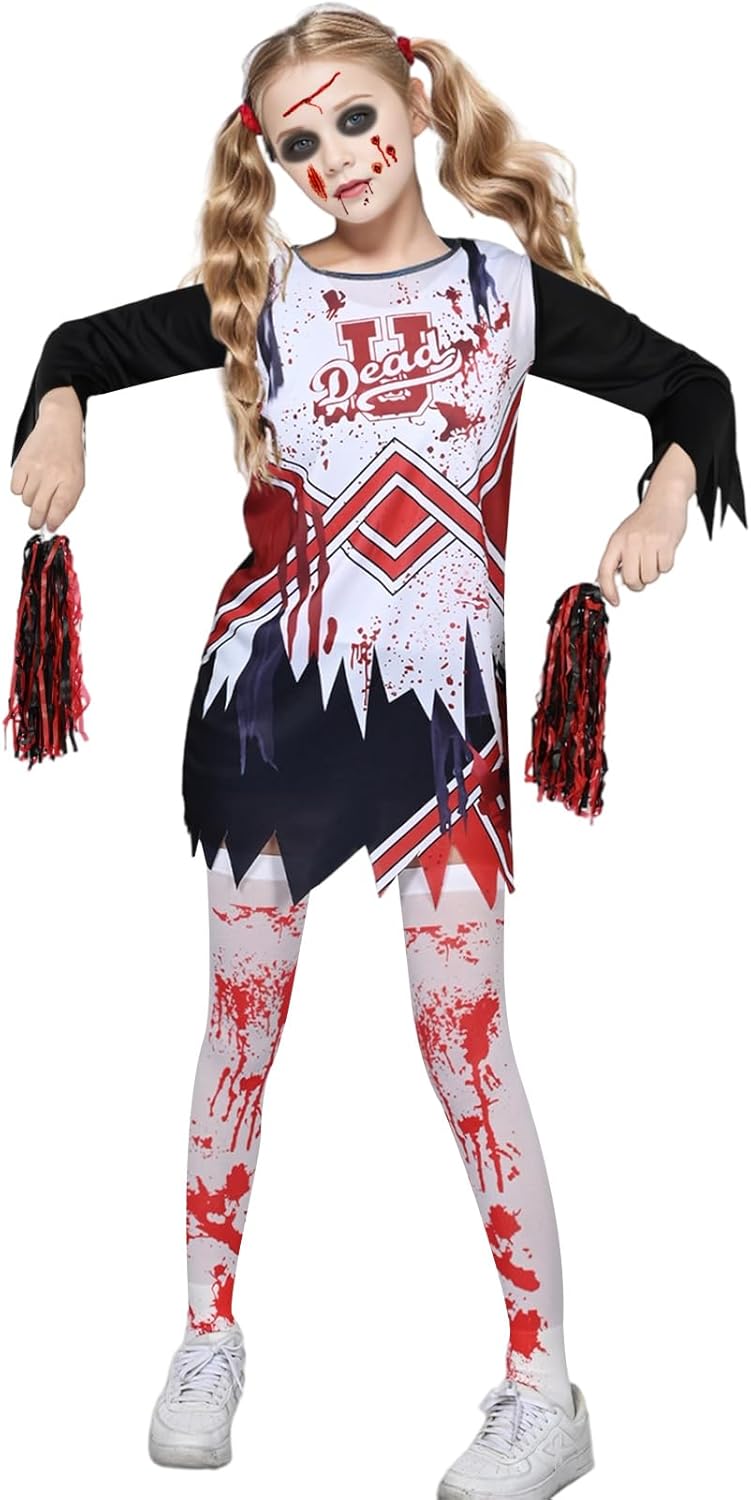 Descrizione prodotto Il set include: lo stile 1 include 1 maglietta, 1 gonna, 2 fiocchi, 2 pompon, 1 calzino, 2 accessori e 10 adesivi; Lo stile 2 include 1 maglietta, 1 gonna, 1 calze, 2 pompon, 2 accessori e 10 adesivi. Ideale per le cheerleader che amano lo stile horror. Avviso di sicurezza Pericolo di soffocamento: piccole parti, non per bambini sotto i 3 anni o persone che tendono a mettere in bocca oggetti non commestibili.