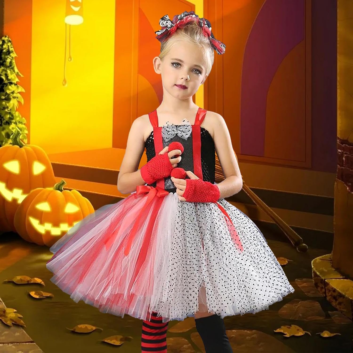 Materiale di alta qualità: il tuo bambino adorerà vestirsi con questo costume da clown. È realizzato in poliestere, nylon e tulle di alta qualità ed è morbido e delicato sulla pelle. Si consiglia il lavaggio a mano per un uso e una pulizia duraturi. Accattivante esperienza da clown: con una favolosa unità rossa e nera a forma di clown, questo set in maschera permetterà al tuo bambino di divertirsi con il gioco di ruolo. Sembrerà elegante e giocosa e sentirà la gioia del cosplay. Il set è composto da 1 paio di guanti, 1 paio di fiori per la testa e 1 paio di calzini. Successo di Halloween: spaventa e sorprendi i tuoi amici ad Halloween con il nostro set di costumi da clown per bambini. Preparatevi per una serata indimenticabile e divertente! REGALO PERFETTO: Se la tua bambina ama gli anime e i clown, questo costume da clown per bambini è il regalo di compleanno perfetto per lei. È adatto a ragazze con un'altezza di 90-160 cm (età 2-12). Sarà emozionata e non vedrà l'ora che arrivi Halloween quando potrà indossare questo adorabile costume e divertirsi con i suoi amici. Per la maggior parte delle occasioni: se vuoi travestirti da clown per Natale, Halloween, feste di compleanno o eventi culturali, con questo costume da clown potrai mostrare il tuo talento in diversi luoghi. È ottimo anche per eventi, fotografia, vita quotidiana, feste, gite, ecc.