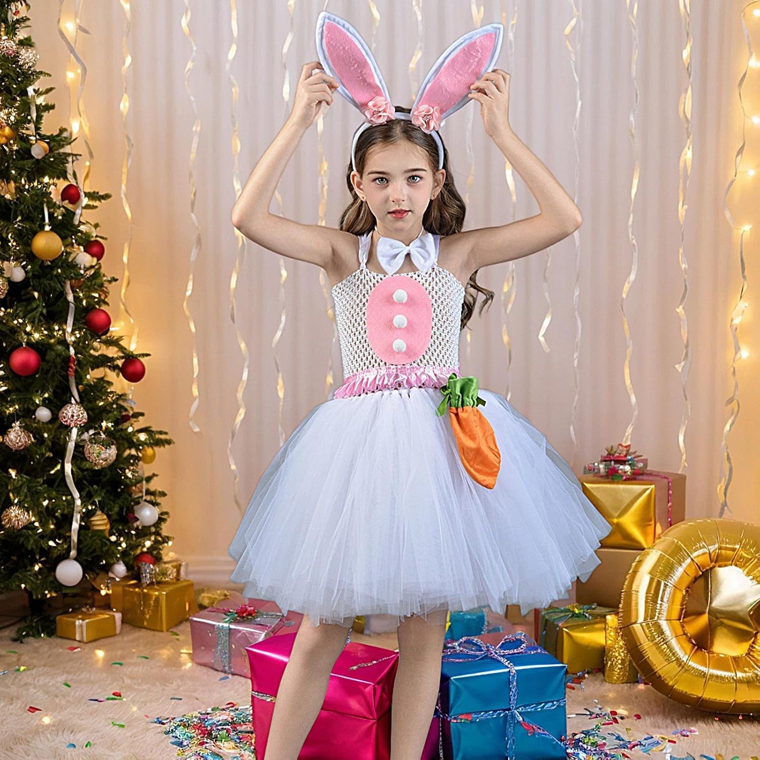 Trasforma il tuo bambino in un adorabile coniglietto con il nostro costume da coniglietto carinos e confortevole per i bambini. Questo set completo include 1 abito, per la creazione di un'atmosfera festosa durante Halloween o qualsiasi festa in costume. Lascia che tuo figlio salta sotto i riflettori e goditi il divertimento! Specifiche: Materiale: poliestere + nylon + tulle Dimensione: altezza consigliata 90-160 cm Età: 2-12 anni Peso: circa 280 g Lista imballaggio: 1*vestito 1*borsa di carote 1*Bunny Headband 1*papillon 1*Bunny Tail