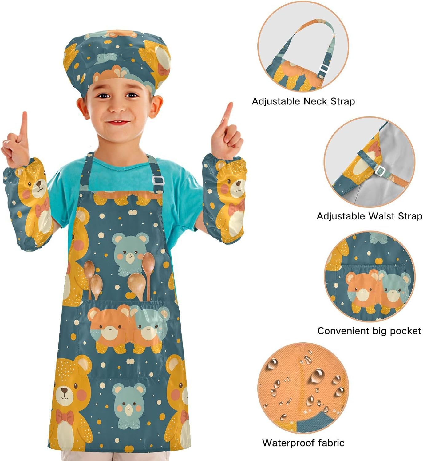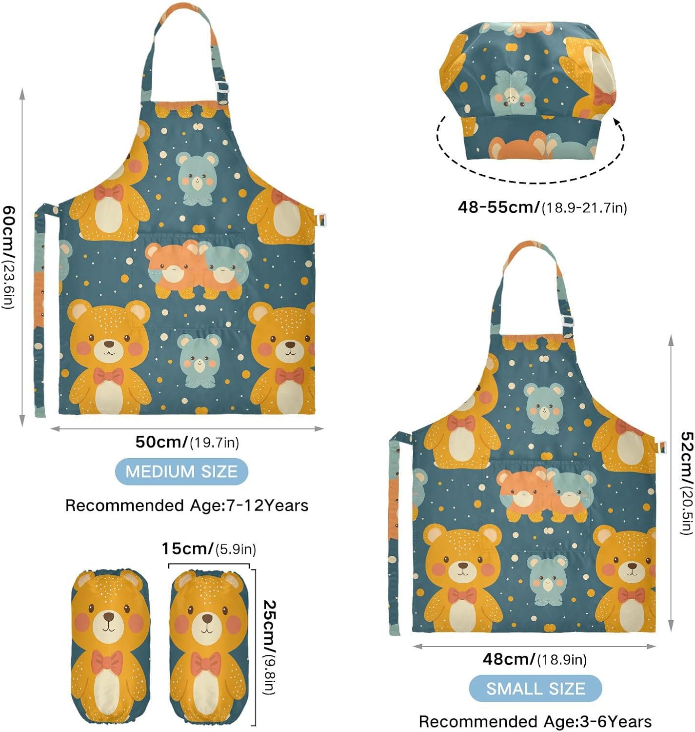 Dimensioni consigliate: S: 48 x 52 cm (età 3-6 anni). M: 50 x 59,7 cm (7-12 anni). La taglia può adattarsi alla maggior parte dei ragazzi e delle ragazze. Si prega di scegliere la taglia giusta in base alle dimensioni specifiche. Materiale di alta qualità: i grembiuli per bambini sono realizzati in poliestere, morbido tessuto impermeabile twill 290, dando una sensazione confortevole quando si indossa. Impermeabile Caratteristica: Realizzato in poliestere, il set da cucina per bambini da 3 pezzi è impermeabile. I bambini possono sentirsi liberi di imparare a cucinare e dipingere come preferiscono e possono mantenere i loro vestiti puliti allo stesso tempo. Ampia applicazione: il set di grembiule per bambini è adatto per l'insegnamento della pittura e l'insegnamento della cucina, può essere applicato anche per corsi d'arte, costumi di Halloween, oggetti di scena teatrali, feste di compleanno e le belle attività della decorazione per feste a tema. Facile da pulire: il nostro prodotto è impermeabile e a prova di fuoriuscite. Basta strofinare, lavare in lavatrice e lavare a mano.