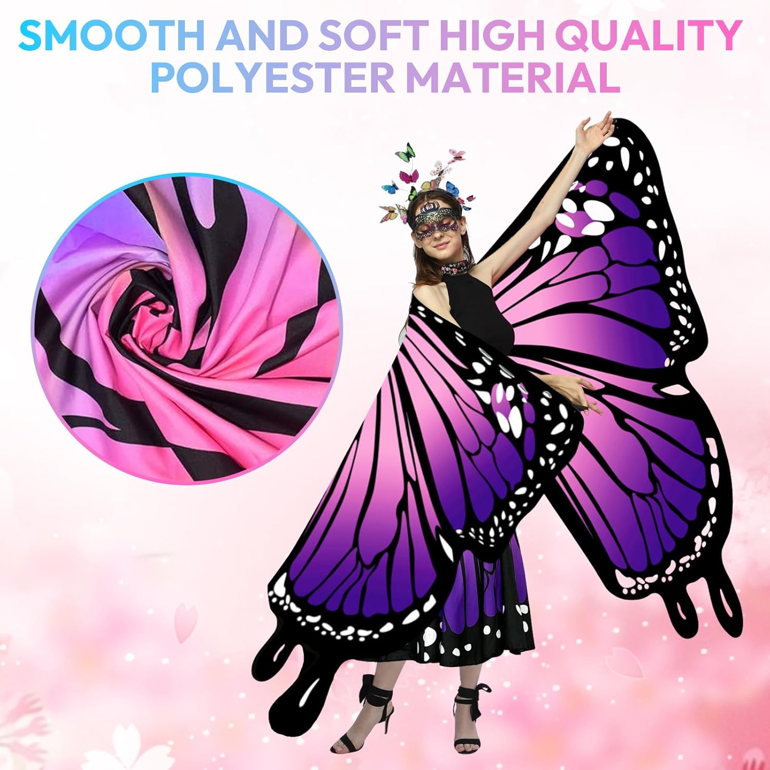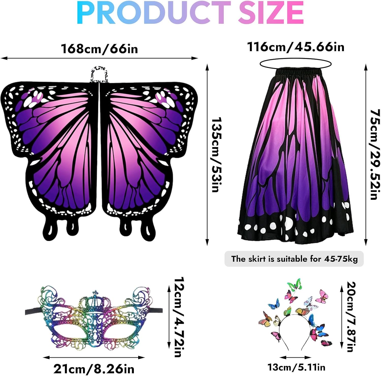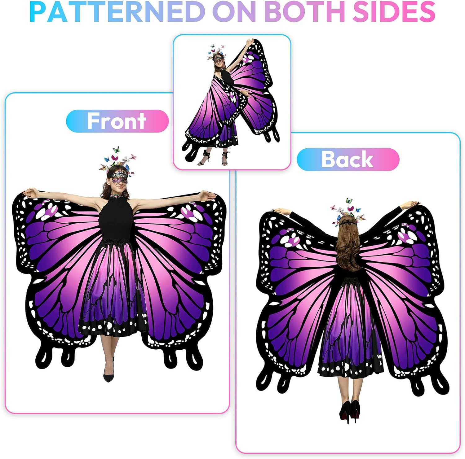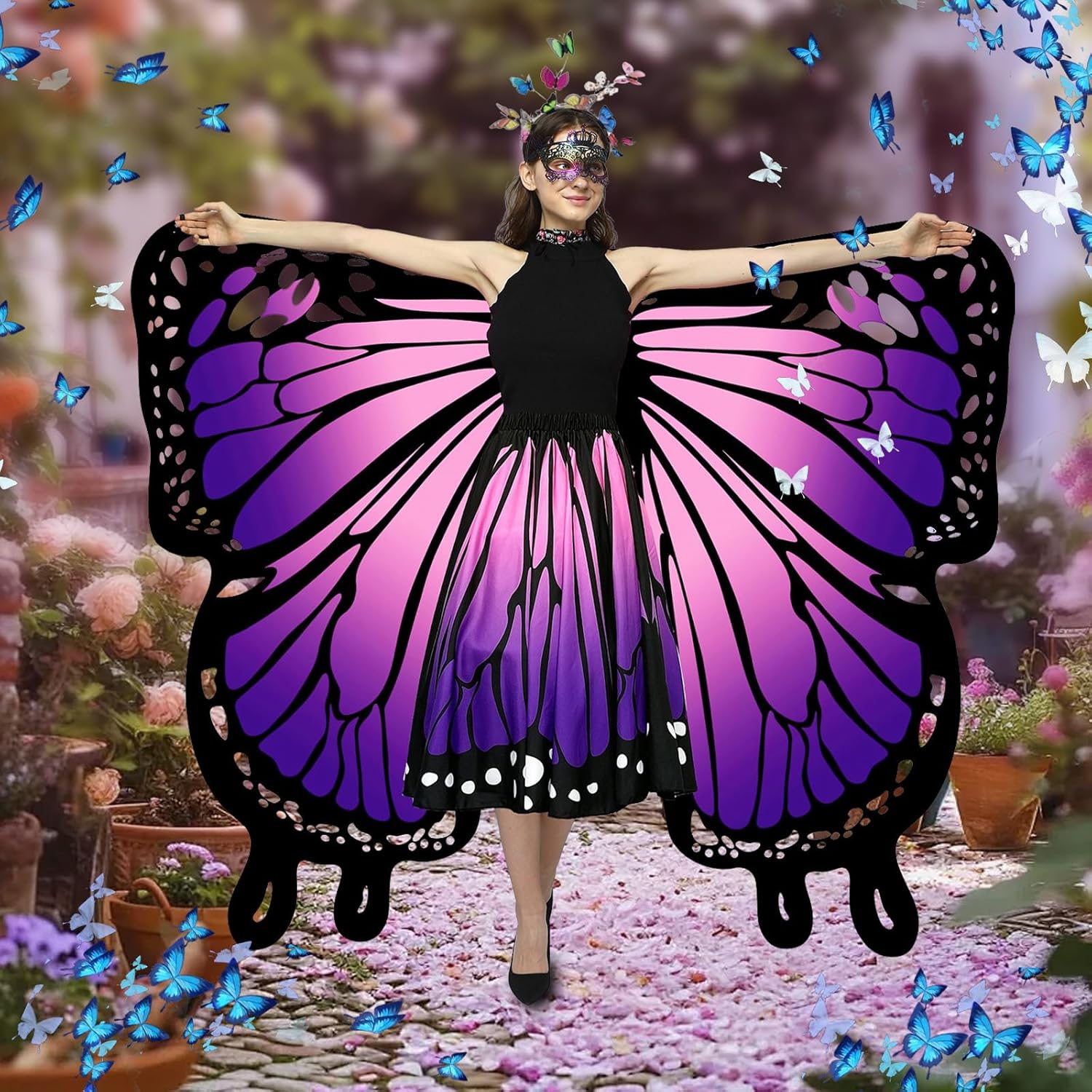 Costume da donna, con stampa fronte/retro, con ali di farfalla, set per adulti, con gonna da donna, farfalla, maschera, ali di fata, costume da farfalla per carnevale