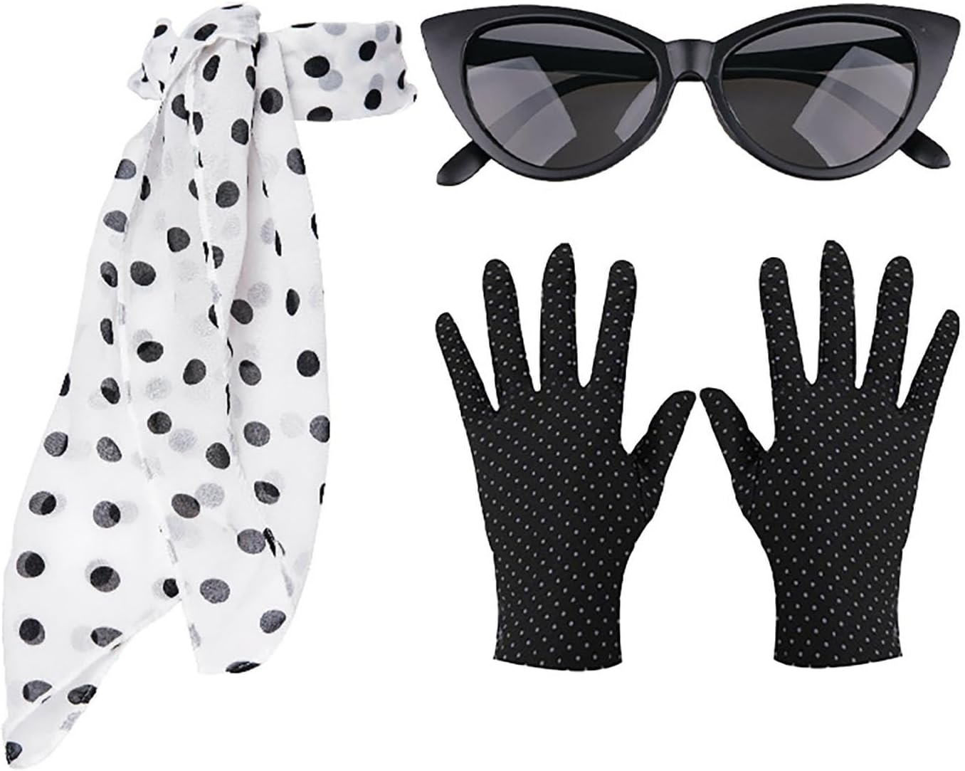 Articoli perfetti per le feste: puoi accessoriare il tuo outfit con questi articoli eleganti che includono collane, orecchini, sciarpe, occhiali e guanti. Sono progettati per completare qualsiasi costume degli anni '50 e farti risaltare. Eleganza a pois: il motivo a pois di questo accessorio per costume da donna anni '50 è una scelta sofisticata ed elegante che evoca lo stile degli anni '50. Puoi ottenere un look sorprendente accessoriandolo con occhiali cat-eye e una cintura. Questo outfit ti farà stupire in ogni caso. Regola facilmente le dimensioni: questi per costumi da donna trasformeranno l'outfit in stile vintage anni '50. La sciarpa di chiffon può essere legata sulla testa o attorno al collo e la fascia ha un filo metallico flessibile per creare look diversi. Facile da lavorare: questi ti trasporteranno negli anni '50, con il loro design vivace e sofisticato. Puoi affascinare le persone e mostrare il tuo gusto con questi . Sono facili da usare e si abbinano a qualsiasi outfit, che si tratti di un vestito, di una gonna o di un look casual. Ampia varietà di applicazioni: questi ti aiuteranno a ricreare l'aspetto degli anni '50. Puoi indossarli per Halloween, feste di compleanno anni '50, anniversari o qualsiasi festa a tema anni '50 e divertirti alla grande.