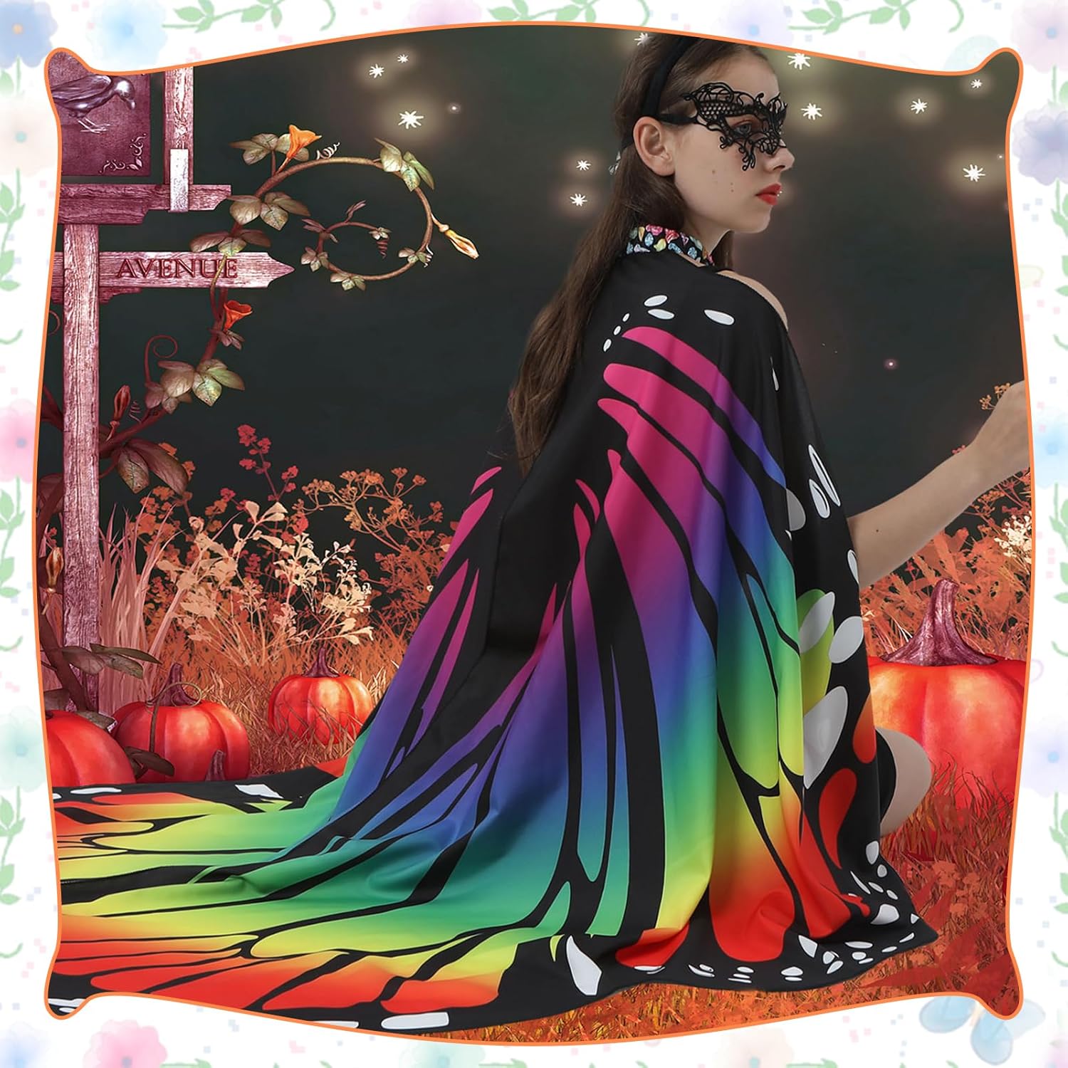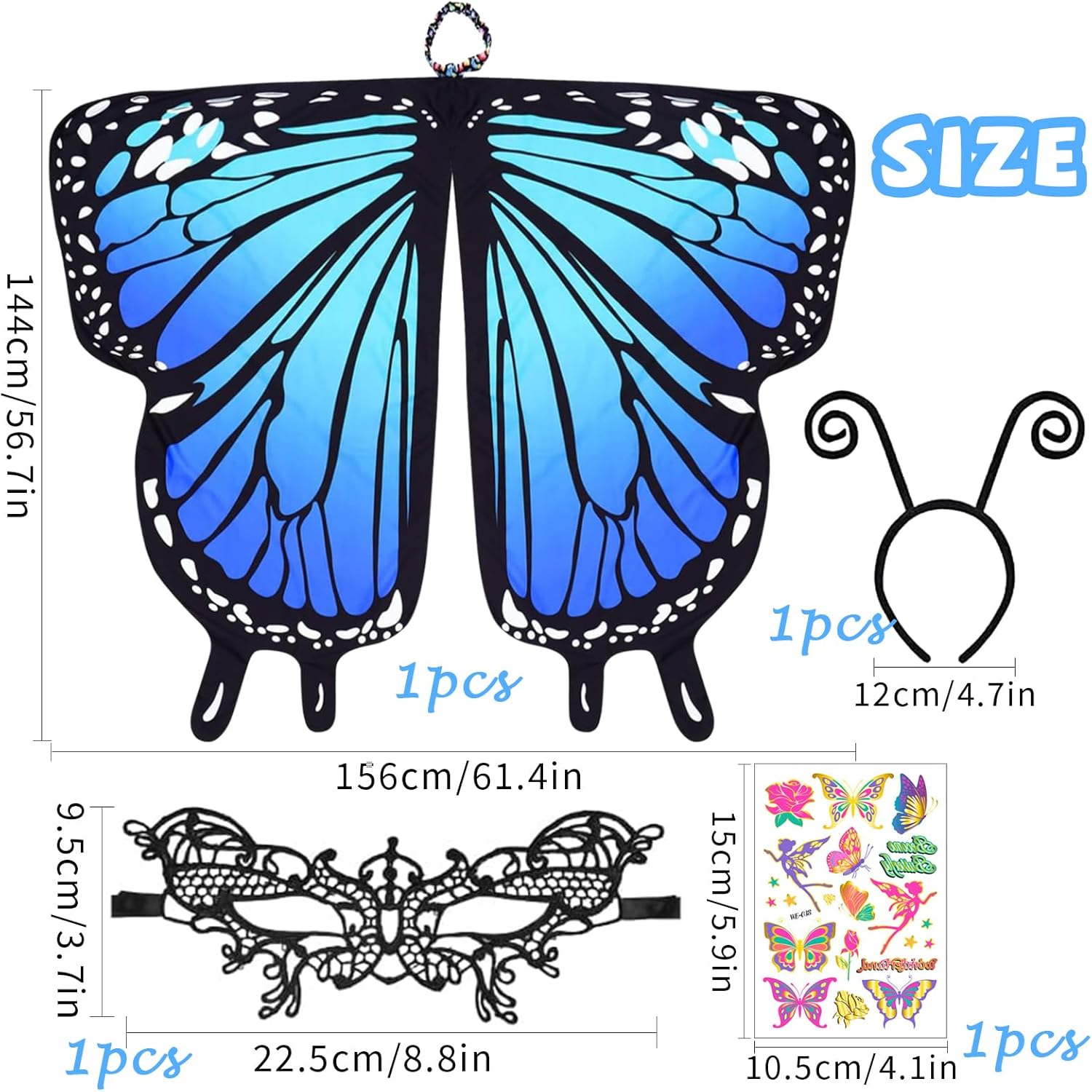 Set di costumi da farfalla: le nostre ali di farfalla per adulti contengono tutto ciò di cui hai bisogno per trasformarti in un'affascinante fata delle farfalle. Questo set include un mantello da donna, un copricapo nero con le sensazioni, una maschera di pizzo e un adesivo a farfalla. Con questo costume puoi partecipare immediatamente alle feste di carnevale. Materiale confortevole: il costume da farfalla da donna è realizzato in tessuto di poliestere di alta qualità, piacevolmente morbido ed elastico. Non provoca sensazioni spiacevoli o fastidiose e non affatica il tuo corpo anche dopo un lungo utilizzo. Puoi ballare comodamente in questo costume da donna farfalla e partecipare alle feste. Facile da indossare: il costume da farfalla ha un collare elastico che si può regolare liberamente. Indossare è facile. Basta mettere il collare, inserire le dita nei passanti alla fine del mantello e sarai pronto a svolazzare con le ali come una farfalla. La dimensione della maschera in pizzo può essere regolata individualmente, in modo che possa essere indossata a lungo senza premere gli occhi. Design meraviglioso: il nostro costume da farfalla per adulti è realizzato con tecnologia di stampa digitale 3D, con stampa a doppio strato, motivi vivaci e squisiti. La vestibilità elegante e i dettagli giocosi rendono questo costume unico e indimenticabile. Ampia applicazione: questo costume da donna a forma di farfalla è perfetto per carnevale, giochi di ruolo, accessori di danza, feste in maschera e travestimenti da fata. È il regalo perfetto per mamme, mogli, sorelle o altre amiche femminili ed è anche la prima scelta per tutte le principesse che sognano di vivere in un mondo da favola.