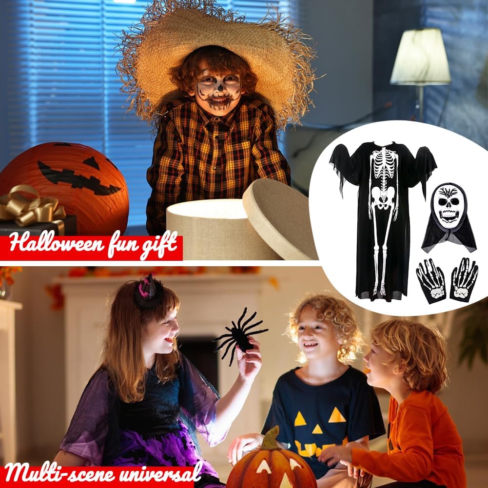 Descrizione prodotto Costume da scheletro di Halloween appositamente progettato per i bambini, composto da tuta intera con scheletro, maschera da scheletro e guanti con ossa bianche. Indossalo e trasformati in un piccolo scheletro in un attimo! Perfetto per feste, balli in maschera e attività all'aperto! Caratteristiche del prodotto: ✅ Materiale confortevole: tessuto a maglia morbido, traspirante e non soffocante, design elastico facile da indossare e da togliere. ✅ Design realistico: classico motivo scheletro in bianco e nero, maschera con fori di ventilazione, guanti con cinque dita separate per una maggiore libertà di movimento. ✅ Design sicuro: leggero e aderente, adatto ai bambini che corrono e giocano, non ostacola la vista. ✅ Adatto a molteplici occasioni: può essere indossato per Halloween, spettacoli scolastici, feste in famiglia, attività ricreative! Specifiche del prodotto: Taglia: La lunghezza dell'abito è di circa 35,4 pollici (si consiglia un'altezza dell'utente compresa tra 35,4 e 55,1 pollici). Adatto a: bambini Colore: nero e bianco Il set include: 1× tuta da scheletro 1× maschera da scheletro 1× guanti da scheletro Avviso di sicurezza no