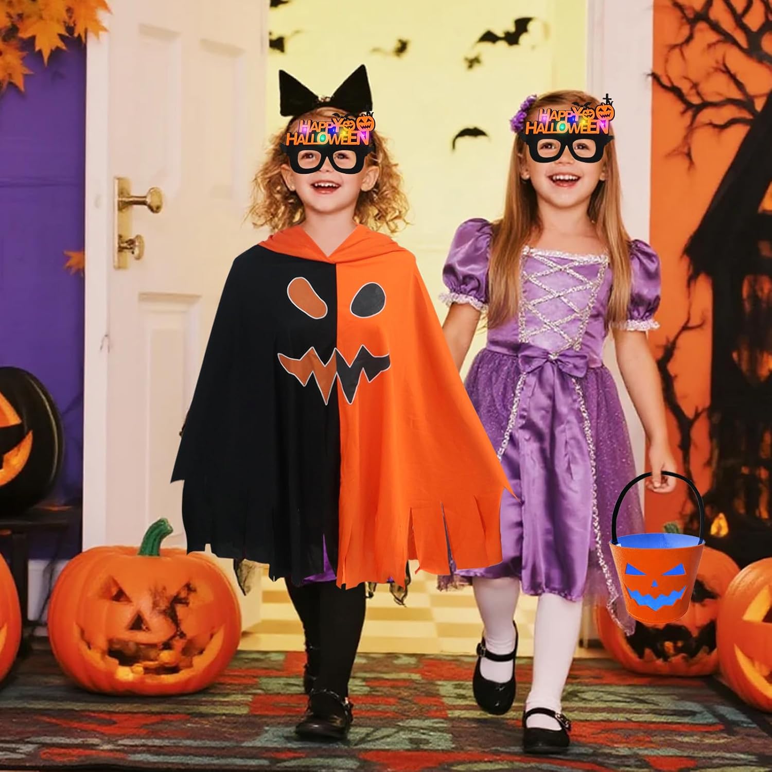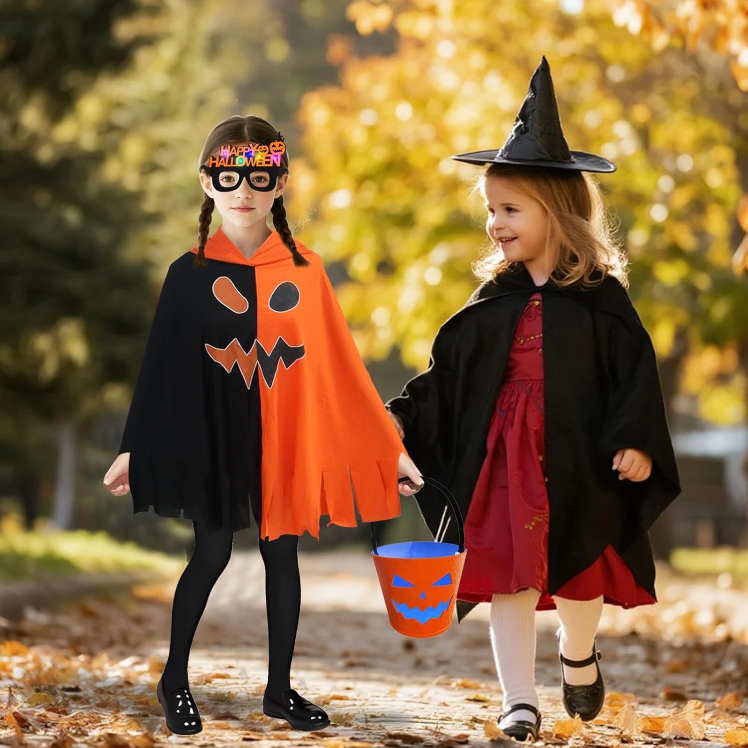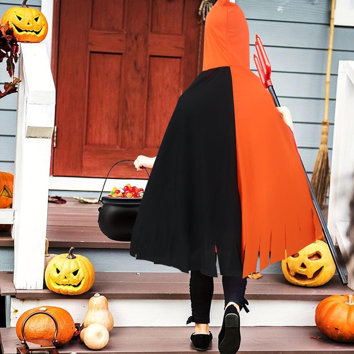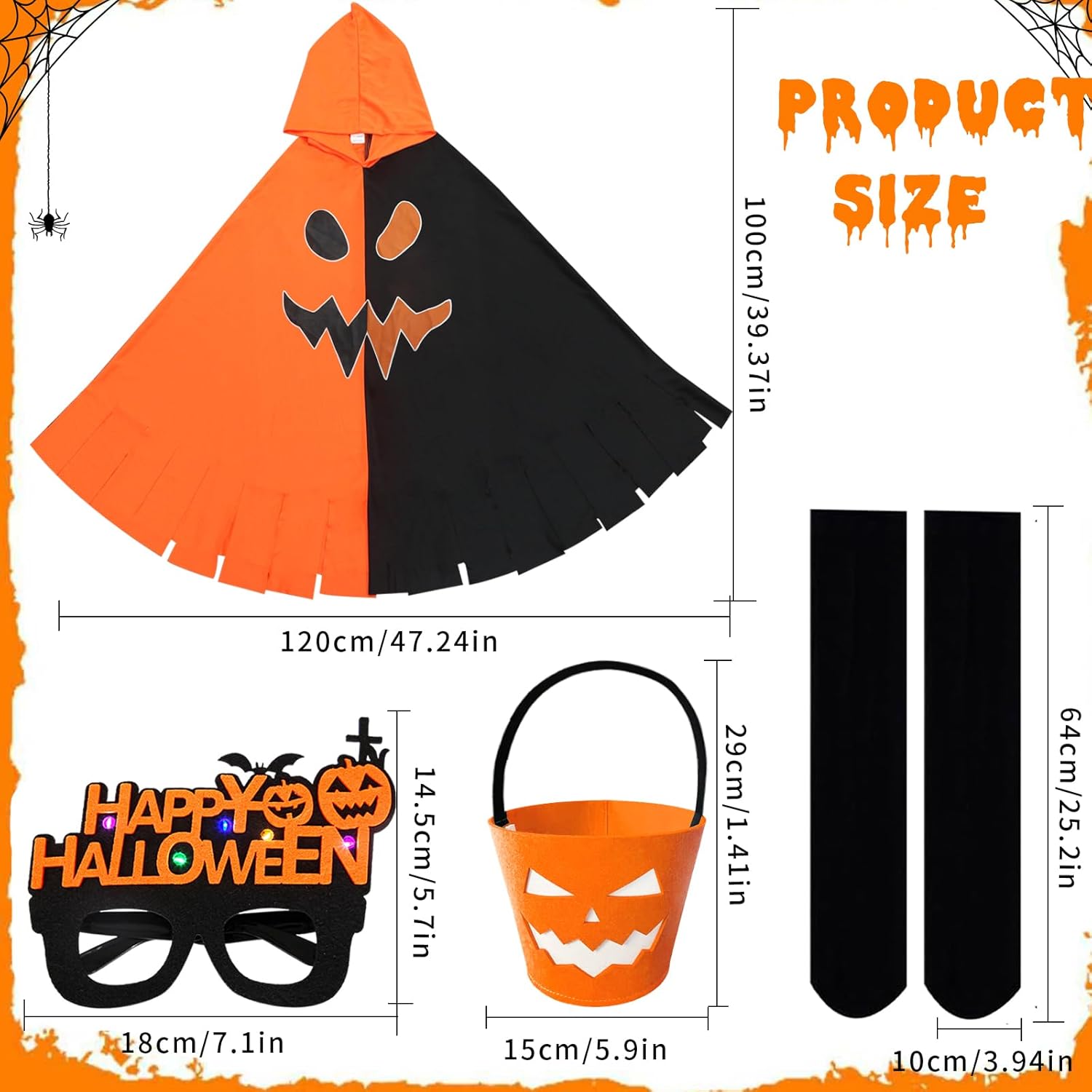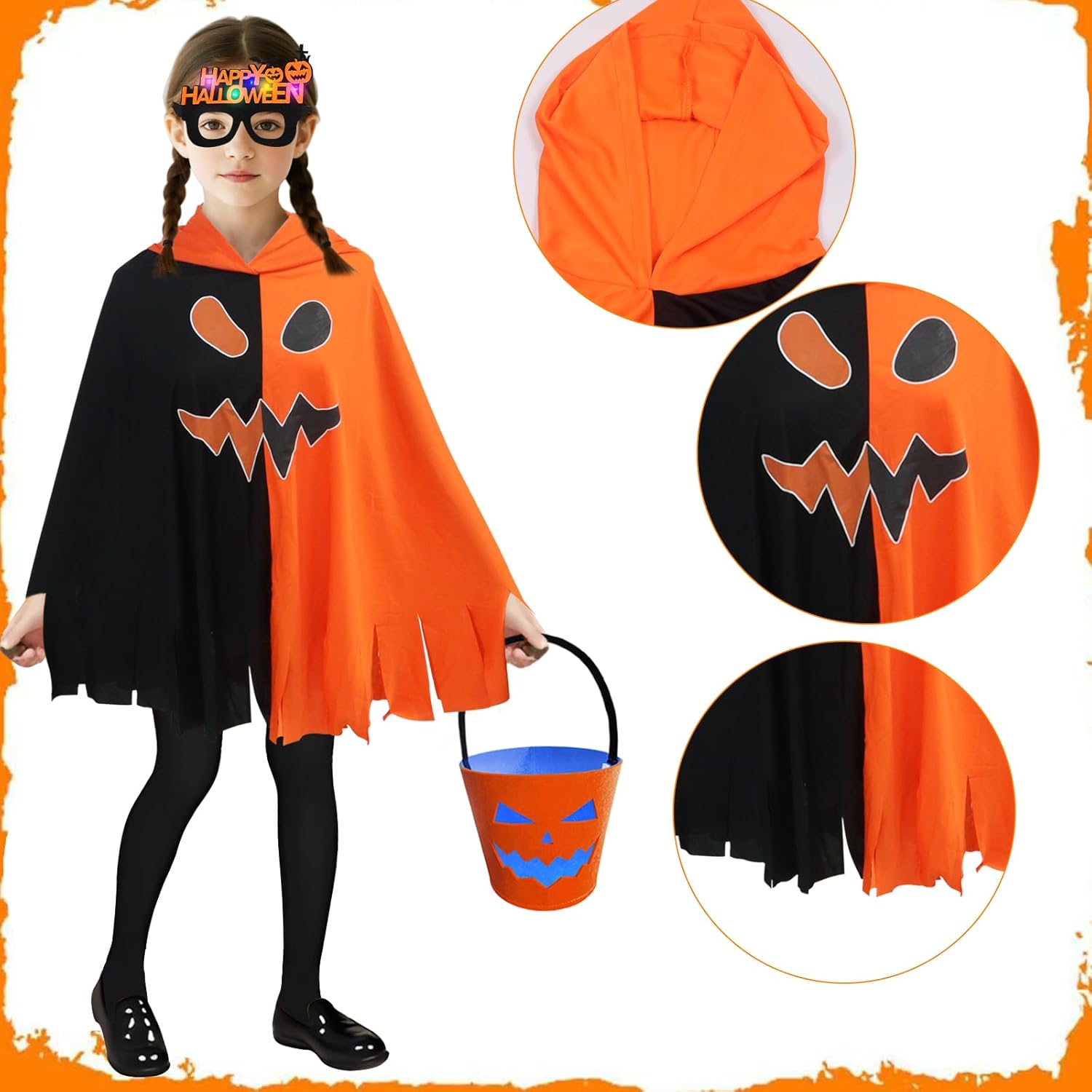 Descrizione prodotto Costume di Halloween per bambini, mantello, costume da zucca per bambini, mantello per Halloween, giochi di ruolo, carnevale Specifiche del prodotto: Nome del prodotto: costume mantello zucca Materiale: poliestere. Quantità inclusa nel set: 4 Tema: Halloween. Contenuto della confezione: - Mantello di zucca × 1 Dimensioni: 100 × 120 cm. - 1 borsa da zucca. Dimensioni: 15 × 15 × 10 cm. - 1 calzini neri. - 1 paio di occhiali per Halloween. Caratteristiche: - Questo mantello ha un design bicolore arancione e nero ed è decorato con motivi spaventosi, il motivo si illumina di notte al buio, creando un'atmosfera spaventosa di Halloween. - Questo set di mantelle a forma di zucca è realizzato con tessuti di alta qualità e offre un comfort eccezionale. Gli accessori sono realizzati in feltro, che li rende leggeri e portatili e ideali per giocare - Adatto per tutte le occasioni: feste in costume di Halloween, carnevale per bambini, giochi di ruolo o feste di carnevale. - Questo mantello da zucca dal design inconfondibile, tessuto di alta qualità che lo rende adatto per una varietà di occasioni e quindi è il regalo ideale per Halloween. Precauzioni: - Misurazione manuale, potrebbero esserci piccoli errori nelle dimensioni e nei pesi. Avviso di sicurezza No