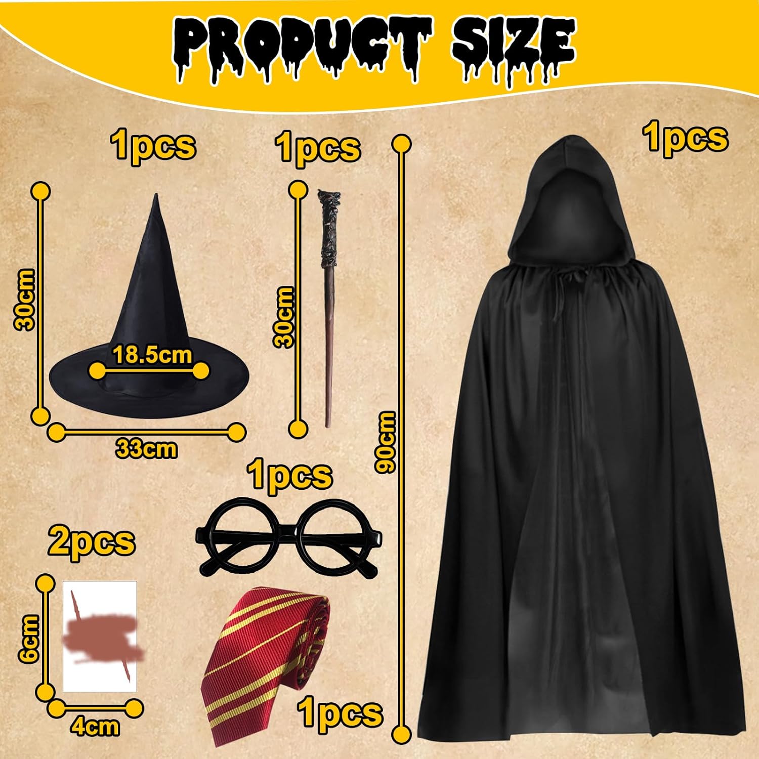 Descrizione prodotto Descrizione prodotto 【Materiale Di Alta Qualità】Gli occhiali senza lenti sono realizzati in materiale PVC, che è leggermente elastico e non ha pressione da indossare. La cravatta è realizzata in tessuto lucido per un look sofisticato, elegante e riutilizzabile. 【Stripe Design】La cravatta è disegnata in colori contrastanti. La cravatta in stile è adatta a di qualsiasi età da indossare tutti i giorni. Gli occhiali con montatura in sono semplici e retrò e facili da abbinare a vestiti diversi. 【Utilizzo Multiuso】Perfetto per feste di Halloween, Natale, vacanze, feste di compleanno a tema mago o qualsiasi festa a tema con maghi e maghi, è anche un ottimo regalo e ricompensa per adulti per la tua festa in costume Aggiungi entusiasmo. Specifiche Occasioni applicabili: Halloween, gioco di ruolo, Carnevale, ecc. Quantità: 12 Questo prodotto è adatto per i più di quattordici anni Pacchetto Include costumi da mago Avviso di sicurezza NO