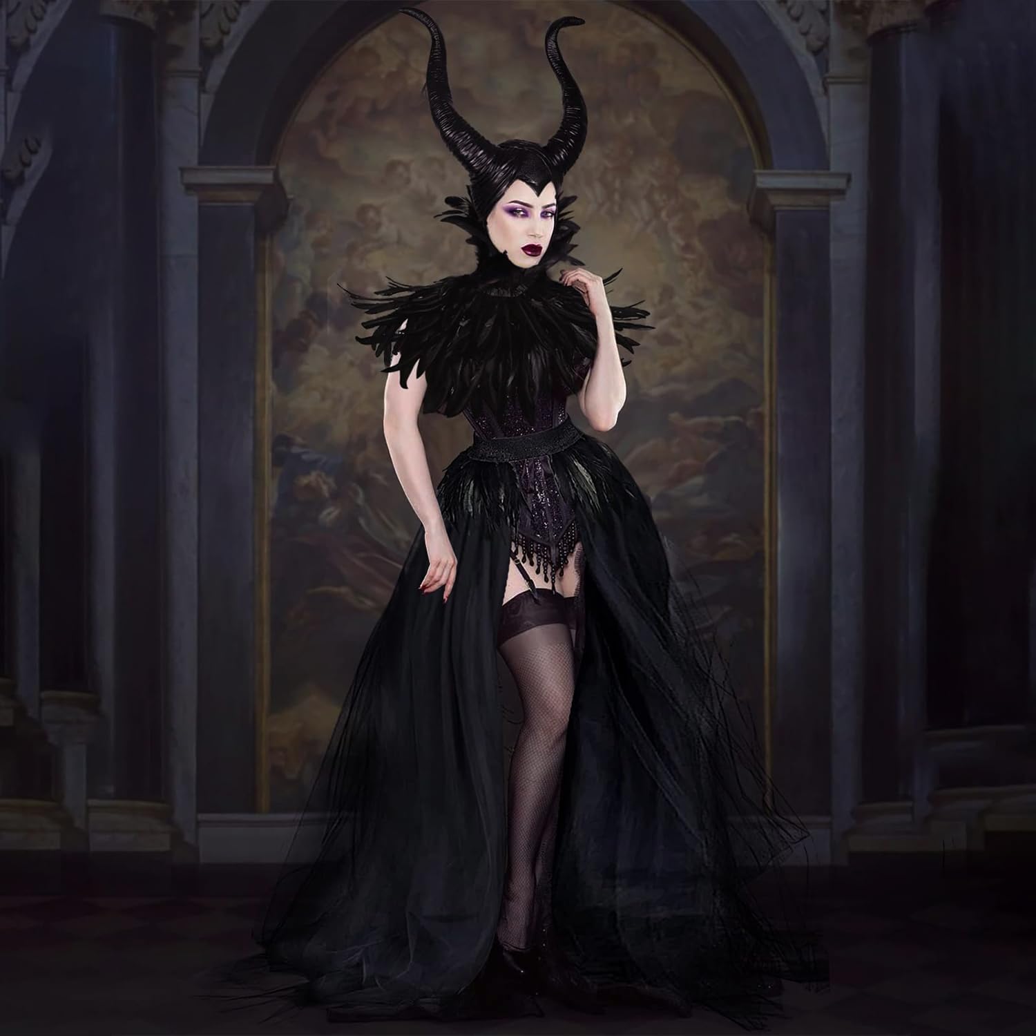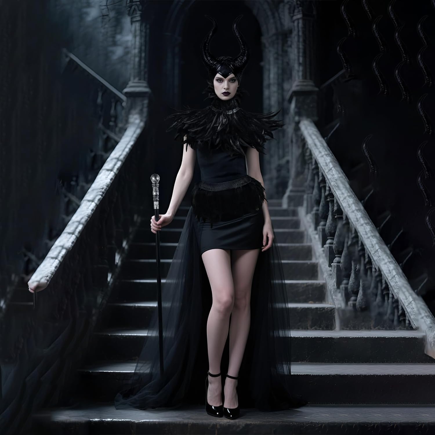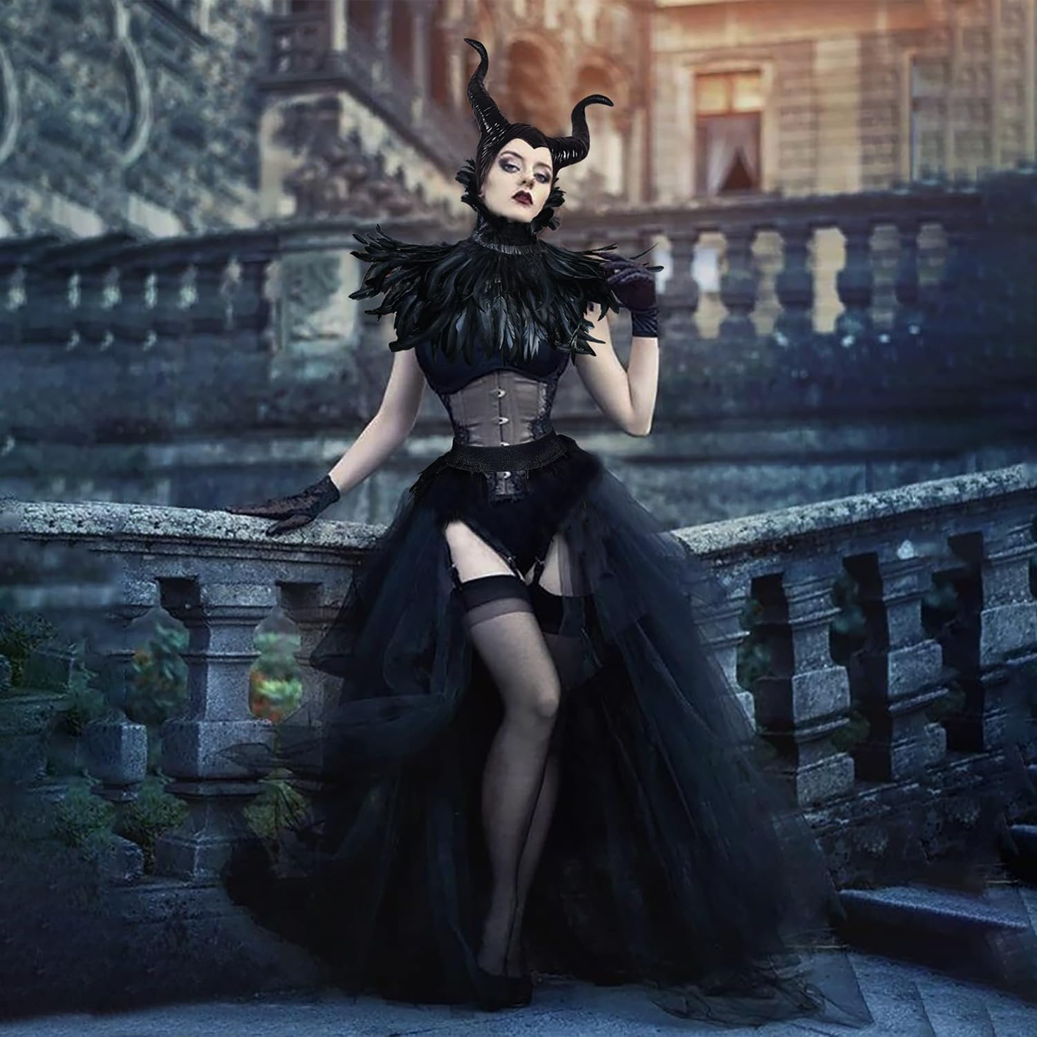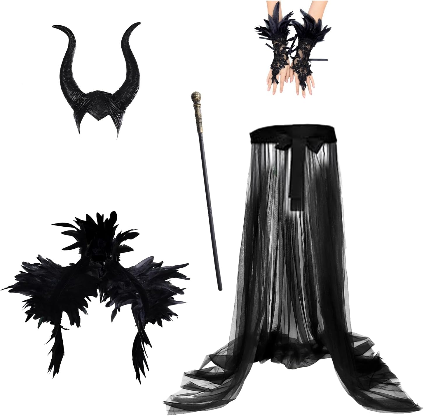 Descrizione prodotto Costume Da Maleficent, Halloween Malefica Corna, Gotico Vestito Strega Maleficent con Corna Maleficent Scialle di Piume Gotico Polsini di Piume per Halloween Carnevale Cosplay Festa Abito定向 Avviso di sicurezza Contiene giocattolo. Si raccomanda la sorveglianza di un adulto