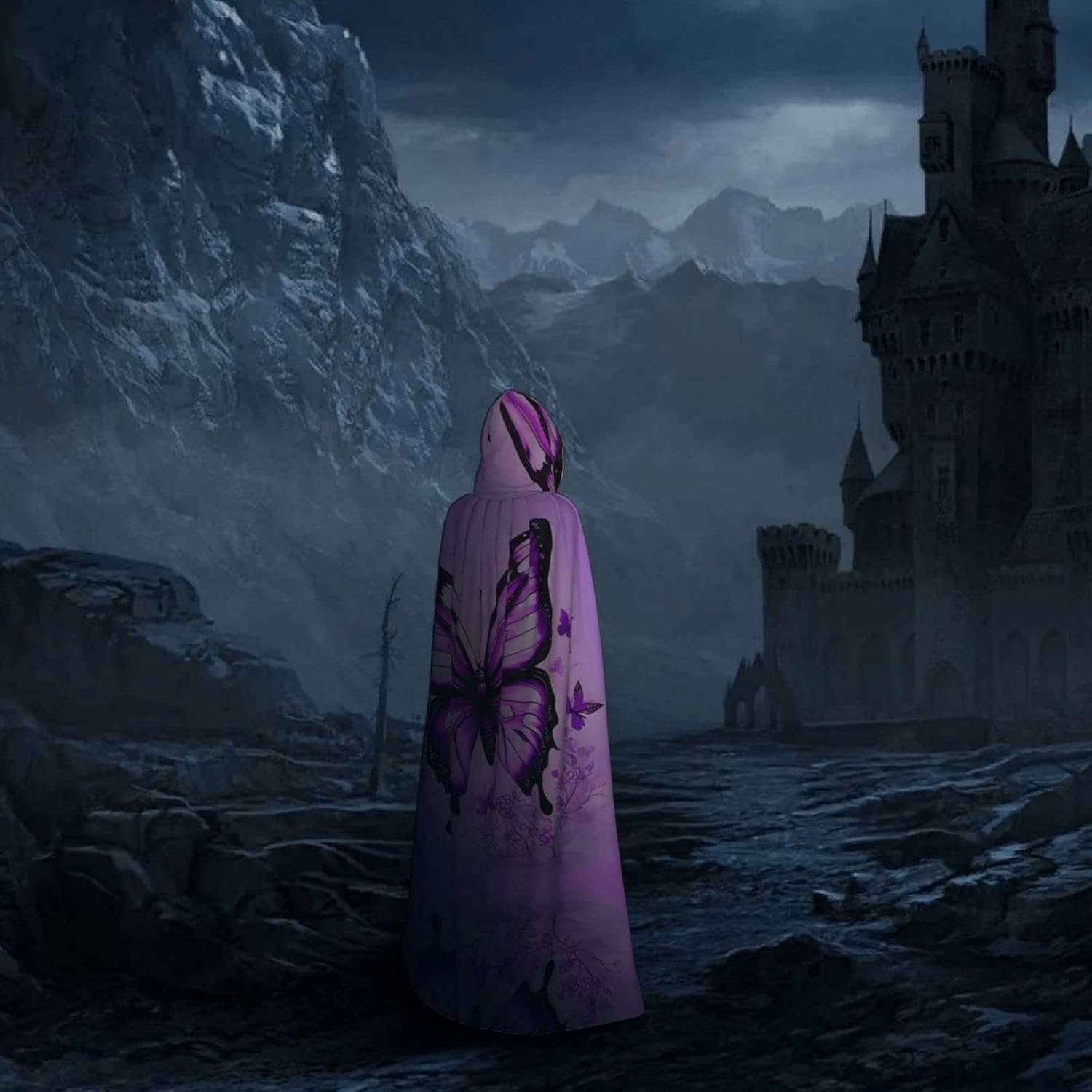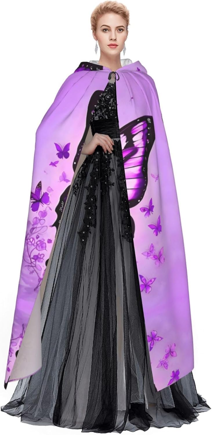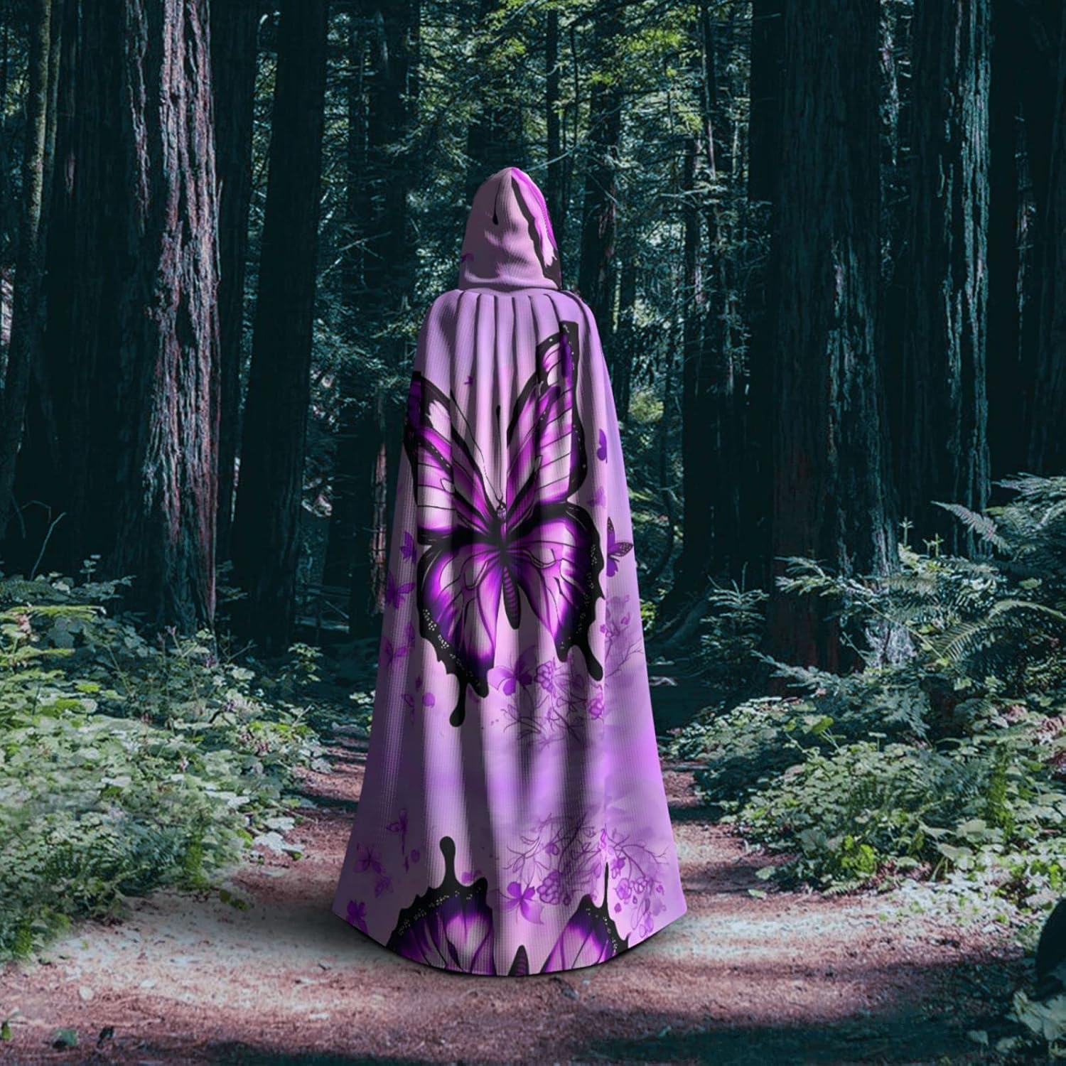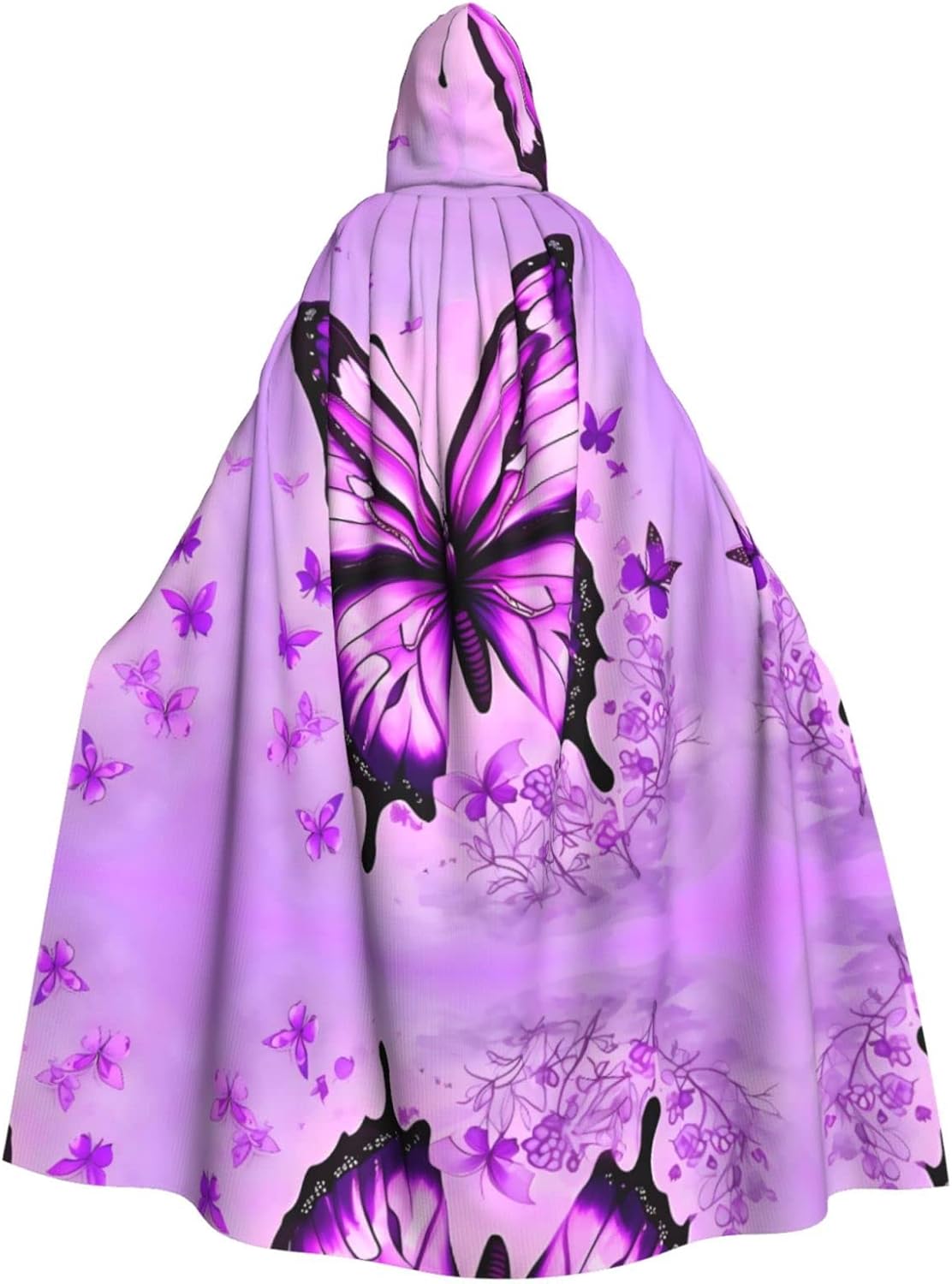 Costume da mantello con stampa HD con farfalla viola, per Halloween, cosplay e altri costumi unici con cappuccio. Costume versatile