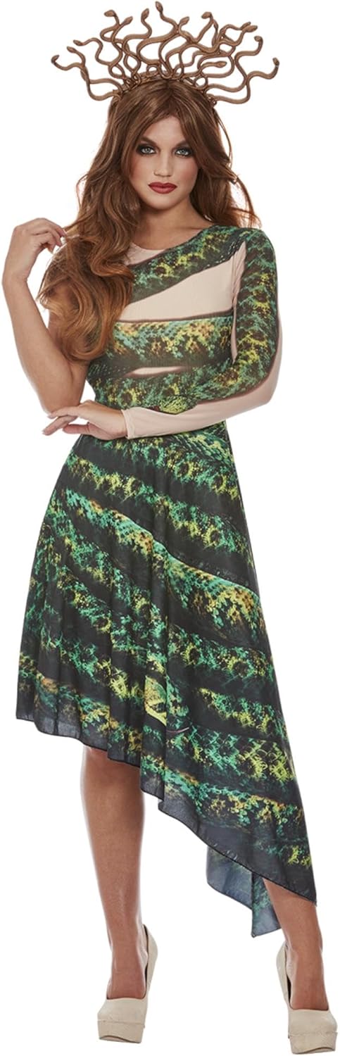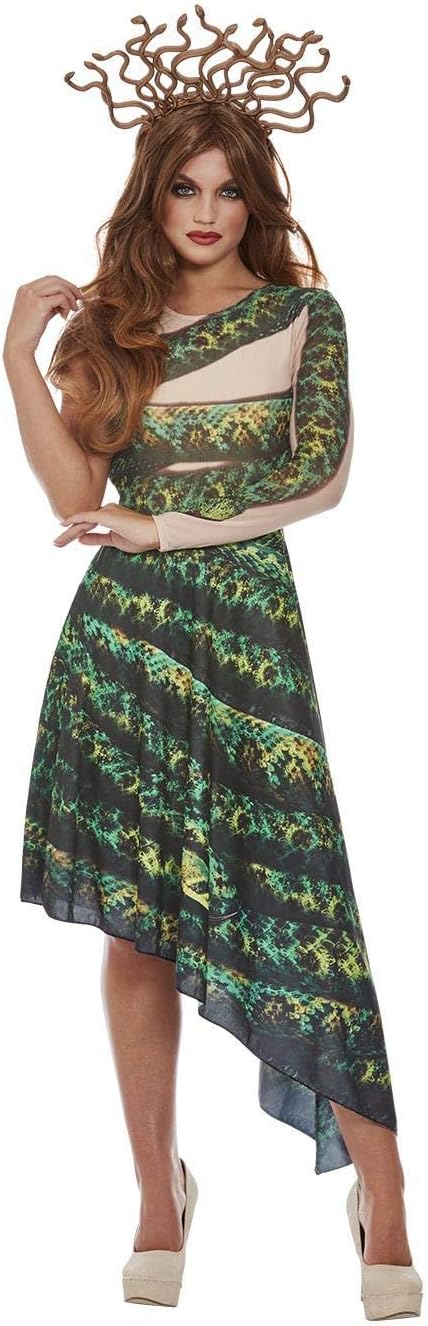 Descrizione prodotto Include costume da medusa, vestito verde e fascia per capelli. Tieni presente che tutti i nostri prodotti Smiffys verranno sempre consegnati in una confezione completa con marchio Smiffys. Avviso di sicurezza Costume per adulti Non adatto ai bambini. Avvertenza: tenere lontano dal fuoco. Si prega di notare che i coloranti utilizzati potrebbero non sbiadire. Conservare questi dettagli per riferimento futuro.