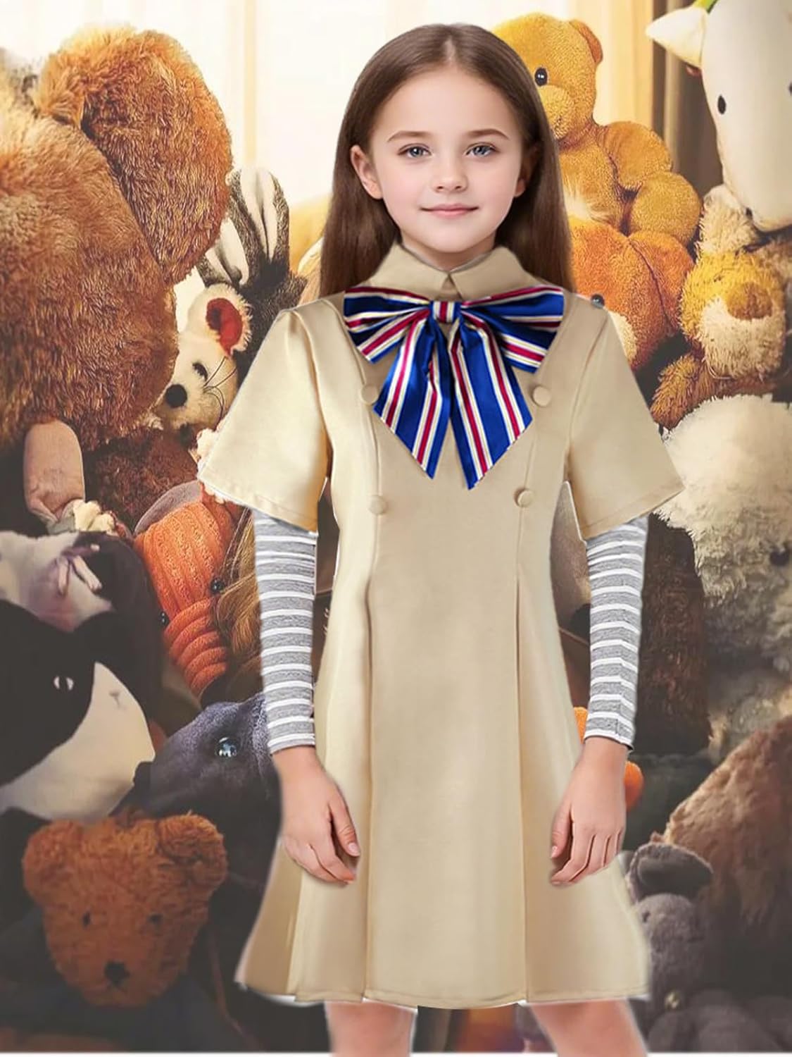 Benvenuti nel negozio Jackolume Halloween bambini 4 PCS film horror vestire vestire. Megan 2 cosplay costume per bambini. Costume da bambola raccapricciante per ragazze di Halloween con papillon calzini maniche braccio set completo, sarà un regalo speciale di Natale o Halloween per i bambini . La nostra priorità assoluta è la soddisfazione del cliente. Quindi, se avete domande sull'acquisto del costume, vi preghiamo di contattarci e forniremo una risposta il prima possibile.. Materiale: poliestere. Dimensioni: 110-150 cm. Stile: come da immagine. La confezione include: 1 vestito, 1 papillon, 1 paio di calzini, 1 manica per braccio. Precauzioni: 1. Potrebbe esserci un margine di errore di 1-3 cm dovuto alla misurazione manuale. 2. A causa dei diversi monitor e degli effetti della luce, il colore reale potrebbe essere leggermente diverso da quello dell'immagine. 3. Le taglie asiatiche sono più piccole rispetto alle taglie europee/US/UK, si prega di confrontare le misure dettagliate prima dell'acquisto