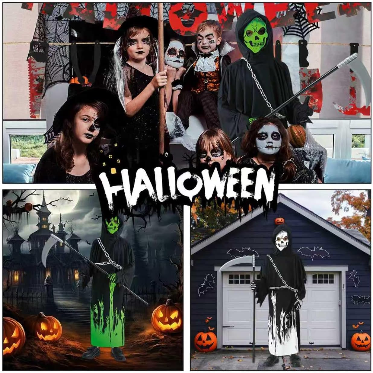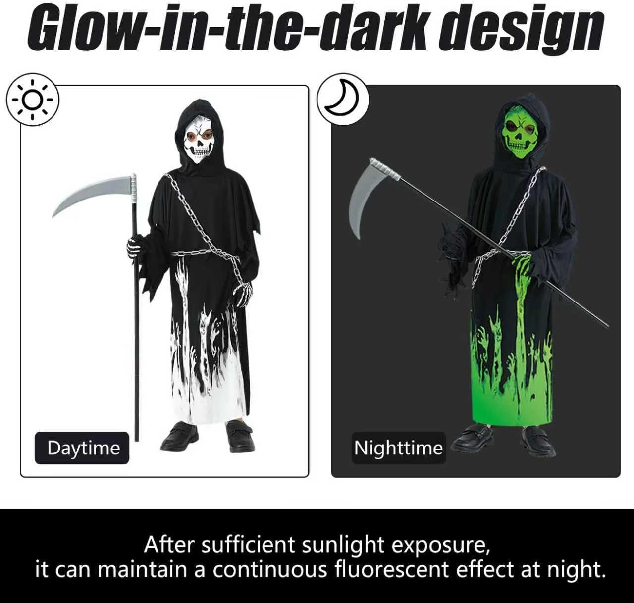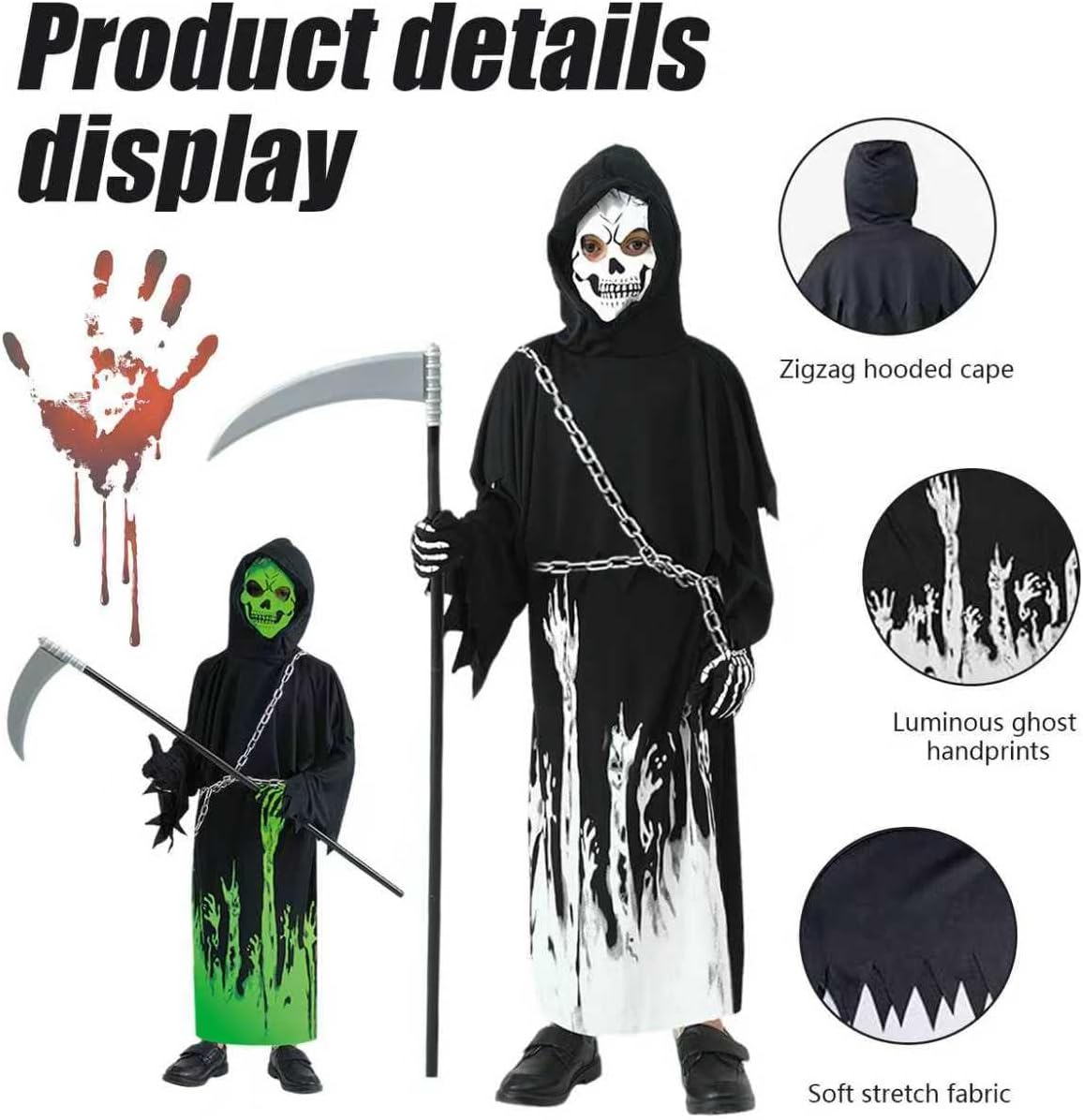Descrizione prodotto Costume mantello da Tristo Mietitore, Costume da triste mietitore per bambini, Costume cosplay Triste Mietitore, Luminoso Costume Morte Bambino, per Giochi di Ruolo, Carnevale, feste in costume di Halloween Caratteristiche: 1. Questo Costume cosplay Triste Mietitore Realizzato in poliestere, morbido, traspirante e con grafica che si illumina al buio. 2. Nostro Set di Costume Mietitore Bambino lunghezza 82 cm, per adattarsi a bambini dai 7 ai 9 anni, altezza consigliata 120-130 cm. 3. Questo Luminoso Costume Morte Bambino che crea un'atmosfera inquietante, ideale per attirare l'attenzione alle feste di Halloween. 4. Questo Costume da triste mietitore ha una grafica che si illumina al buio se lasciato alla luce diretta per almeno 30 minuti. 5. Nostro Costume da Mietitore di Halloween Perfetto per feste di compleanni, eventi a tema, giochi di ruolo e altre attività in maschera. Specifiche: Materiale: Poliestere Dimensioni: come mostrato Colore: come mostrato La confezione include: 1 * Set di Costume Mietitore Bambino Nota: ➤ Si prega di consentire una leggera differenza di dimensione a causa della diversa misurazione manuale. ➤ A causa della luce e della differenza di impostazione dello schermo, il colore dell'articolo potrebbe essere leggermente diverso dalle immagini. Avviso di sicurezza Non adatto a bambini di età inferiore a 10 mesi
