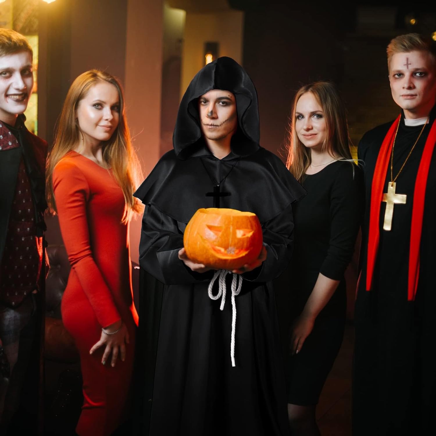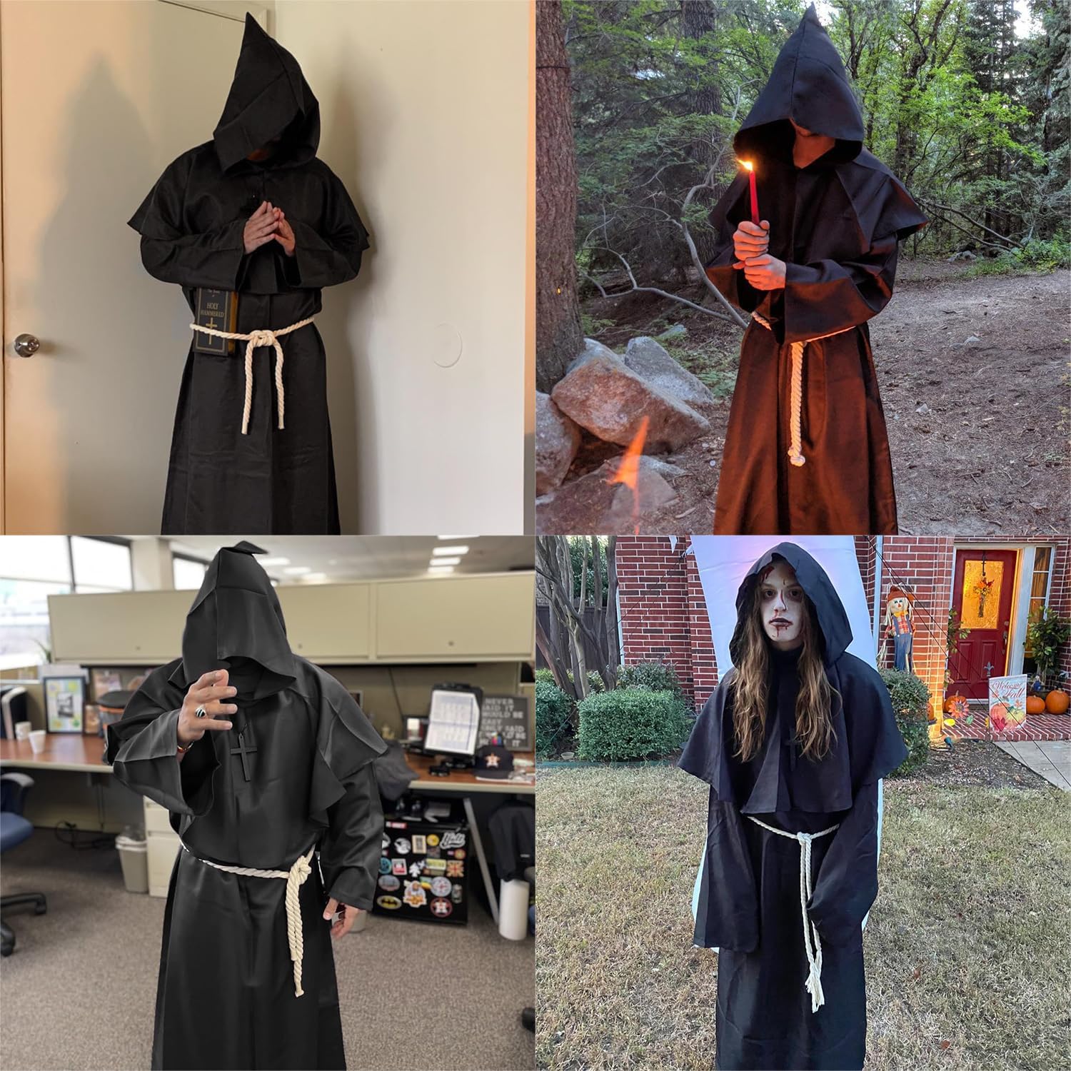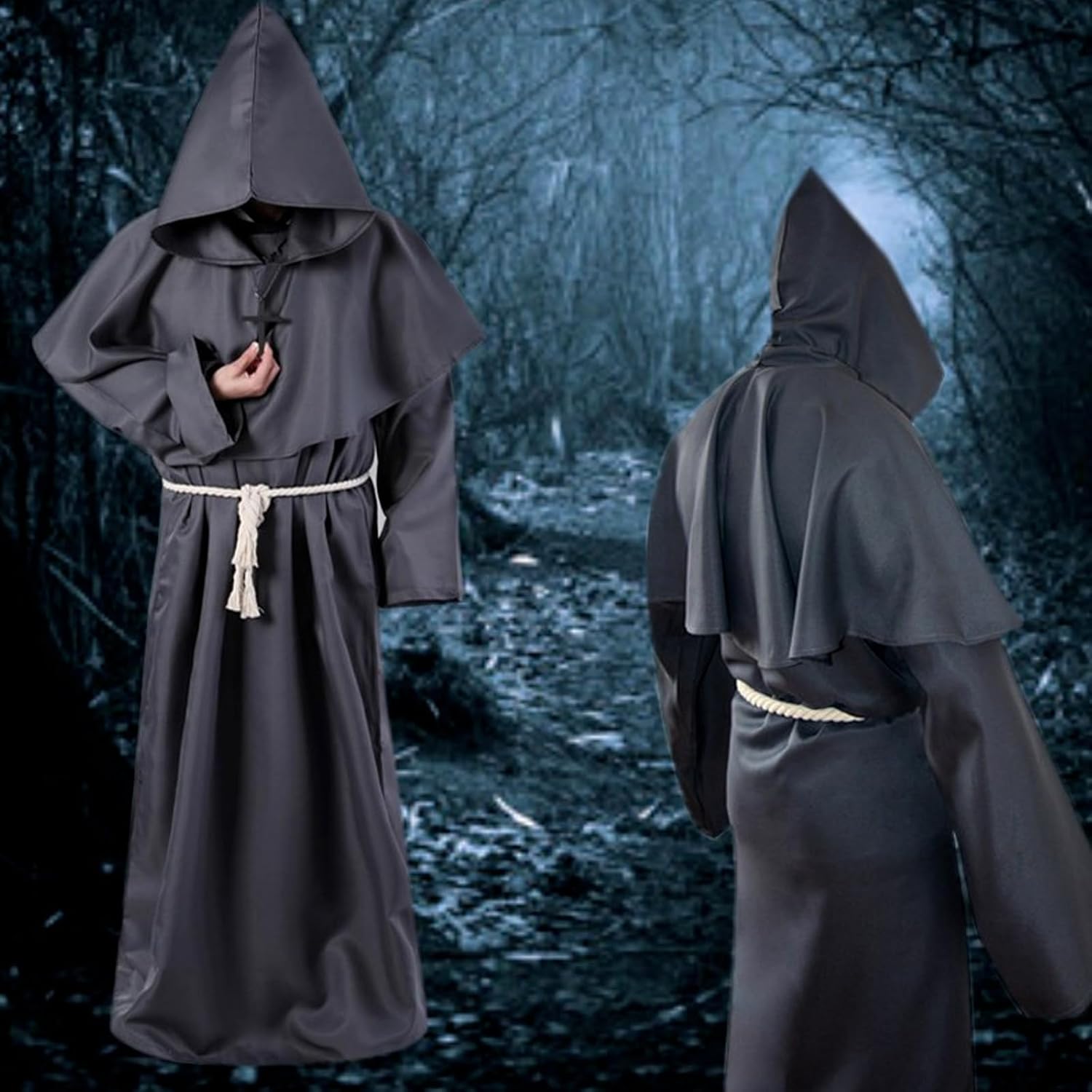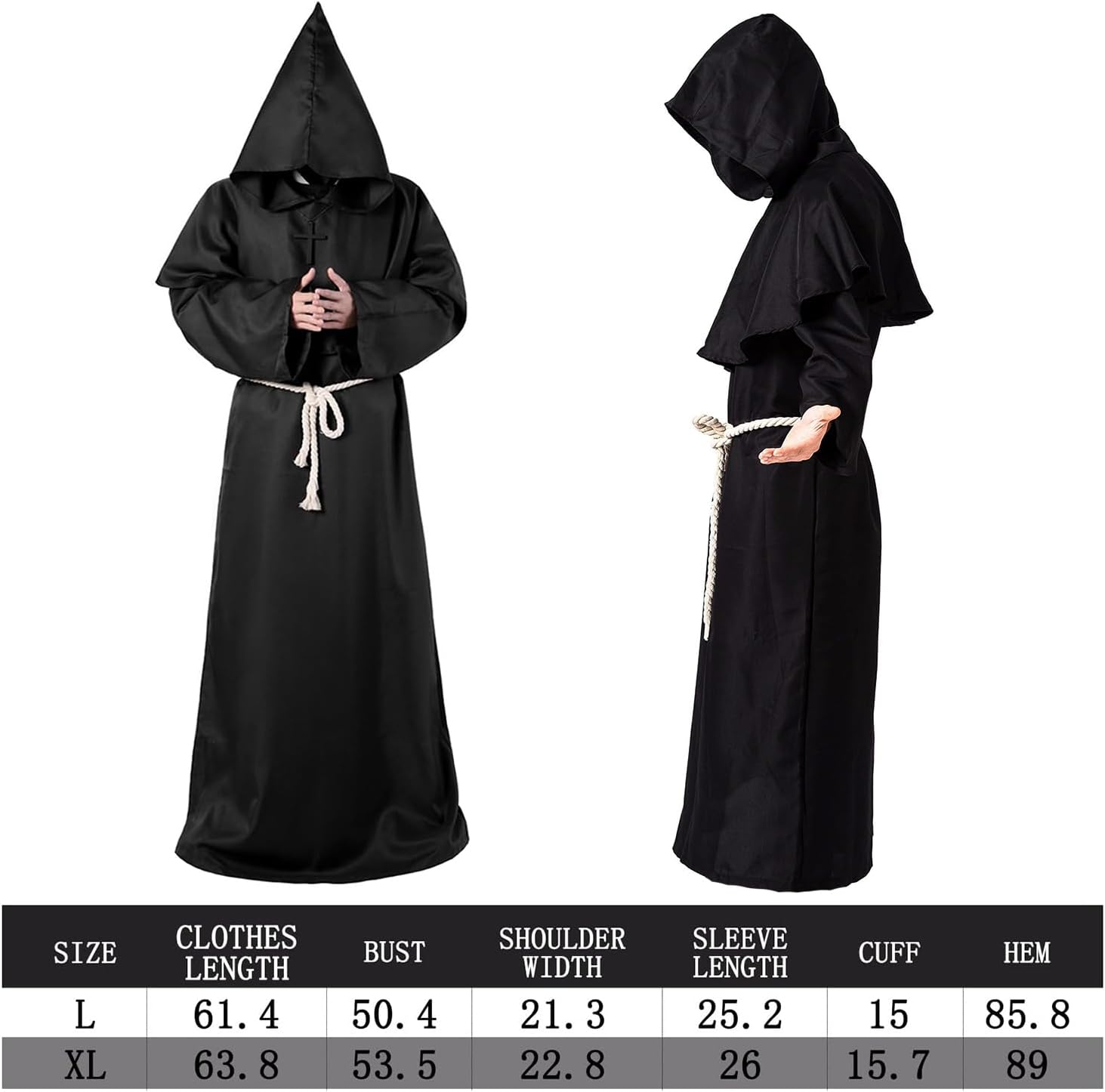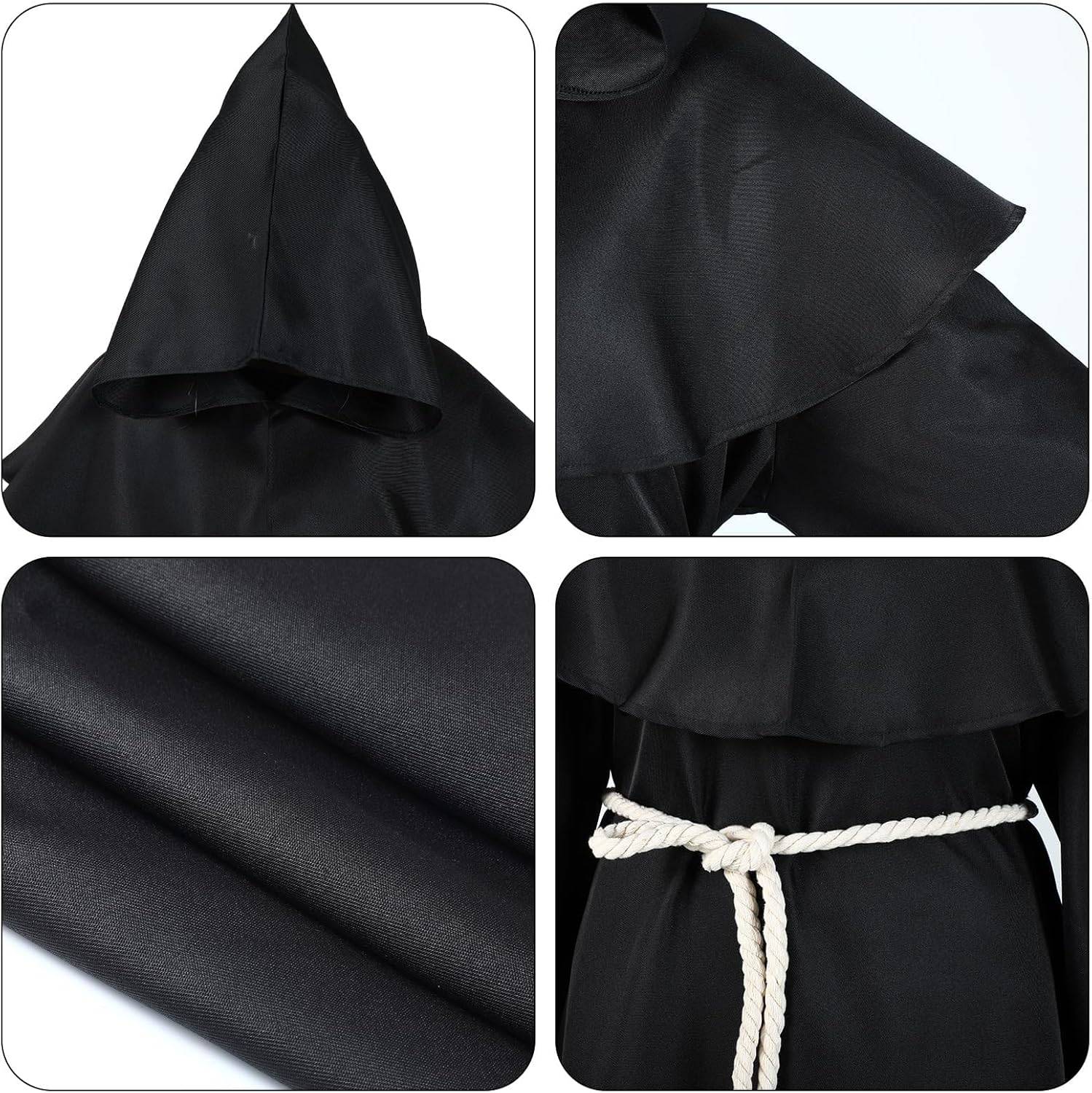Descrizione prodotto Costume da Monaco,Abito Sacerdote,Abito da Monaco Costume,Costume da Prete,Sacerdote Hooded Robe,Frate Accappatoio Medievale,Sacerdote Cappuccio Costume,con Collana a Croce & Corda in Vita Avviso di sicurezza 1