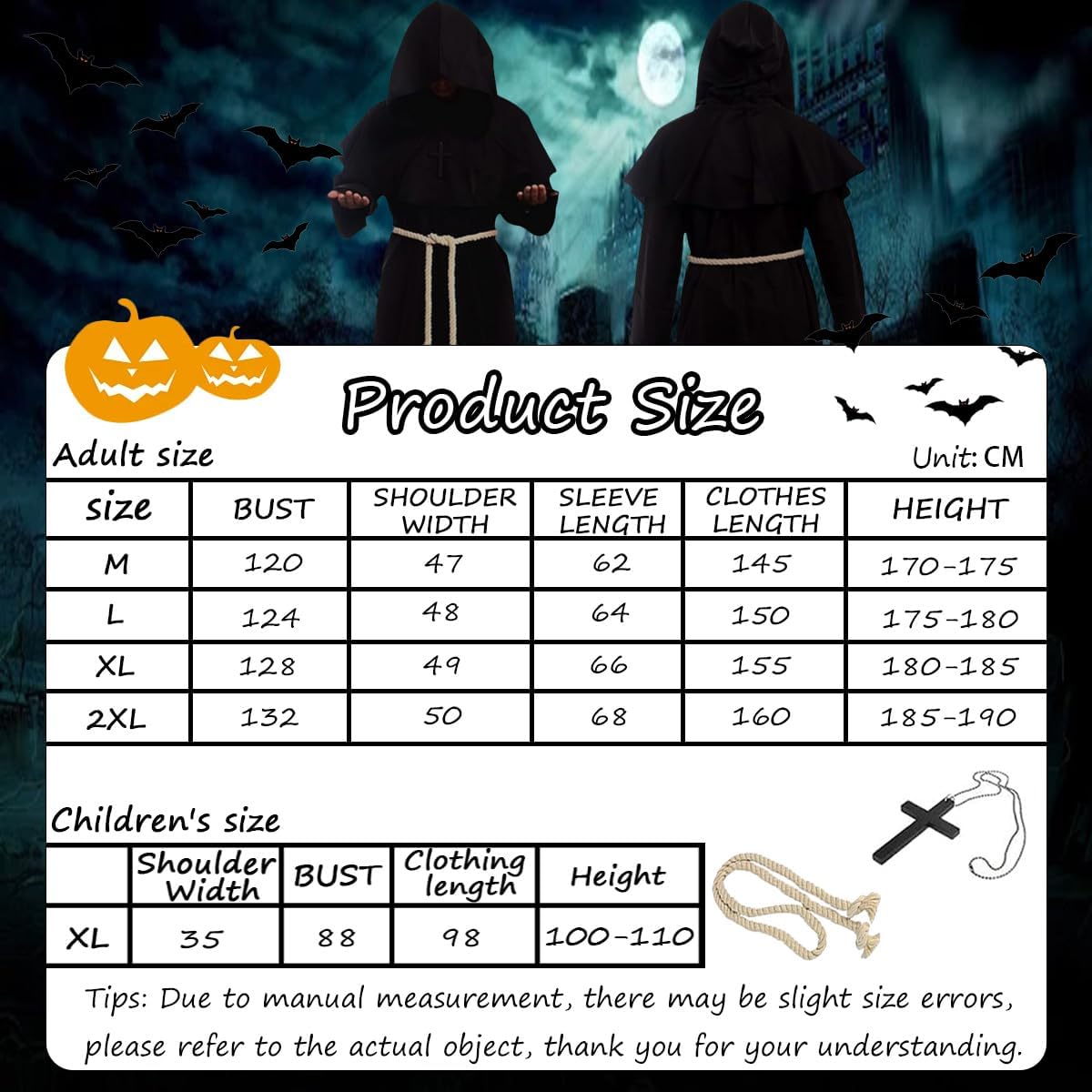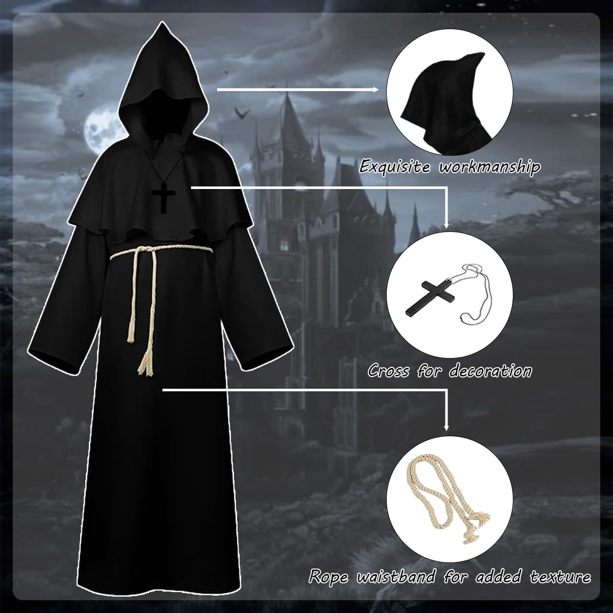 Descrizione prodotto Abito da sacerdote rinascimentale-per feste Cosplay, Halloween,Carnevale Il cappuccio del Costume da Prete è abbastanza ampio da coprire e nascondere il viso, e la vestibilità ampia garantisce libertà di movimento. È semplice ma elegante, richiamando lo stile rinascimentale medievale. Il design unisex della vestaglia con cappuccio Sacerdote rende questo costume adatto sia per uomini che per donne, adatto a feste a tema, feste in maschera, carnevali, costumi di scena, feste in costume di Halloween, cosplay di scena, ecc. Il Costume da Monaco Sacerdote è realizzato in poliestere, che è morbido e basta immergerlo nel sapone, quindi strofinarlo, lavarlo e appenderlo in un luogo fresco per asciugarlo rapidamente. Specifica: Nome del prodotto: Costume da Monaco Materiale: Poliestere Dimensioni: Come mostra l'immagine Colore: Come mostra l'immagine Lista imballaggio: 1 x Costume Prete 1 x Collana con croce 1 x Cordino Nota: Si prega di consentire lievi errori di dimensione dovuti alla misurazione manuale. A causa delle diverse apparecchiature o illuminazione, il colore può variare leggermente dal colore reale del prodotto. Se hai domande, puoi contattarci. Avviso di sicurezza NO