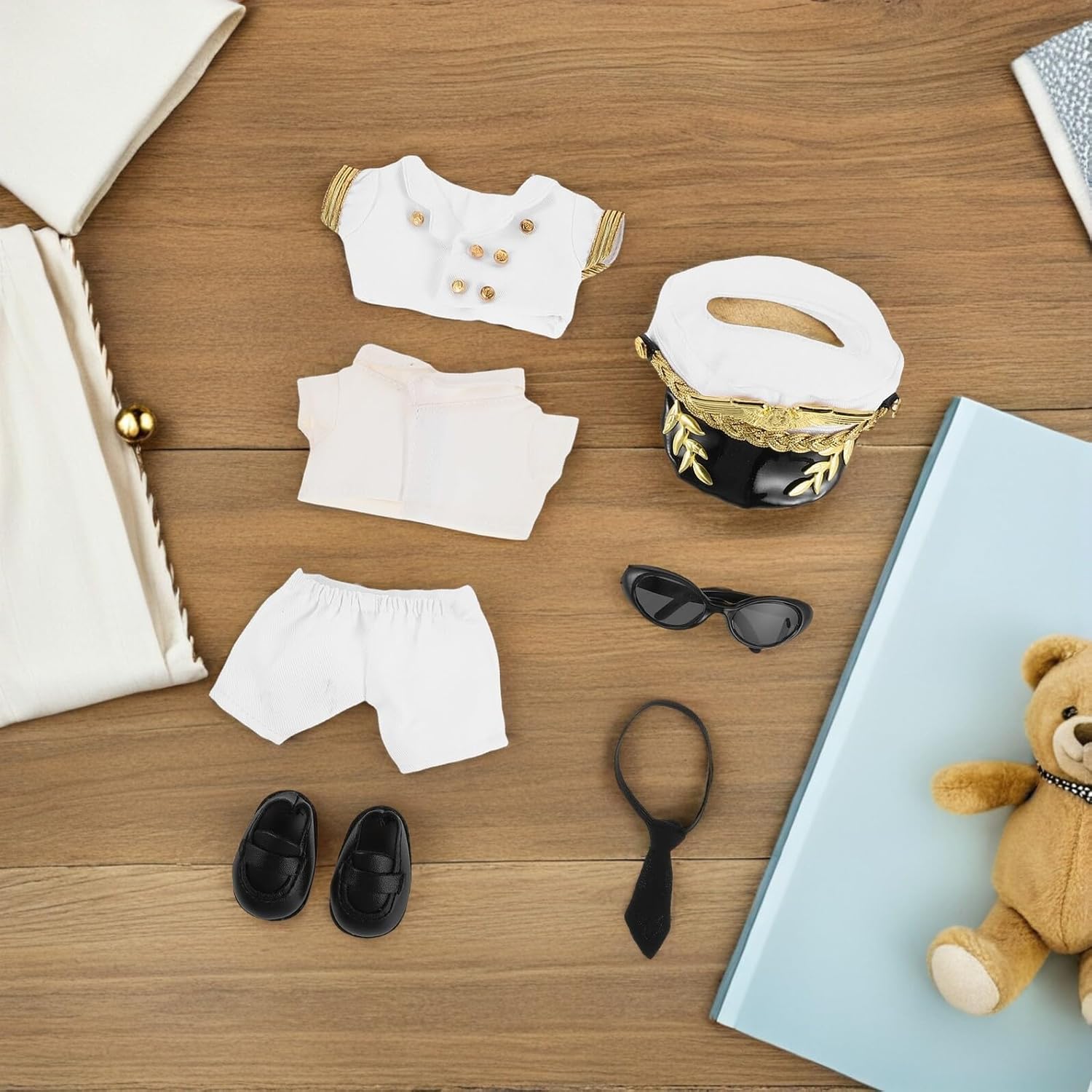 MATERIALI MORBIDI E DUREVOLI: Realizzati con tessuti solidi, questi vestiti di peluche rendono i vestiti delle bambole nuovi e morbidi. Ciò consente ore di creatività con un'usura minima. Ampia compatibilità: questo abbigliamento da pilota per bambole è specificamente adattato a diverse dimensioni e si adatta alla maggior parte delle bambole e dei giocattoli di peluche. È quindi un accessorio di abbigliamento per bambole ideale per collezioni e regali, abbigliamento per peluche e abbigliamento per bambole intercambiabile. Opzioni di moda versatili: scambia semplicemente i vestiti delle piccole bambole di peluche con i nostri vestiti da pilota per bambole, offrendo più opzioni di abbigliamento per le bambole e incoraggiando la creatività nel cosplay. Abito da pilota per bambola, costume da pilota per bambola Abiti da capitano autentici: l'abito da pilota per bambola è una replica degli accessori per bambole di un vero capitano, consentendo ai bambini di divertirsi con giochi di ruolo realistici mentre utilizzano i graziosi vestiti di peluche per avventure fantasiose. Accessori di abbigliamento per bambole, vestito da capitano per bambole Set completo di accessori: ogni vestito include vestiti da pilota per bambole in peluche, un cappello da capitano e un distintivo distintivo, offrendo collezionisti e accessori realistici per bambole per giochi di ruolo estesi, vestiti per animali di peluche, vestiti da pilota per bambole in peluche