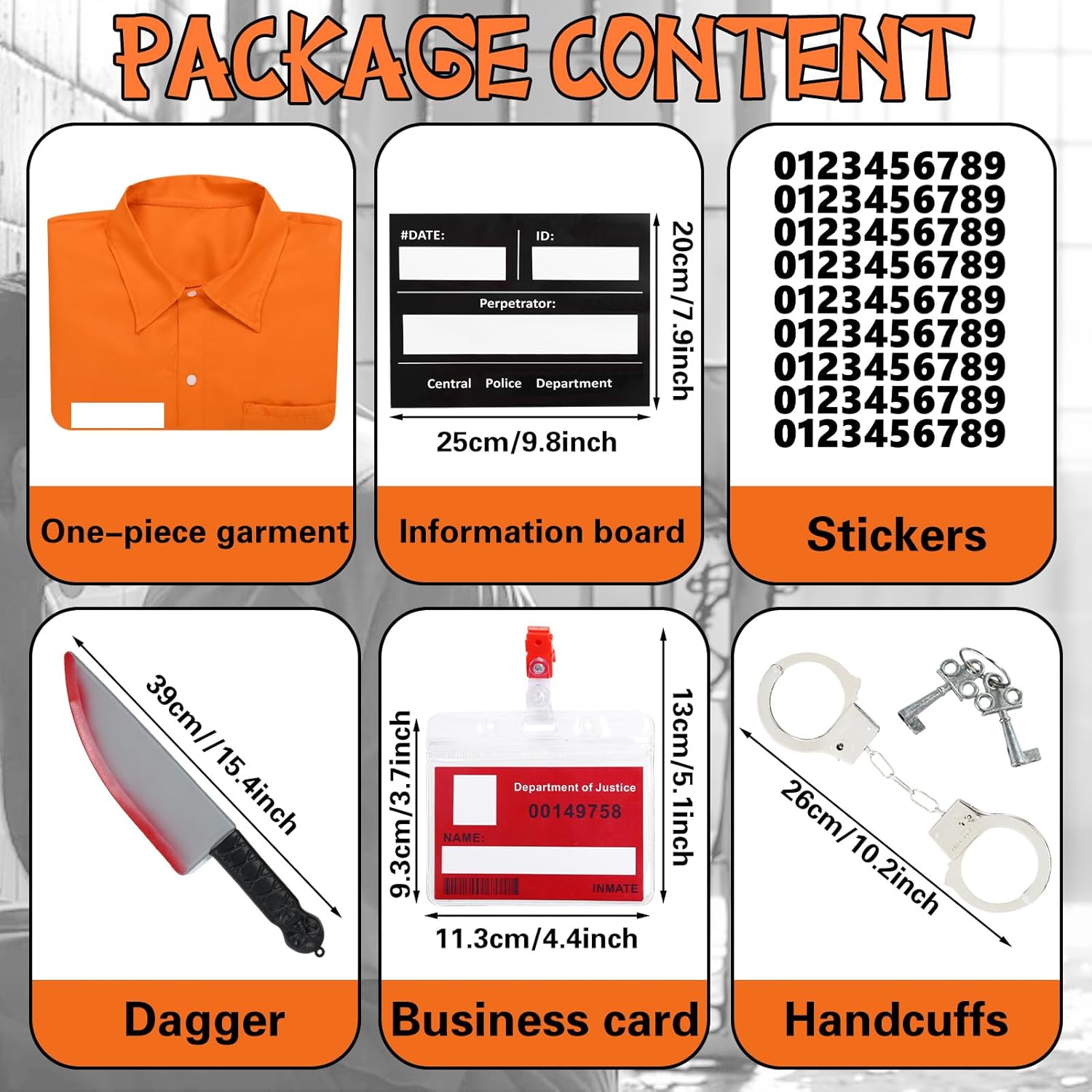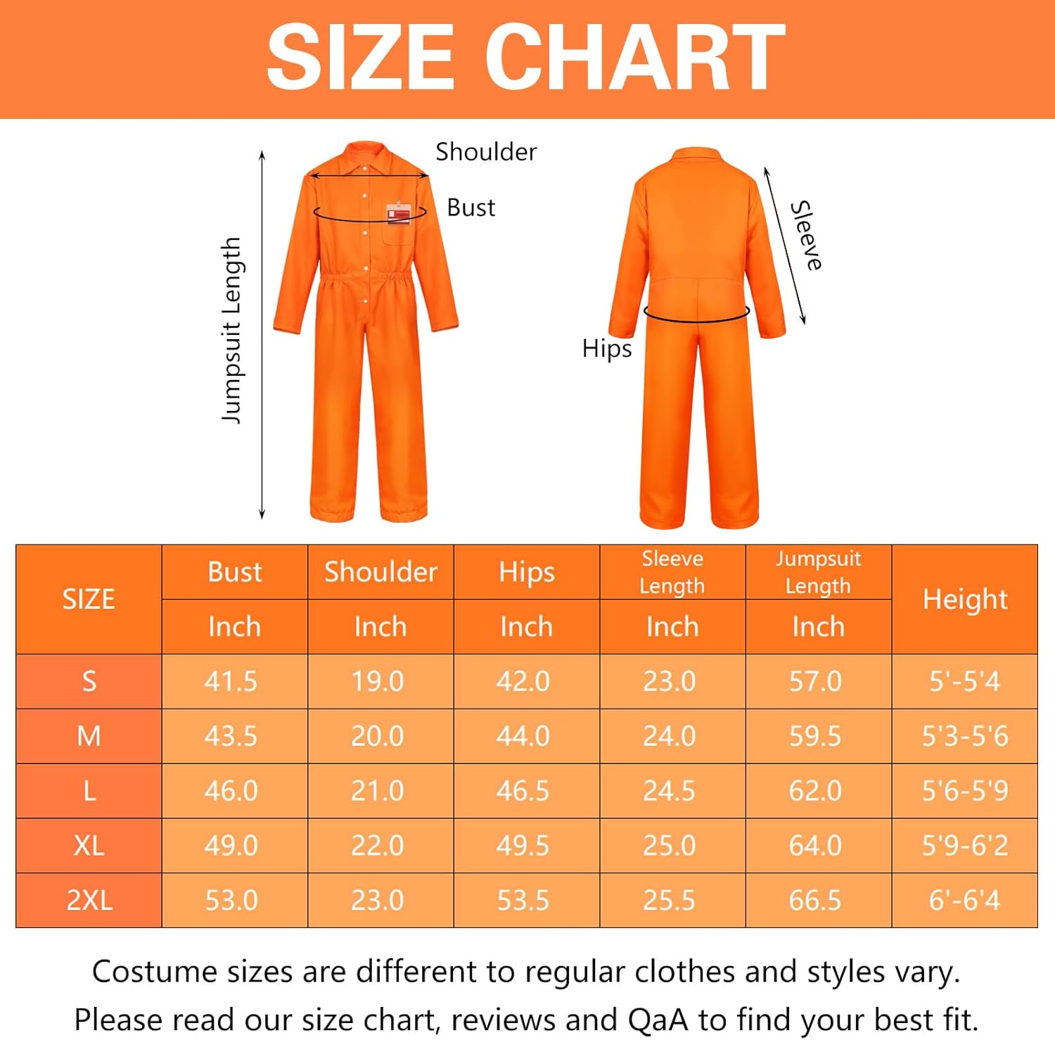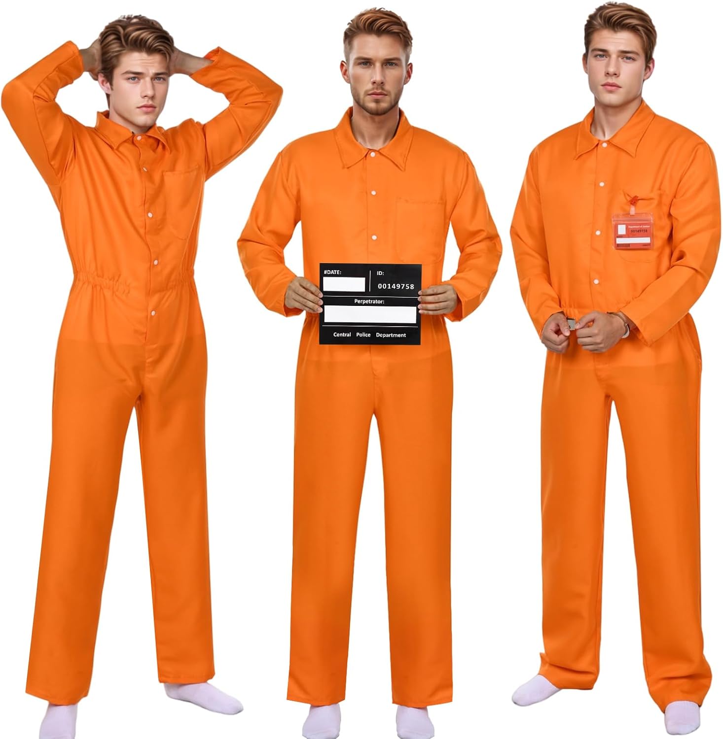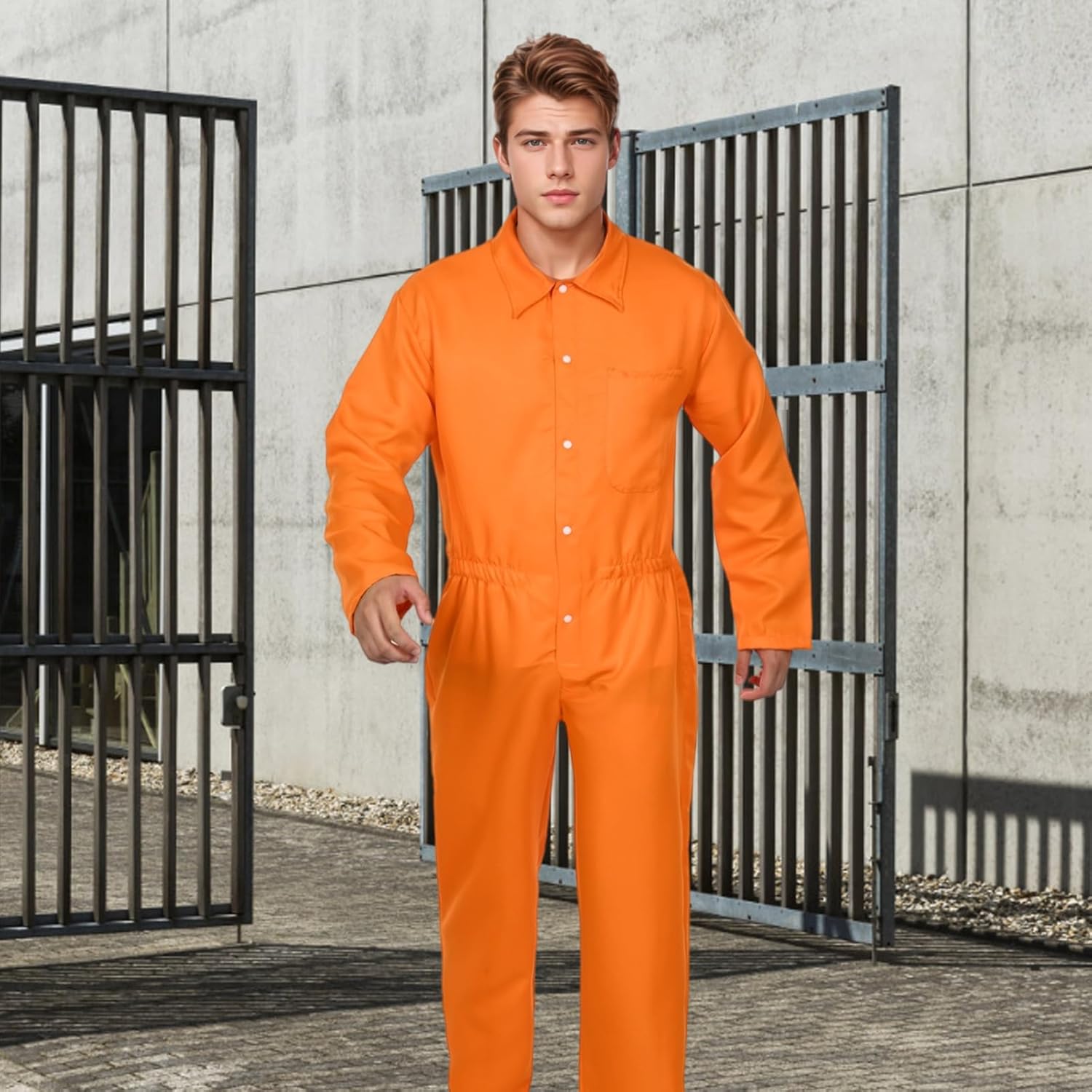 Fun Halloween costume. Decent enough fit. Feels comfy when worn. Gives that escaped prisoner feel. You get a few extras including an arrest placard, plastic knife, ID and handcuffs. Looks the part and is fun to wear.