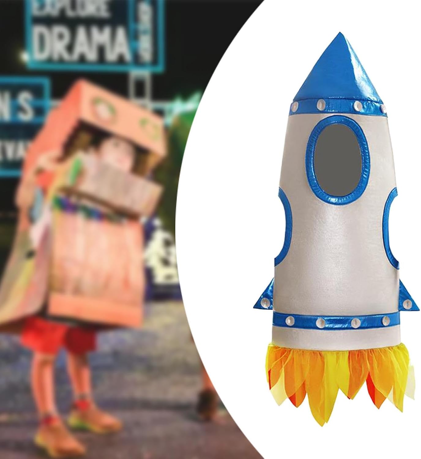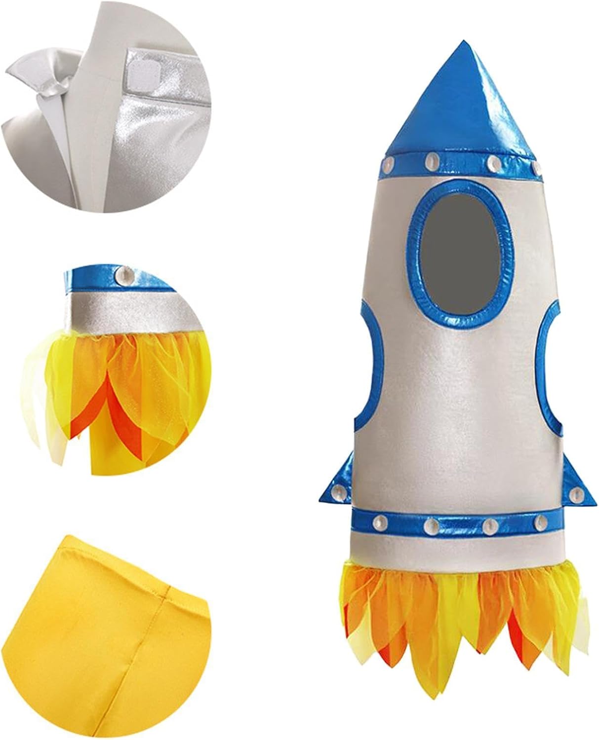 【Design unico con dettagli divertenti】: questo costume da razzo presenta 3 fori per finestre, che consentono alla testa e alle mani del tuo bambino di passare comodamente. Il design dello space shuttle include una forma di razzo con bordi simili a fiamme, rendendolo un vestito accattivante per qualsiasi . (Maglietta interna non inclusa) 【Scelta regalo ideale】: sorprendi il tuo bambino con questo delizioso vestito a razzo che incoraggia la creatività e l'avventura nelle loro attività di gioco, assicurandosi al contempo che si distinguano in qualsiasi festa o 【Materiale comodo e morbido】: realizzato in fibra di poliestere, il costume da razzo è morbido al tatto e comodo da indossare. Il suo tessuto leggero assicura che il tuo bambino possa giocare e godersi le feste senza sentirsi stanco 【Ideale per varie occasioni】: che si tratti di Halloween, una festa a tema, giochi di ruolo, giochi quotidiani, riunioni di famiglia, carnevali, celebrazioni pasquali o balli, questo costume da cosplay a razzo renderà il tuo bambino dello spettacolo 【Migliora il divertimento festivo】: aggiungi alle prossime vacanze con questo costume a tema spaziale che promette divertimento e gioco fantasioso per il tuo bambino
