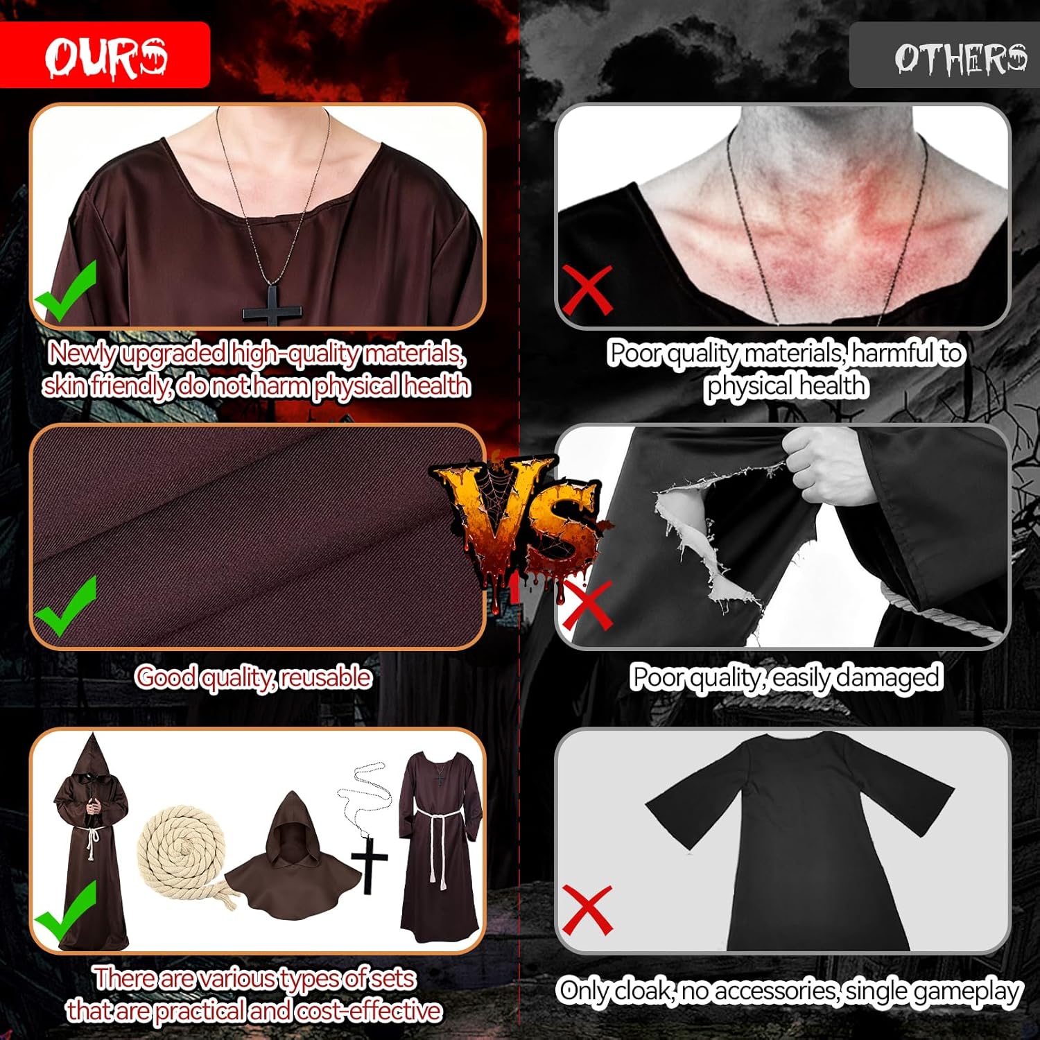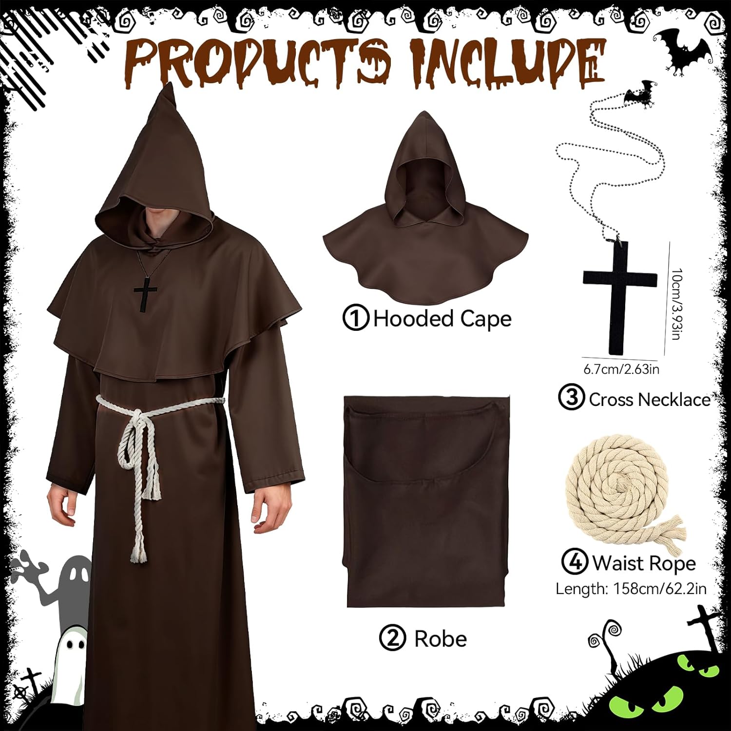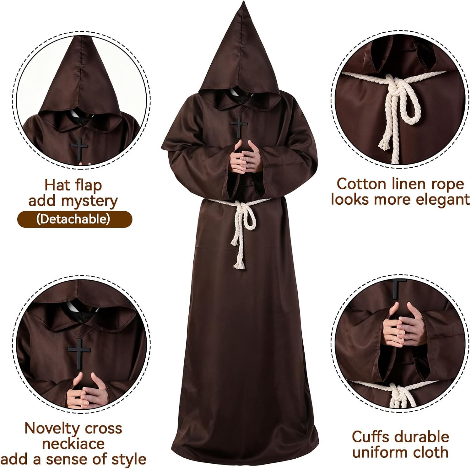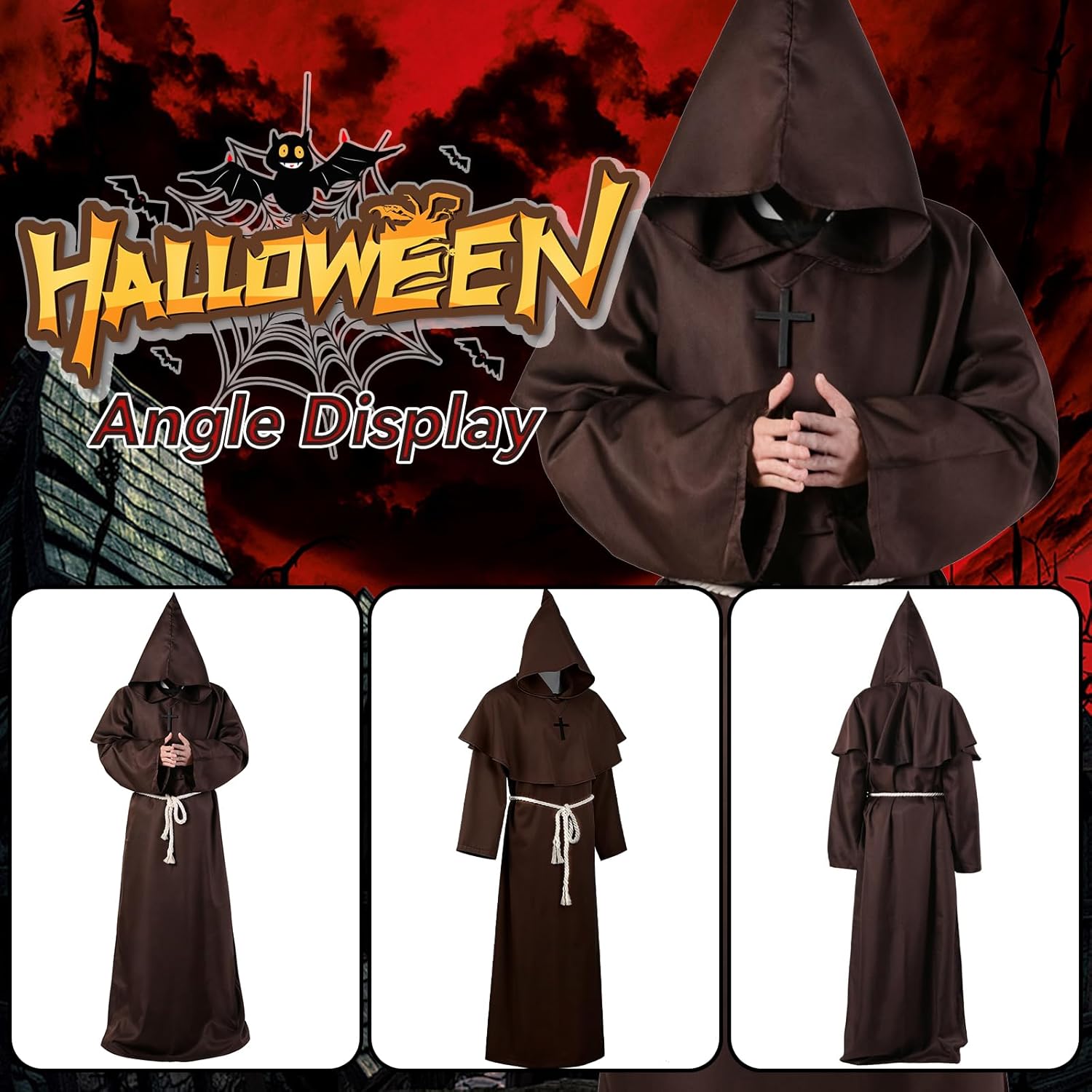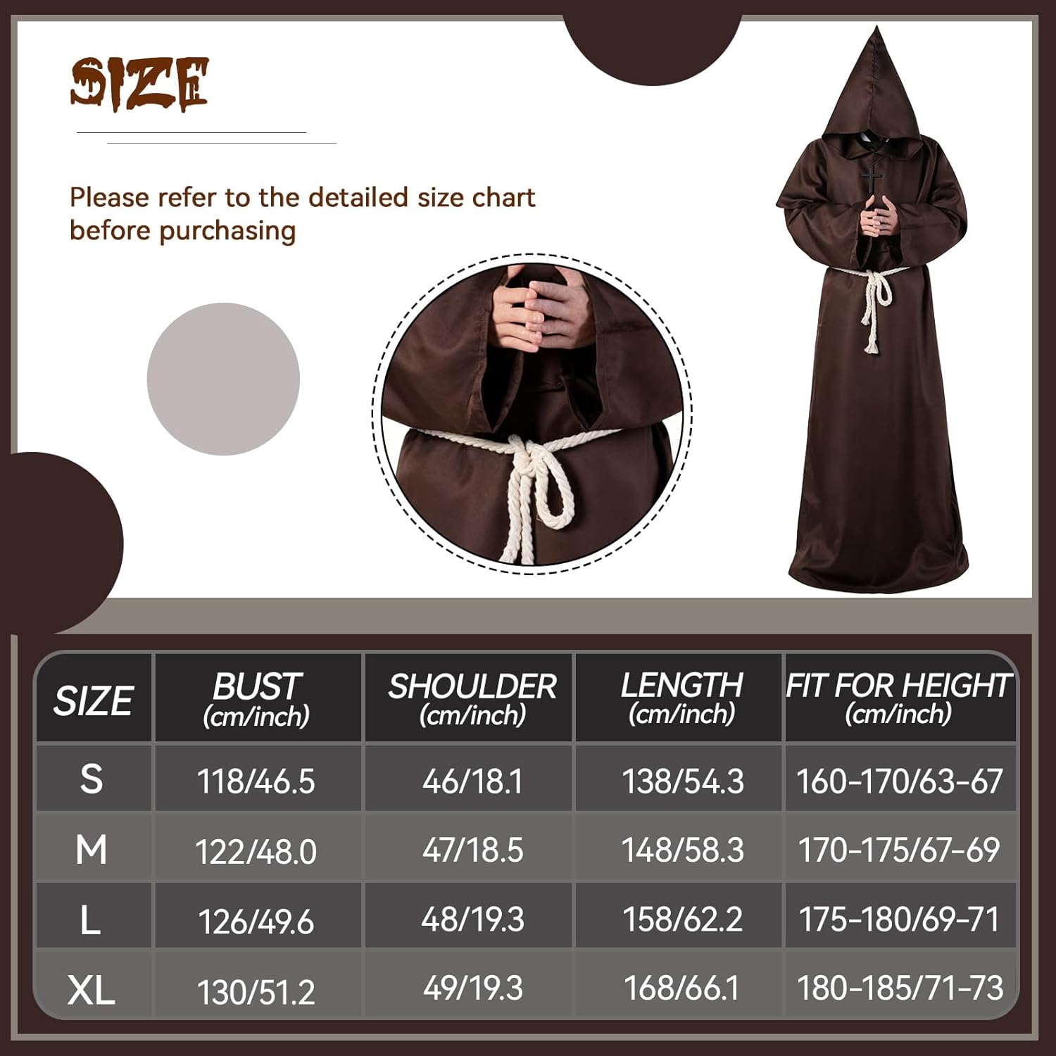 Costume da sacerdote per Halloween, marrone, S/M/L/XL, medievale, tunica horror, da uomo, per il viaggio del tempo, per carnevale e feste a tema medievale