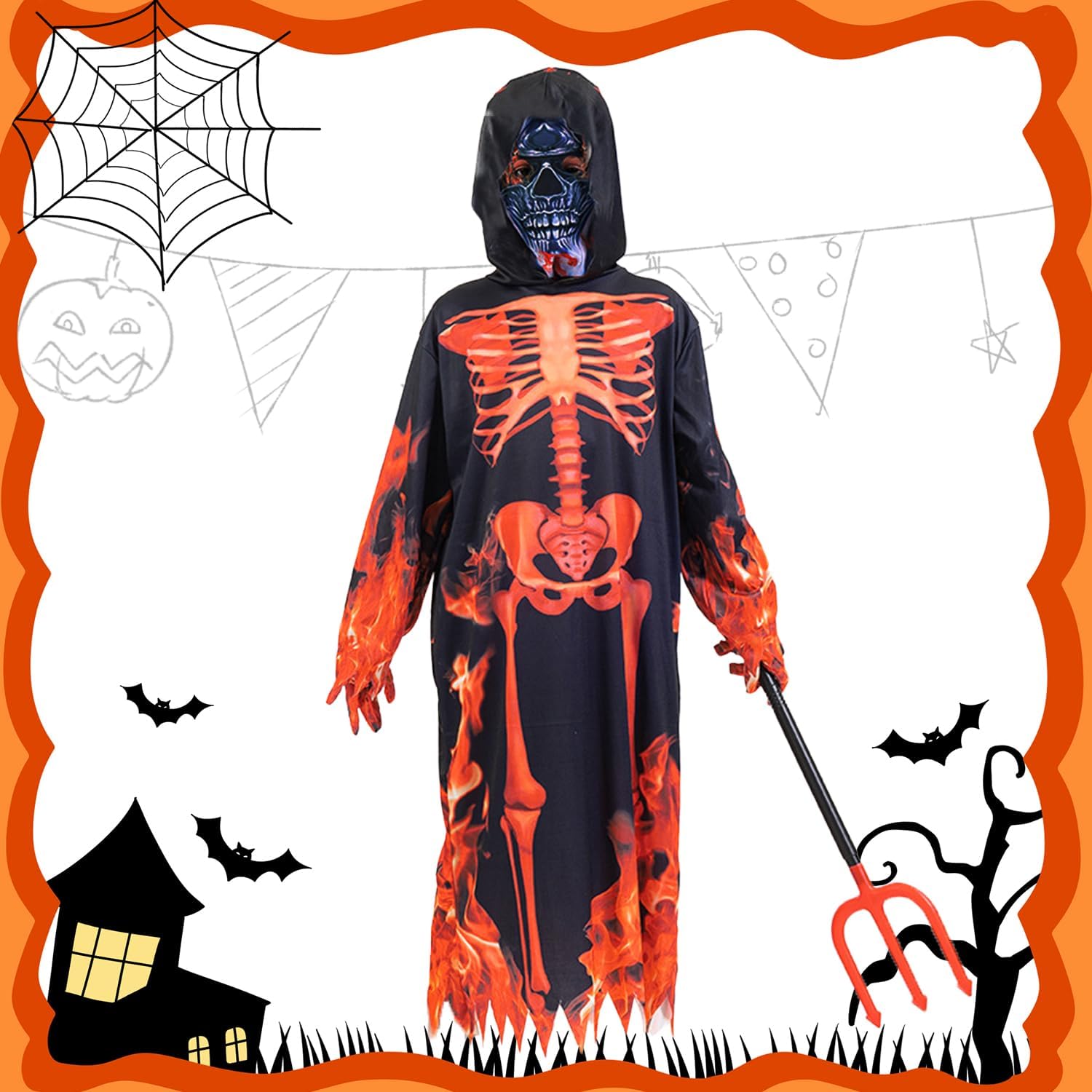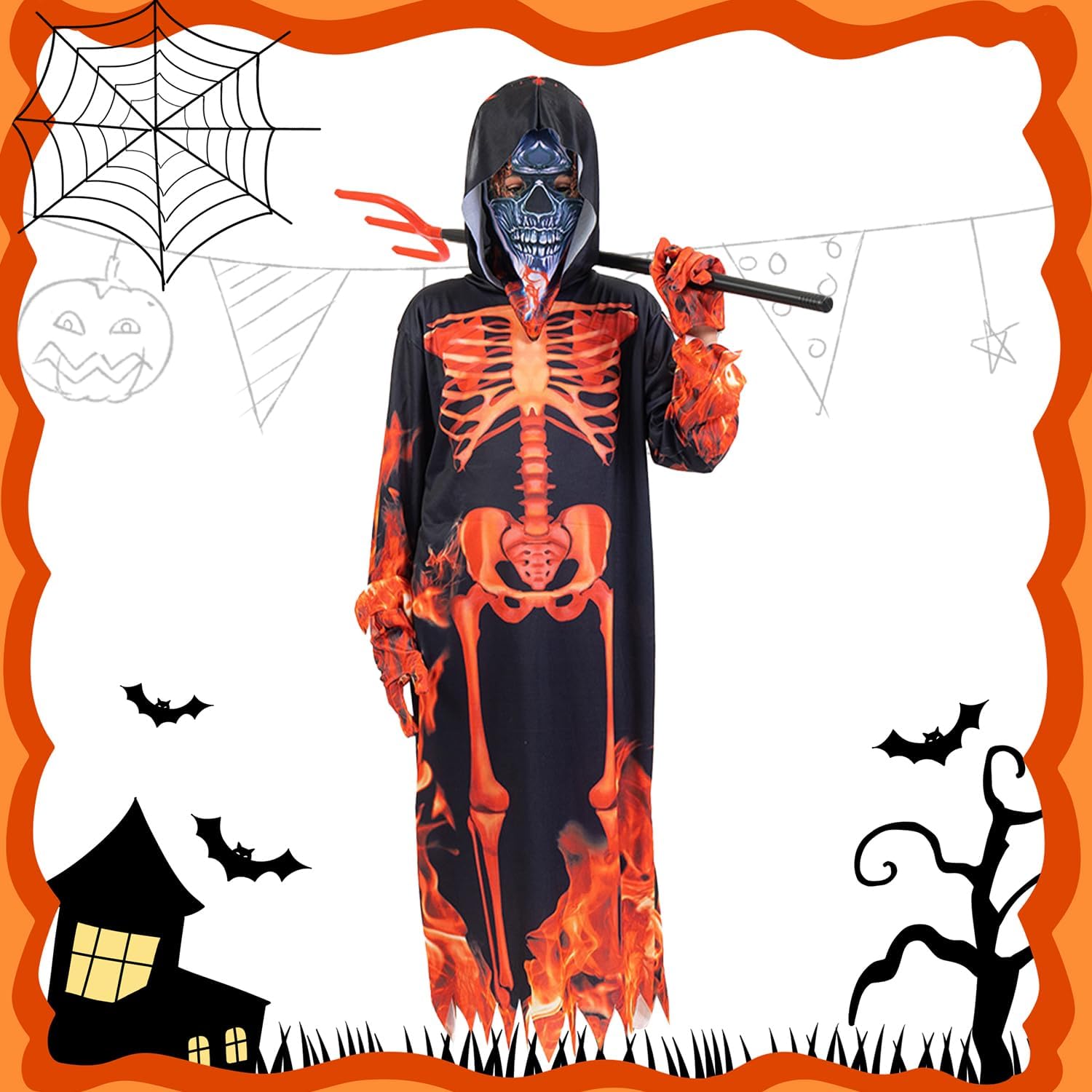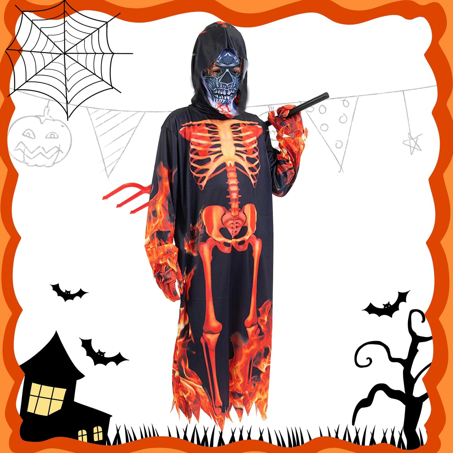 Descrizione prodotto Costume da Scheletro per Bambini, Costume Da Diavolo per Bambini con Maschera Guanti Tridente, Costume Da Scheletro per Halloween, Costume Halloween per Bambini Cosplay Carnevale Feste Avviso di sicurezza Contiene giocattolo. Si raccomanda la sorveglianza di un adulto