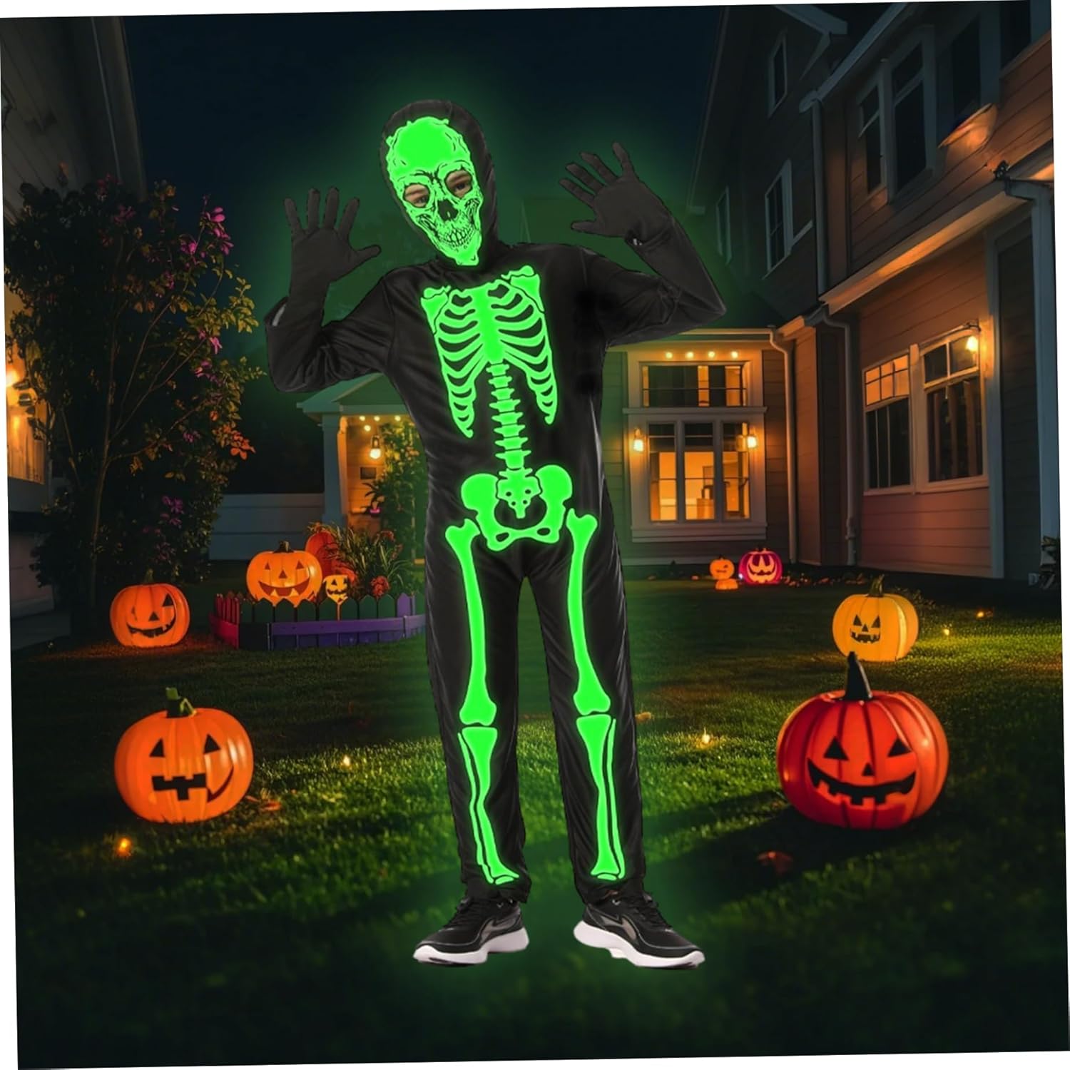 Tessuto morbido e confortevole: realizzato con materiali traspiranti e elastici, questo costume a tutto il corpo mantiene i bambini accoglienti e senza restrizioni, perfetti per l'usura per tutto il giorno durante il trucco o il gioco Set completo con guanti: il costume include guanti abbinati, fornendo un look da scheletro senza soluzione di continuità dalla testa ai piedi che migliora l'effetto inquietante e prepara il vestire senza problemi Facile cura e durata: realizzato con tessuti di qualità, questo costume è lavabile in lavatrice e costruita per sopportare le attività energetiche dei bambini piccoli mantenendo il suo bagliore e il suo aspetto vibrante Design unisex per tutti i bambini: progettato per adattarsi a ragazzi e ragazze, questa versatile abito da scheletro ospita bambini di varie dimensioni e stili, rendendolo un'ottima scelta per fratelli o amici Divertimento bagliore-nel dark: con vibranti stampe scheletriche bagliore nel buio, questo costume assicura che il bambino si distingua durante le feste di Halloween notturne e feste spettrali, aggiungendo eccitazione e visibilità