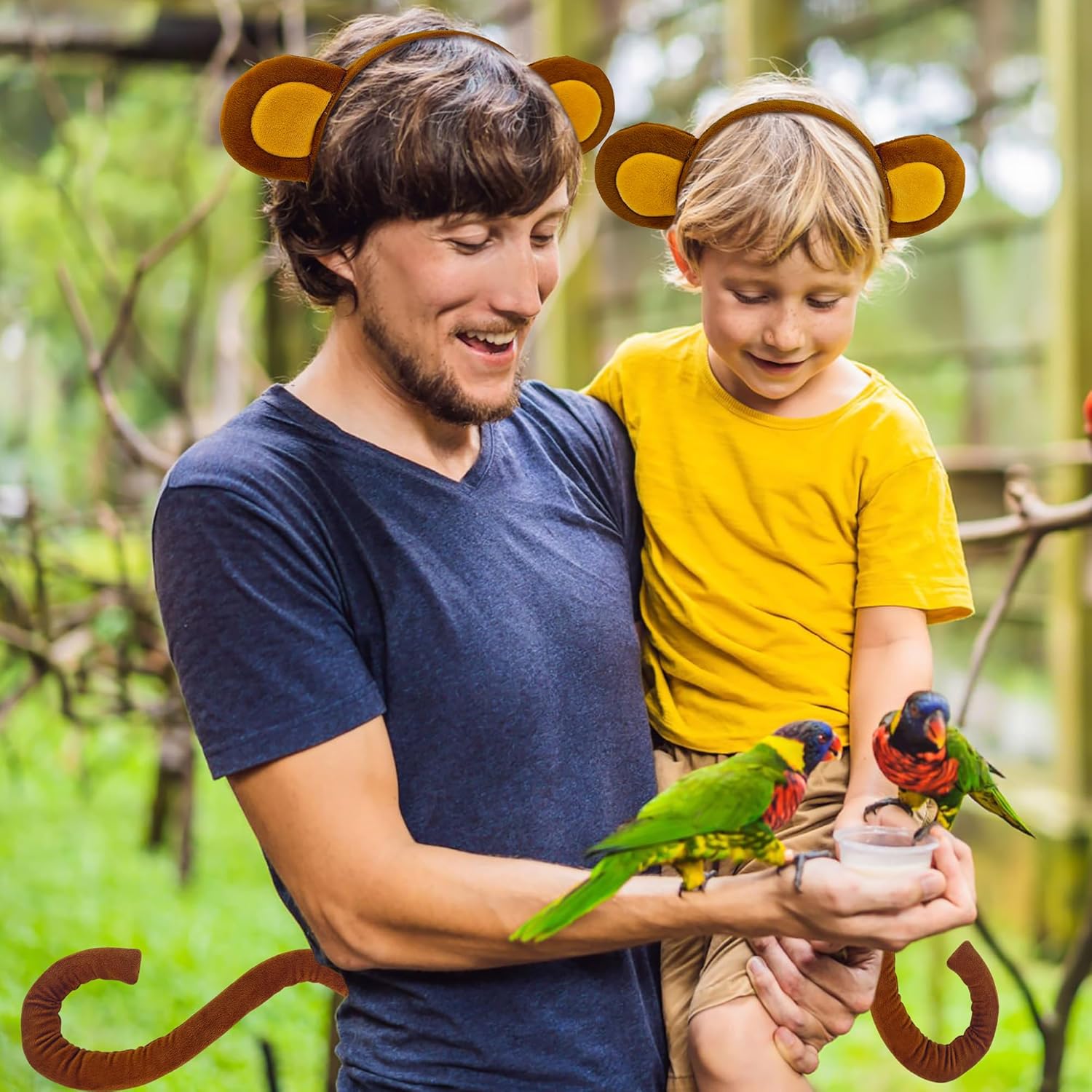 Costume da scimmia, con orecchie e coda di scimmia, costume da scimmia con coda, fascia per capelli, costume da animale per adulti, Halloween, carnevale