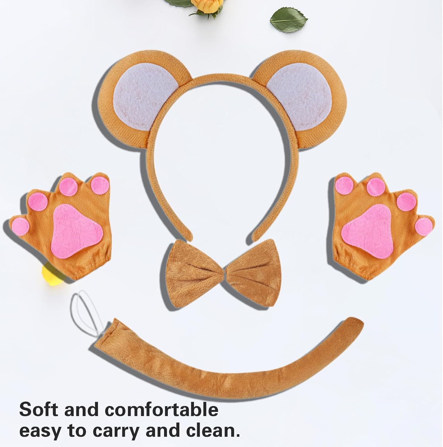 Costume da scimmia Set con coda di scimmia papillon guanto e fascia per capelli Halloween Animal Dress Up Outfit per bambini compleanno Cosplay