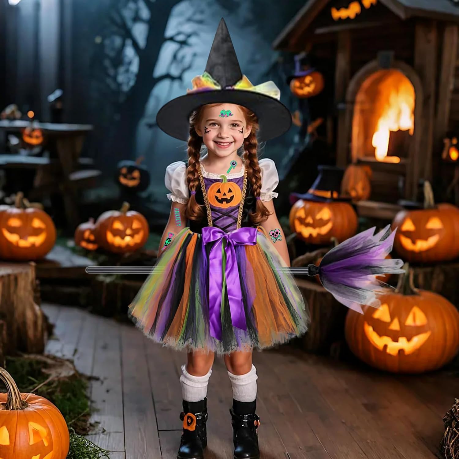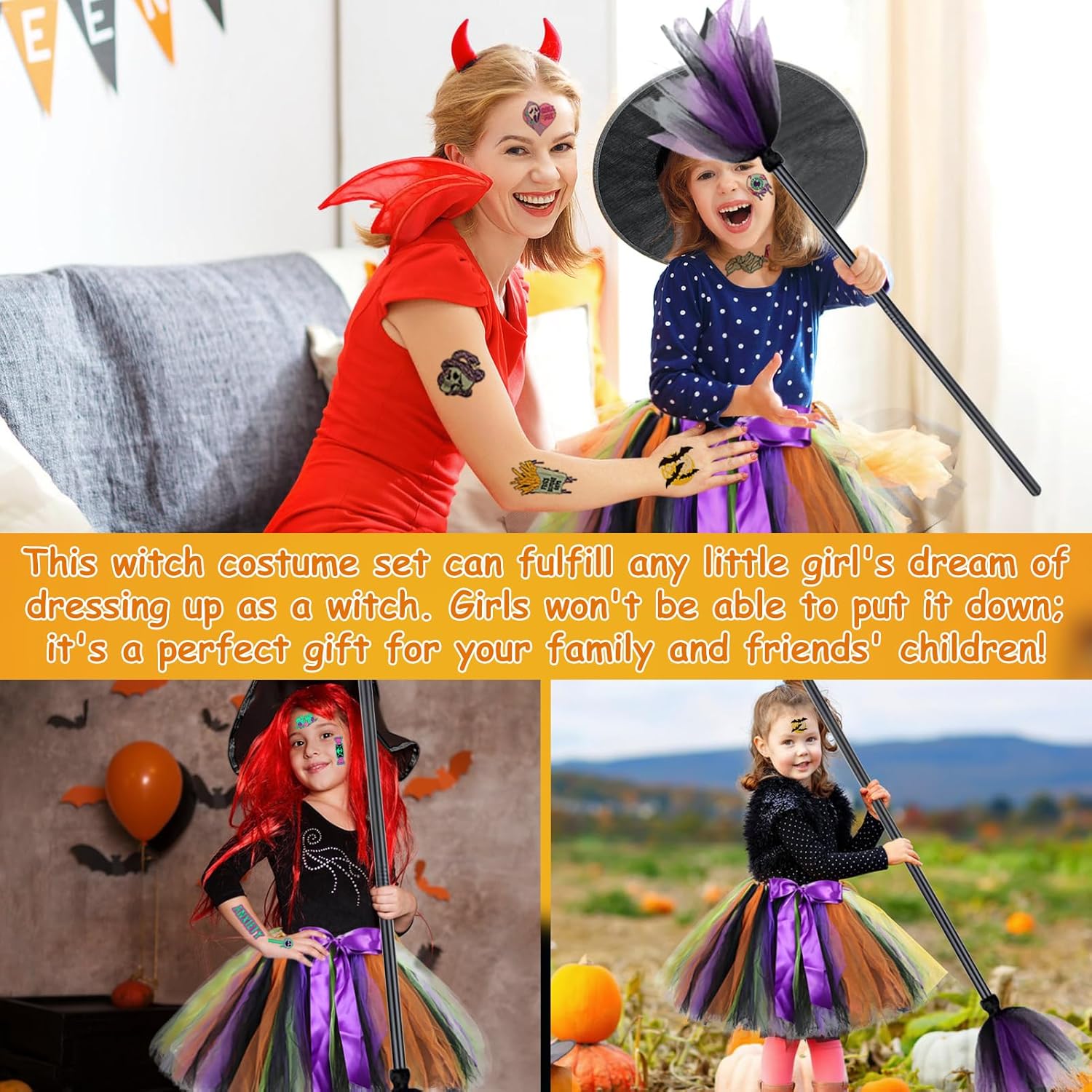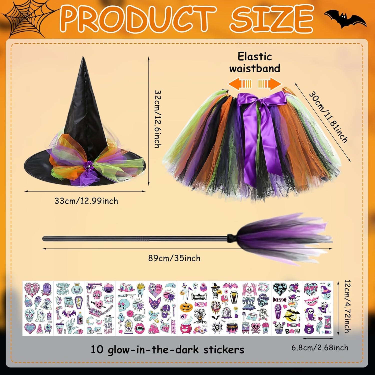 Descrizione prodotto Costume da Strega Bambina, Vestito Strega Halloween Carnevale, Costume Halloween Bambina, con Cappello Strega et Tulle Tutu adesivi luminosi e scopa, per Halloween, Cosplay, Feste Caratteristiche: - Set Completo da Strega - Include una gonna in tulle, cappello, scopa e adesivi luminosi con motivi di Halloween per un look completo e magico. - Morbido e Confortevole - Realizzato in poliestere e tulle di alta qualità, è leggero, traspirante e non irrita la pelle, garantendo massimo comfort. - Design Vivace - Combinazione di colori brillanti come nero, arancione e viola, con dettagli come il fiocco sulla gonna e il nastro sul cappello per un tocco di stile. - Versatile e Adatto a Ogni Evento - Perfetto per Halloween, feste a tema, balli in maschera e giochi di ruolo, un costume che farà sorridere ogni bambina. Specifiche: Materiale: Plastica Colore: come mostrato nell'immagine Dimensioni: vedi immagine per dettagli Lista di imballaggio: 1* Gonna in tulle 1* Cappello da strega 1* Scopa 1* Set di adesivi luminosi Nota: ➤ Si prega di consentire una leggera differenza di dimensioni a causa della misurazione manuale. ➤ A causa della luce e delle impostazioni dello schermo, i colori dell'articolo potrebbero variare leggermente dalle immagini. Avviso di sicurezza no