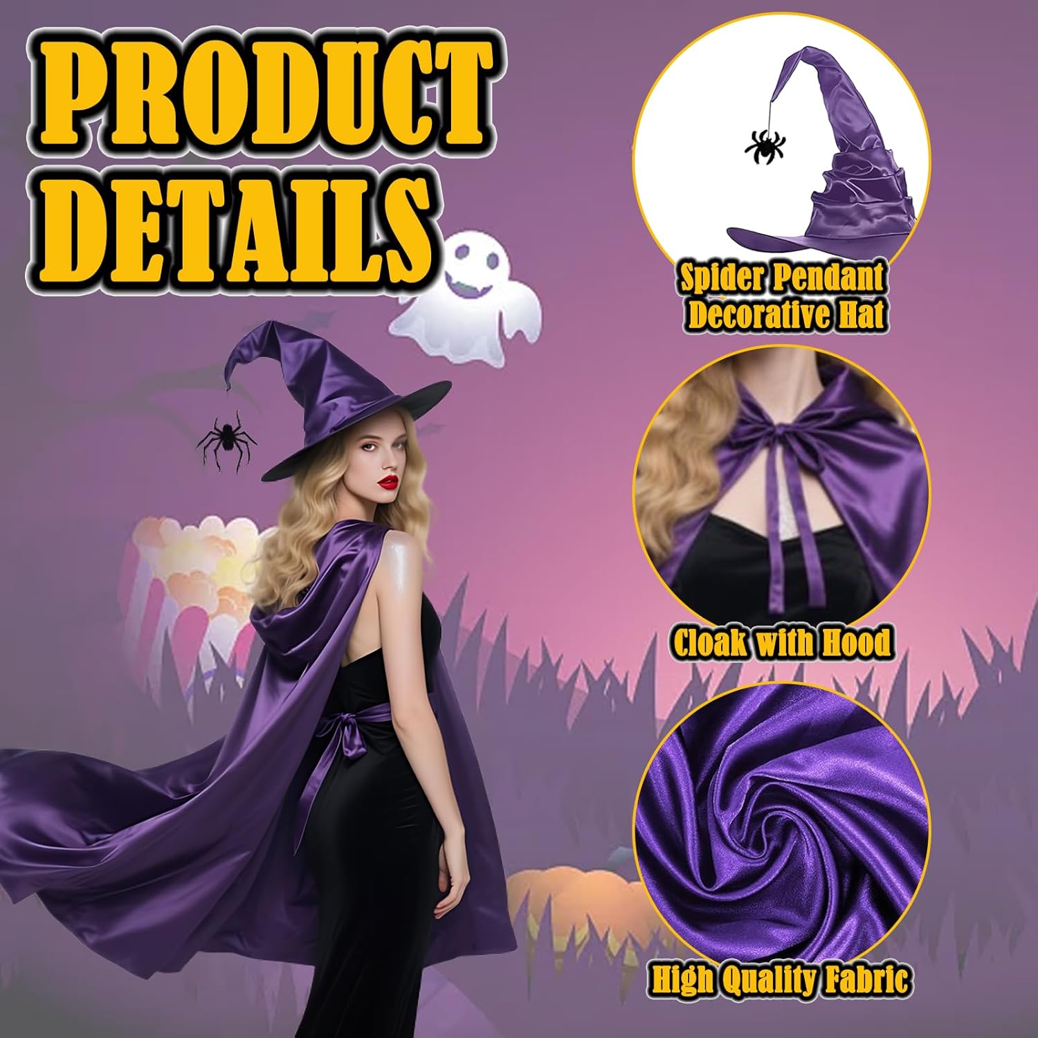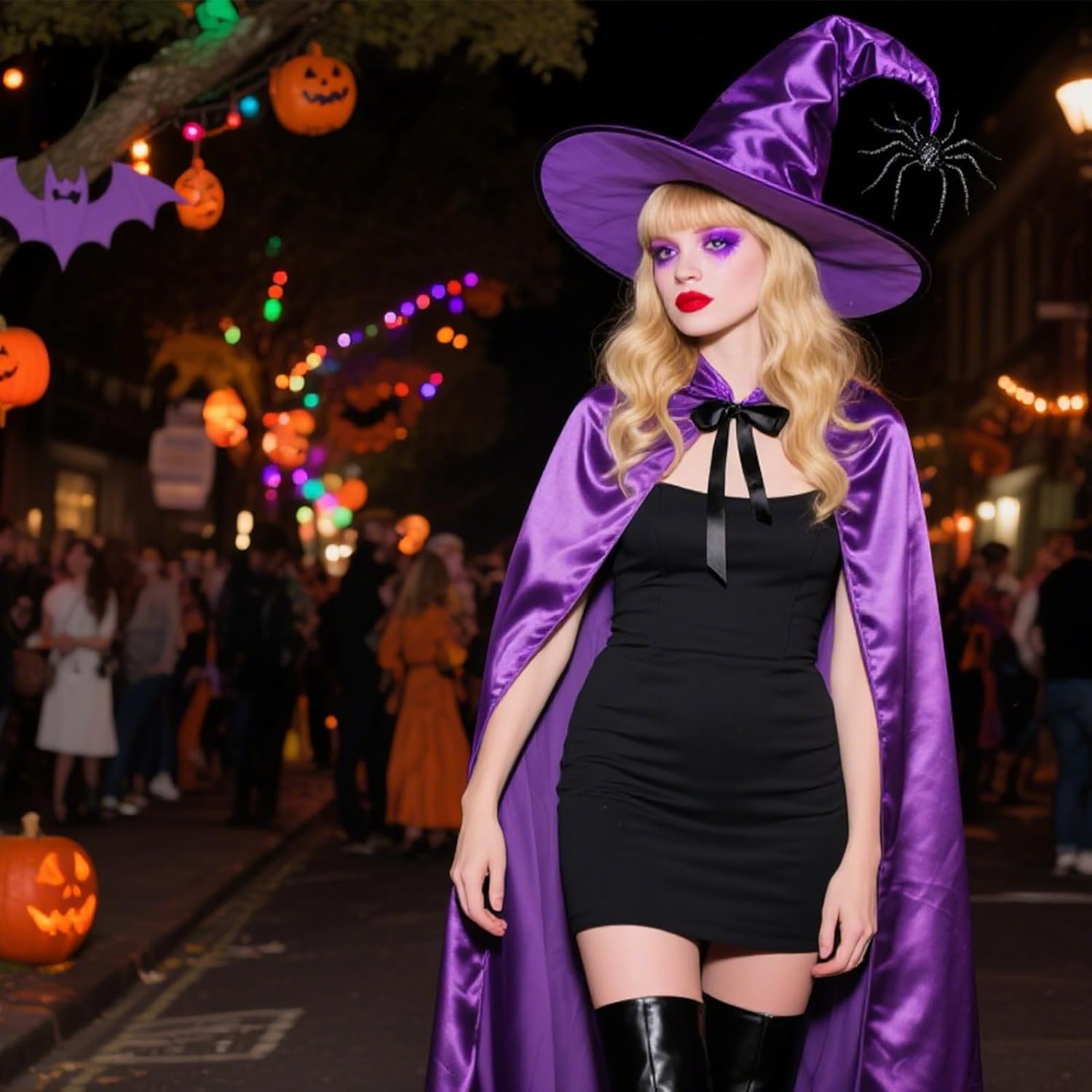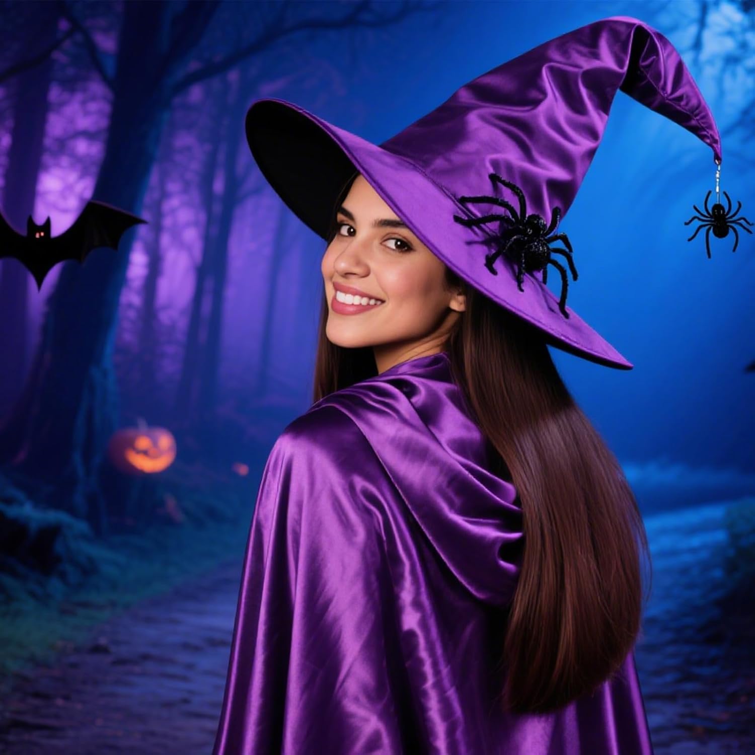 Descrizione prodotto Il set di costume da strega da donna JazRvr è composto da un misterioso mantello viola e un cappello da strega pieghevole, ideale per Halloween, carnevale e feste a tema. Il mantello lungo 110 cm offre una copertura completa e un'aura mistica, mentre il cappello da strega da 43 x 45 cm completa perfettamente l'insieme. Realizzato con materiali di alta qualità, questo set è comodo, facile da pulire e versatile. È ottimo per giochi di ruolo, cosplay e vari eventi, dove svolge un effetto affascinante. Con il suo design elegante e le caratteristiche pratiche, il costume da strega JazRvr da donna è un must have per ogni amante dei costumi. Goditi l'atmosfera mistica che questo set diffonde ad ogni festa. Avviso di sicurezza 1