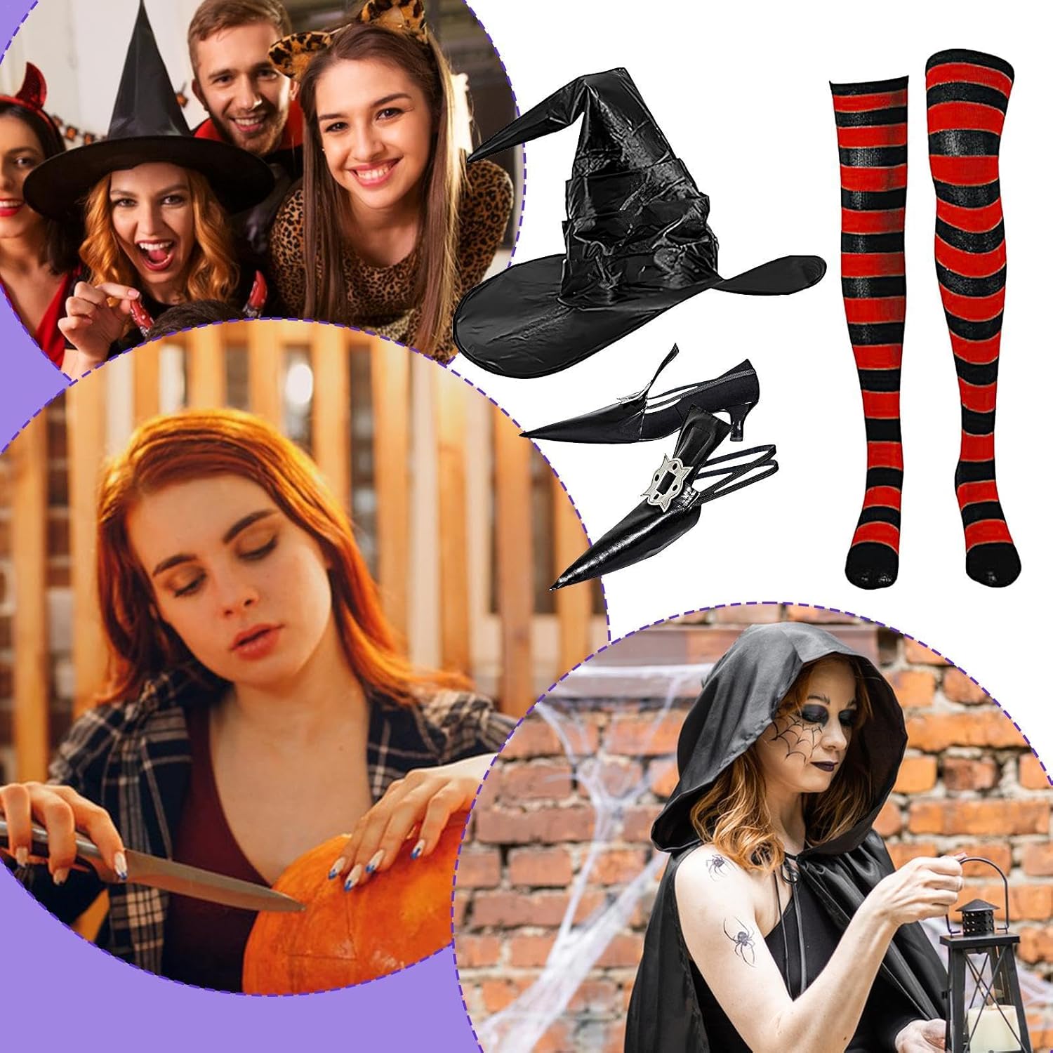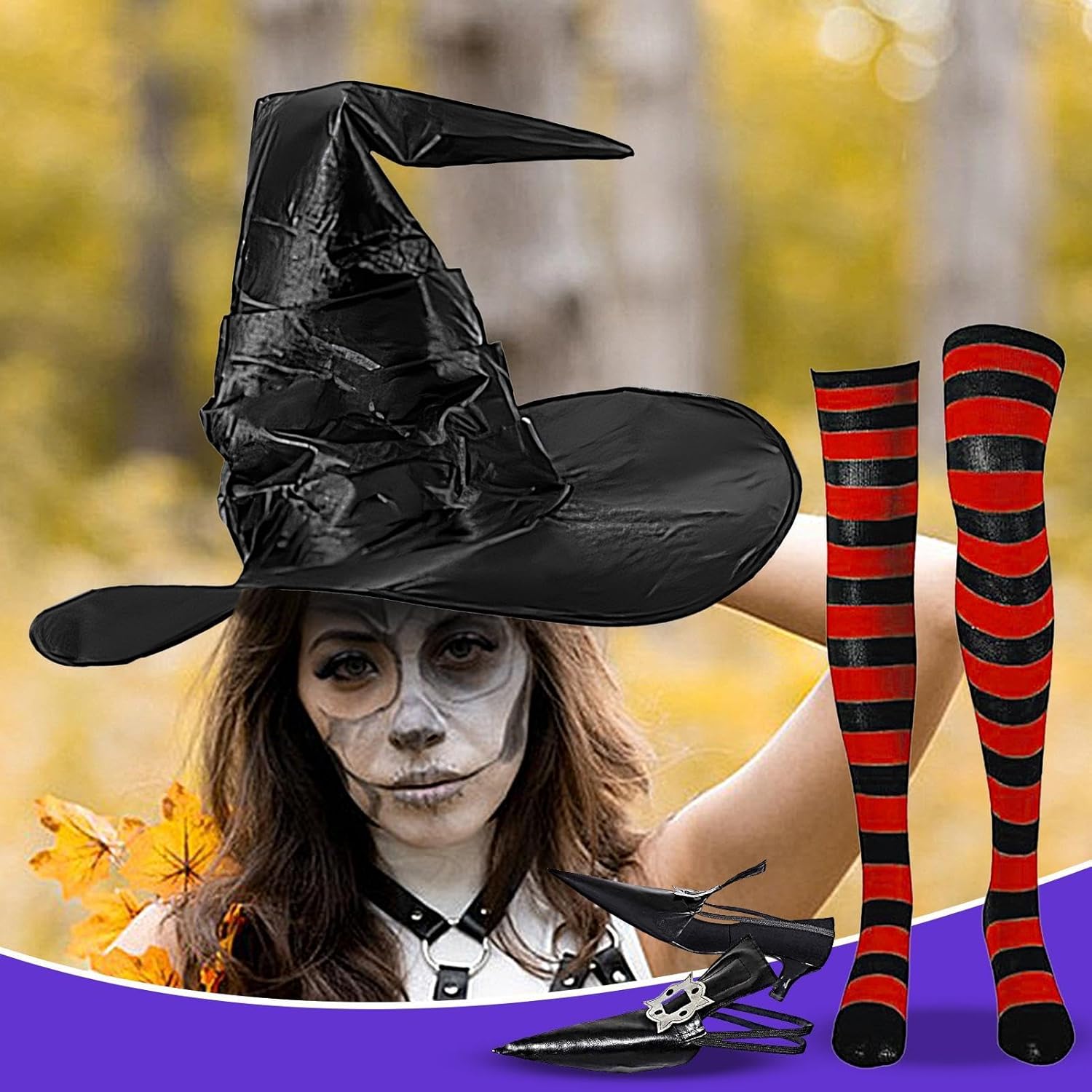 Descrizione prodotto Aggiungi un tocco spaventoso al tuo costume di Halloween con questi copriscarpe da strega. Questi copriscarpe sono realizzati in pelle PU di alta qualità e sono adatti per la maggior parte degli adulti e dei ragazzi. Sono accompagnati da un elegante cappello da strega nero che crea un'atmosfera di Halloween. Materiale: PU e raso Dimensioni del Dimensioni del cappello: circa 45 x 45 cm. Dimensioni dei calzini: circa 70 x 10 cm. Dimensioni del copriscarpe: circa 70 x 40 cm. Peso: circa 200 g. Contenuto della confezione: 1 costume di Halloween da donna. (1 paio* calze al ginocchio a righe 1 paio di copriscarpe. 1 cappello da strega) Avviso di sicurezza Inapplicabile