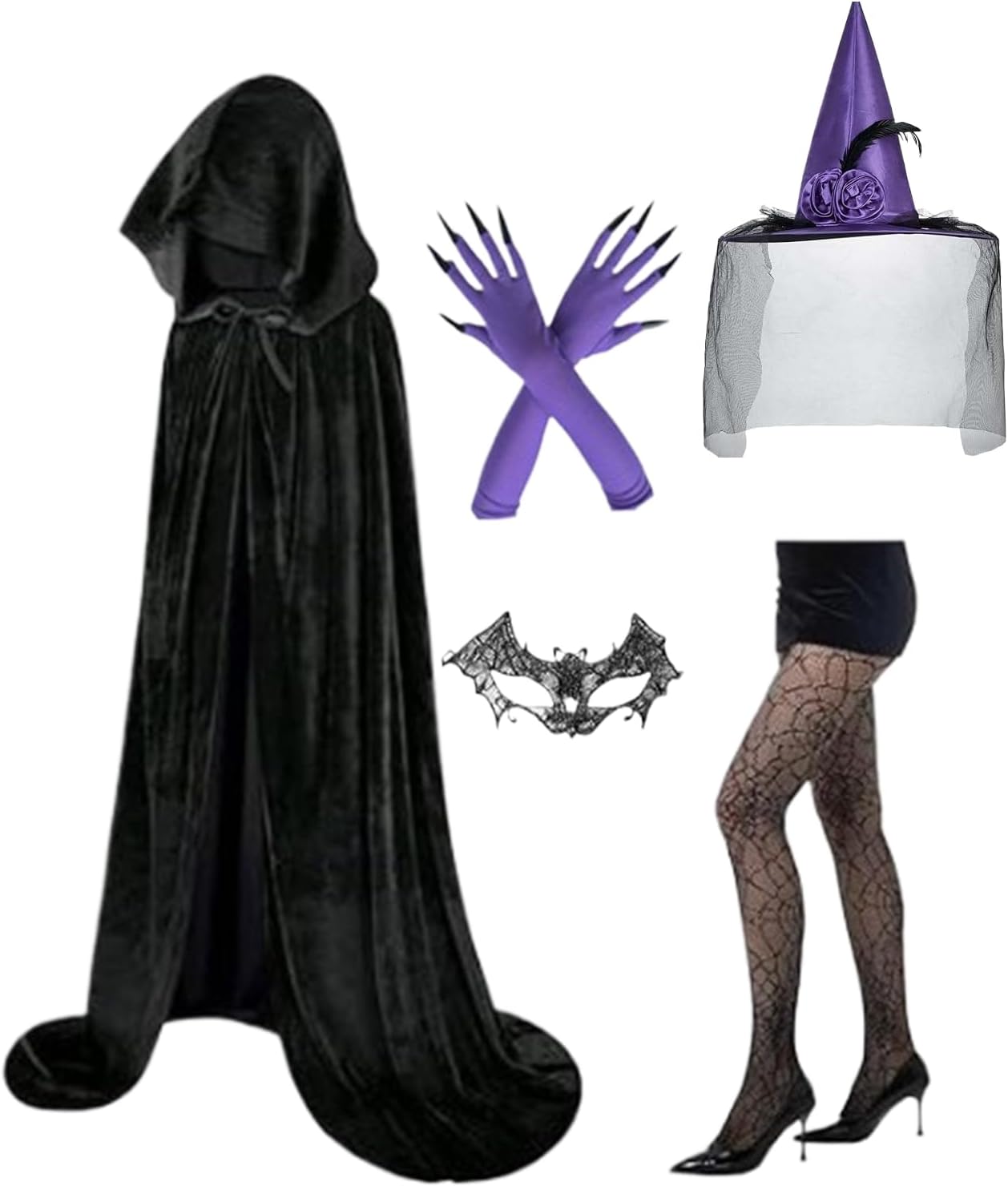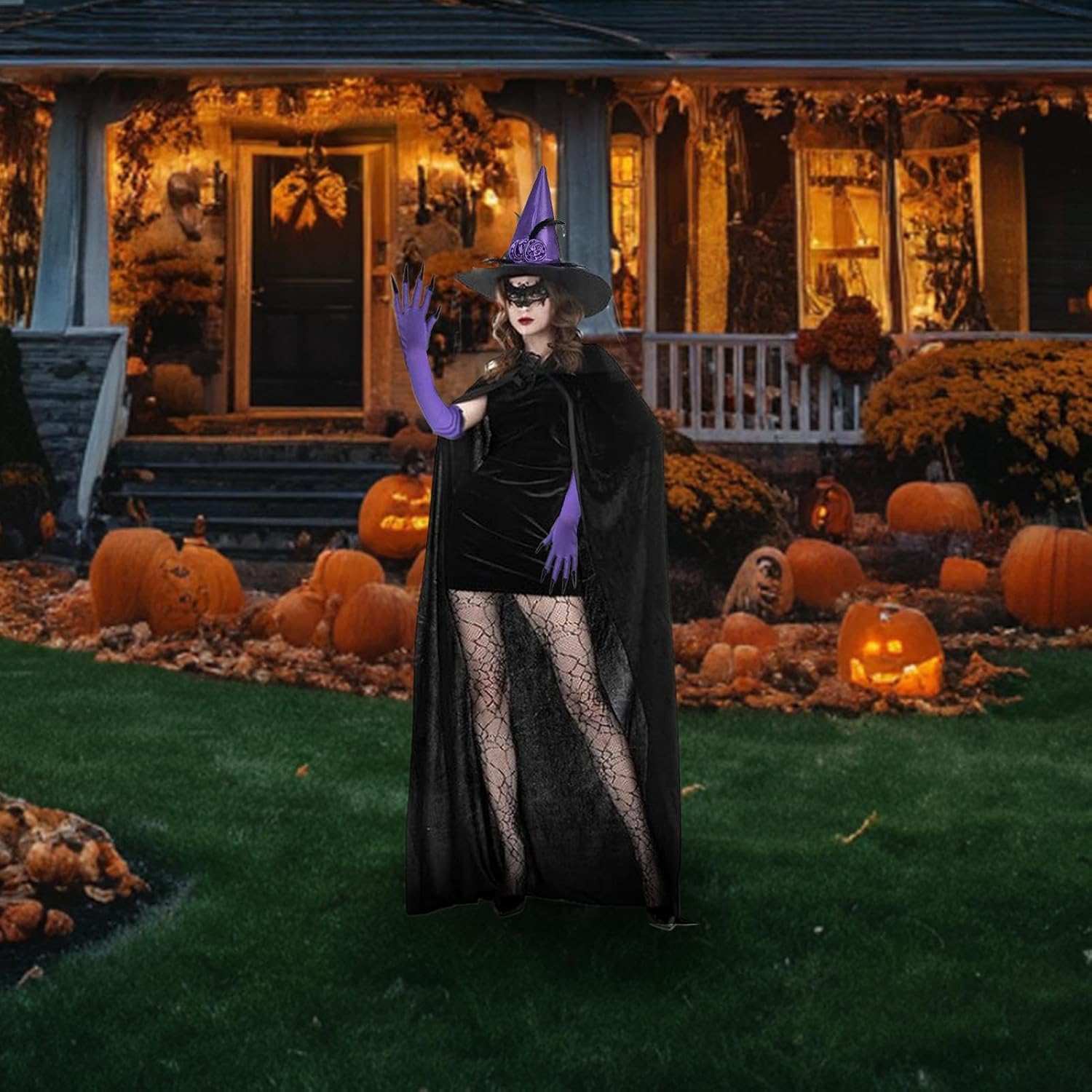 Entra nel personaggio con questo costume da strega da donna, completo di mantello, cappello, guanti, maschera di pizzo e calze. Progettato per Halloween, giochi di ruolo e appassionati di cosplay, brilla anche in fiere rinascimentali, riunioni steampunk, feste di festival, matrimoni gotici, concerti, balli e spettacoli teatrali. Questo set porta eleganza e mistero a qualsiasi incontro a tema. Materiale: poliestere. Lunghezza del mantello: 140 cm (escluso il cappuccio). Peso: circa 240 g. Nota: Il colore dell'articolo potrebbe differire leggermente da quello riportato nell'immagine. A causa della misurazione manuale, si prega di consentire una differenza di 1-2 cm nelle dimensioni. Contenuto della confezione: 1 mantello con cappuccio. 1 cappello. 1 guanto. 1* copertura del viso del pizzo 1 paio di calzini in pizzo