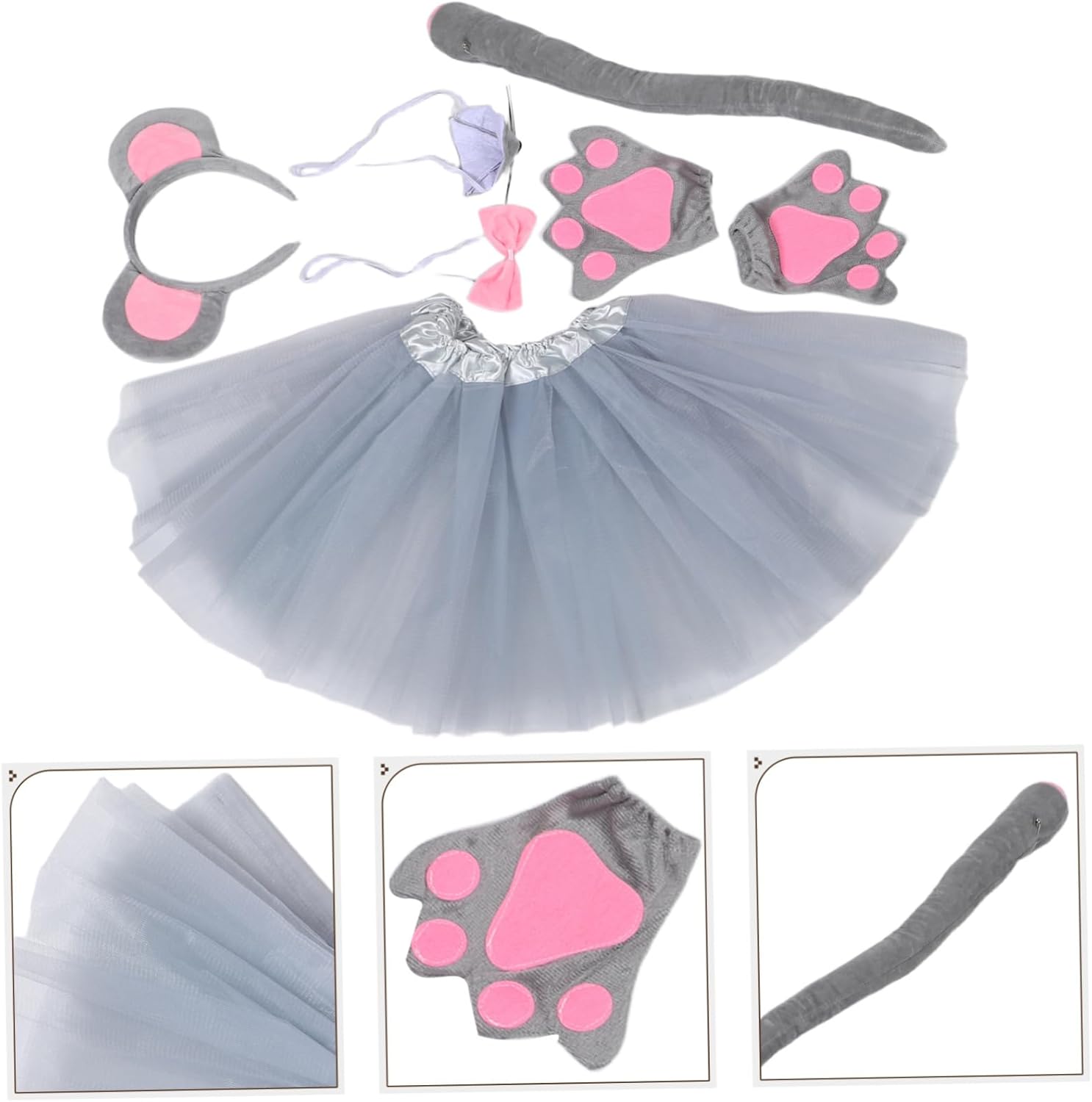 Design elegante: il set di costumi da topo presenta un design affascinante che stimola la creatività e l'immaginazione e attira l'attenzione in qualsiasi evento festivo. orecchie da topo per costume, costume da festa per animali. Vestibilità comoda: i materiali leggeri e traspiranti garantiscono una vestibilità comoda ma confortevole, permettendoti di goderti le attività senza sentirti limitato. Copricapo con orecchie da topo, costume con orecchie da topo Materiali traspiranti: realizzato in tessuto morbido e leggero, il costume garantisce comfort e libertà di movimento per un uso prolungato durante le attività, costume da topo per, tutù Artigianato dettagliato: la fascia e il tutù con orecchie da topo sono accuratamente progettati per replicare le caratteristiche degli animali e migliorare l'estetica giocosa generale, costume con fascia per animali, fascia con orecchie da topo Tessuto traspirante: i materiali morbidi e ariosi garantiscono il massimo comfort, permettendoti di muoverti liberamente e rimanere fresco anche dopo averlo indossato per ore. Accessorio per costume animale, costume con fascia per orecchie da topo