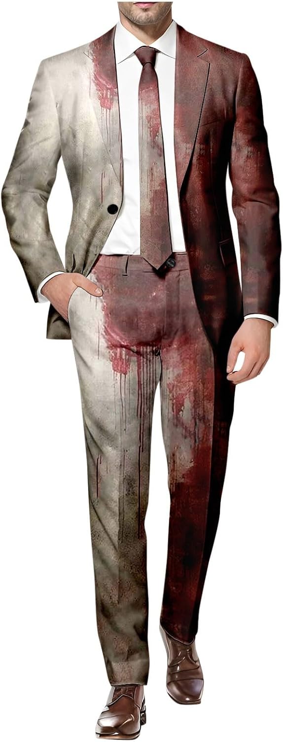 Una tuta per Halloween da uomo con design horror sanguinante e vestibilità aderente. Realizzato in materiale morbido e sportivo. Con blazer e pantaloni per un look spaventoso. Adatto per feste o eventi in costume.