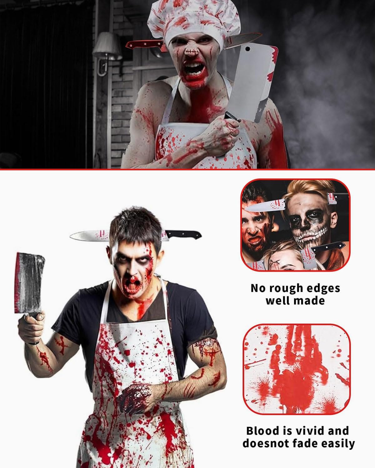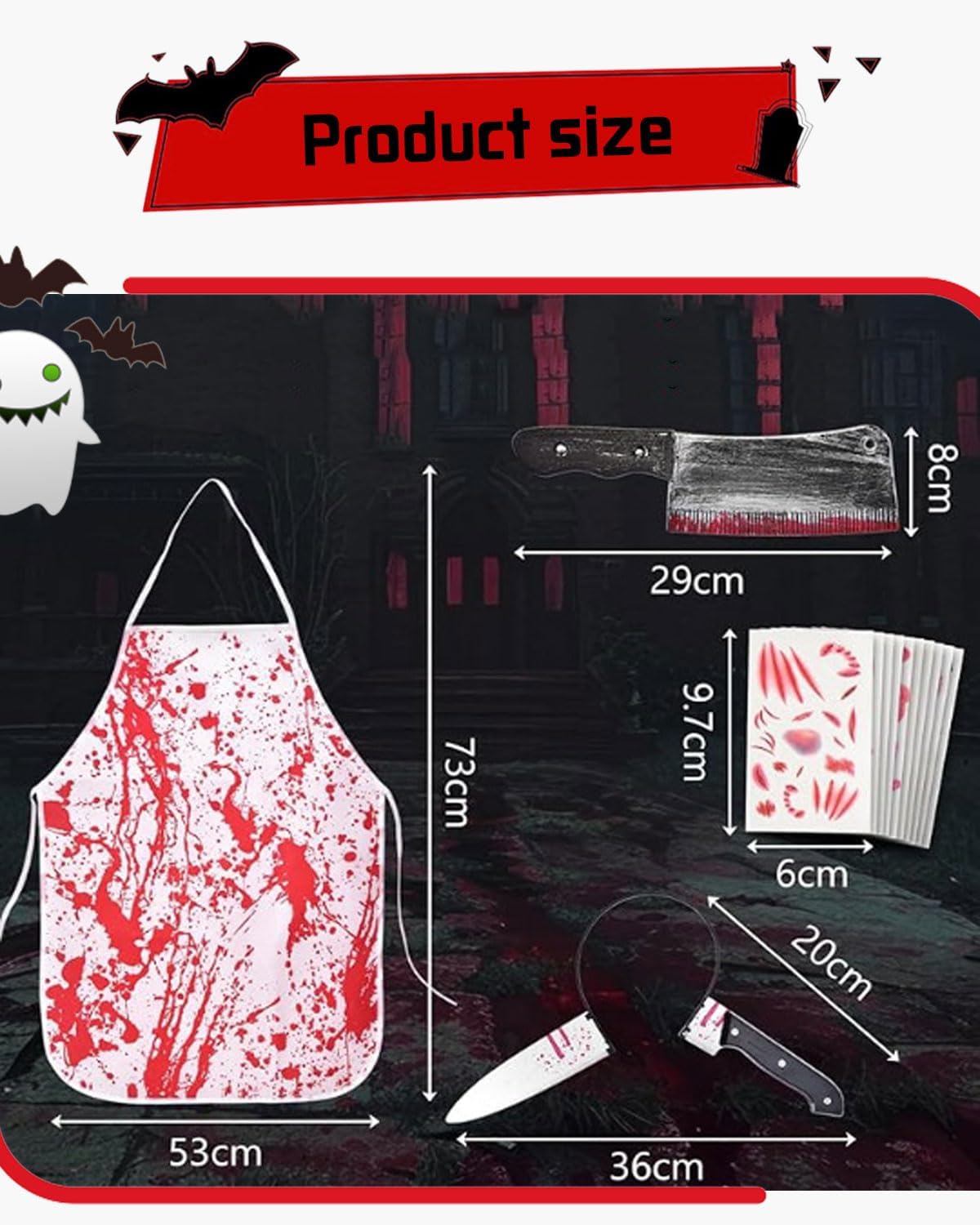 RICCHI ACCESSORI: il nostro set di costumi da uomo Mardi Gras Costume include un coltello per tagliare, una mannaia di plastica, un grembiule macchiato di sangue e un adesivo per tatuaggi - tutto ciò che serve per fare un costume memorabile e inquietante. TAGLIA ADATTA: Il Grembiule Sanguinario Mardi Gras Costume misura circa 73 x 53 cm, rendendolo ideale per la maggior parte degli adolescenti e degli adulti. Con gli accessori inclusi, si può avere un perfetto look da macellaio inquietante. MATERIALI DI QUALITÀ PREMIUM: l'abbigliamento carnevale da uomo è realizzato in poliestere di alta qualità per garantire il comfort per tutto il giorno. La mannaia e il tritacarne in plastica imitano le vere mannaie con una precisione sorprendente, ma sono realizzati con materiali sicuri per non ferire se stessi o gli altri. Inoltre, il grembiule e i guanti macchiati di sangue sono lavabili, senza candeggina. COSTUME UOMO CARNEVALICO: Entrate sotto i riflettori con il nostro spaventoso costume da uomo. Ogni accessorio è dotato di un design ispirato ai vampiri, per creare un'atmosfera inquietante che farà sicuramente girare la testa. OCCASIONE MULTIPURPOSO: Costume di Carnevale Uomo Inquietante Versatile. Ideale non solo per feste di carnevale, ma anche per feste in maschera, eventi cosplay, raduni a tema e una varietà di altre occasioni, questo costume di carnevale aggiunge un elemento di divertimento e un tocco di glamour.