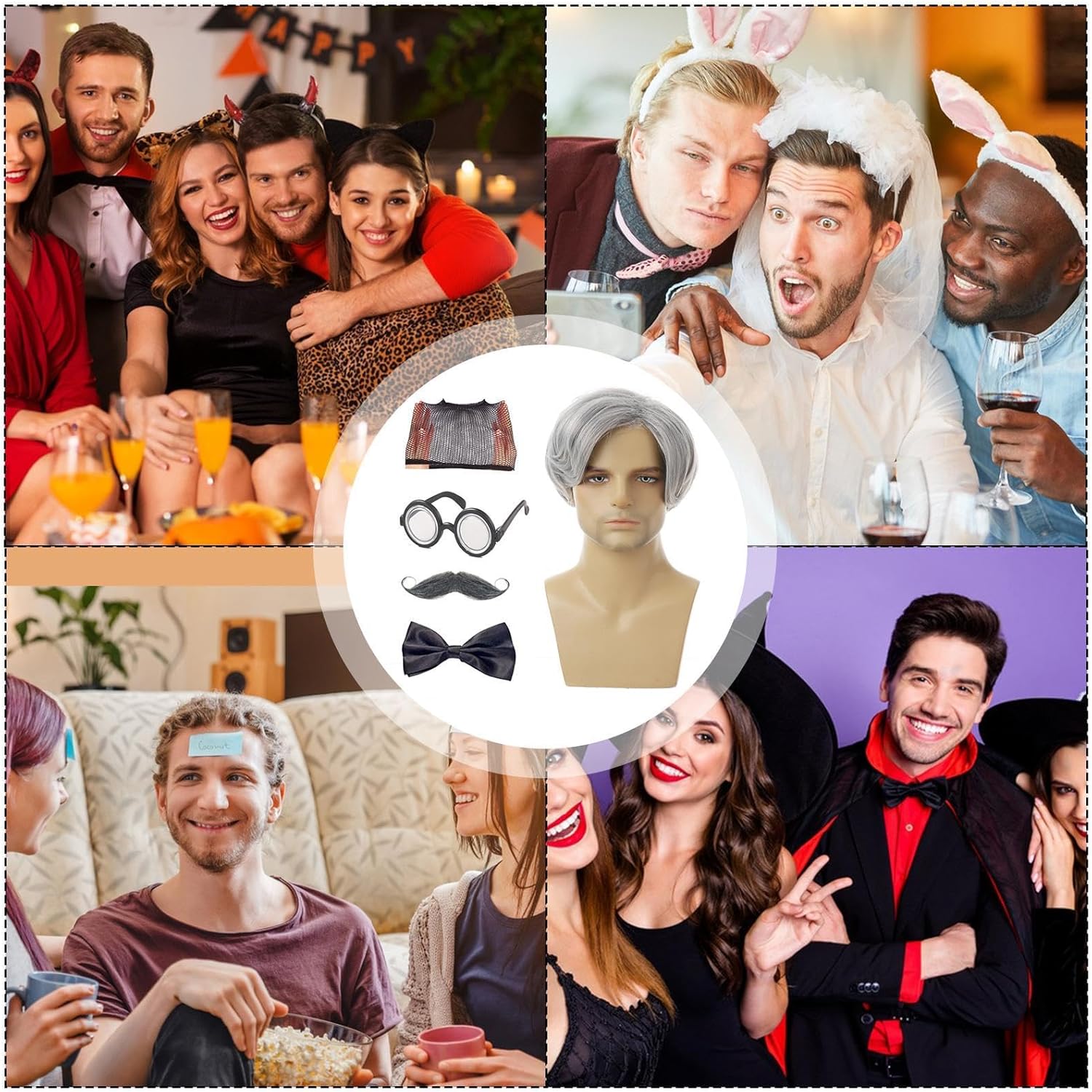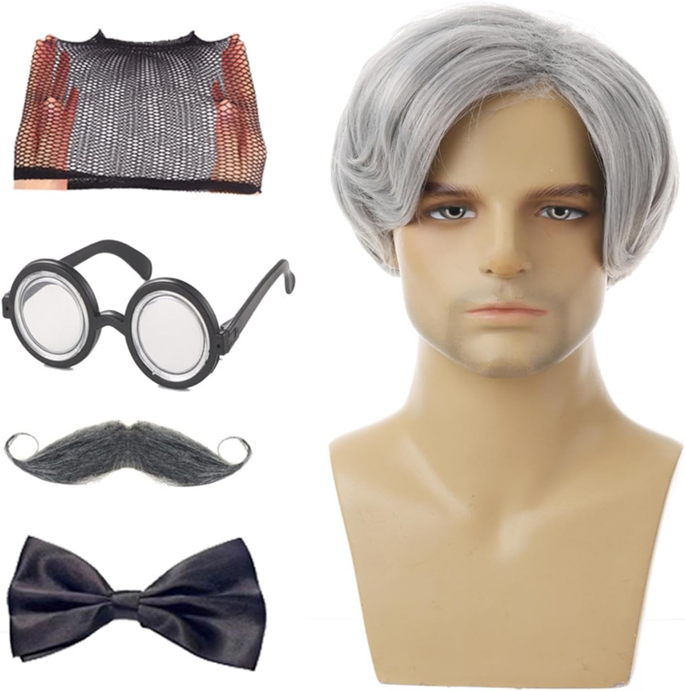 ♂Relooking perfetto per una festa: migliora il tuo evento con il nostro set di costumi da nonno; indossa la parrucca argentata, gli occhiali e i baffi, e sei pronto per divertirti e divertirti, con opzioni per accessoriare di più usando un cappello o una sciarpa. ♂Migliora l'esperienza di gioco di ruolo: con i classici occhiali rotondi con montatura rotonda, il set di costumi da nonno non solo migliorerà l'aspetto del tuo vecchio, ma aggiungerà anche saggezza e umorismo per un'esperienza più coinvolgente. Materiale robusto: sapientemente progettato con fibre sintetiche di alta qualità, questo set di costumi da nonno è rappresentato in modo realistico. La sua robusta cuffia per parrucca in poliestere è innocua, garantendo un look che non si consuma e non si scolorisce rapidamente. Ampia applicazione: adatto per eventi a tema scientifico, occasioni di fascia alta e giochi educativi, perfetto per una serie di feste come addio al nubilato. Oltre il campo di Halloween e carnevale, offre una moltitudine di usi. Regalo perfetto: migliora il tuo piacere personale con il set di costumi da nonno, un regalo unico e premuroso per tuo marito, nonno, padre o fidanzato. Perfetto per un abbigliamento unico o un uso personale, questo set è un buon modo per rendere speciale ogni giorno.