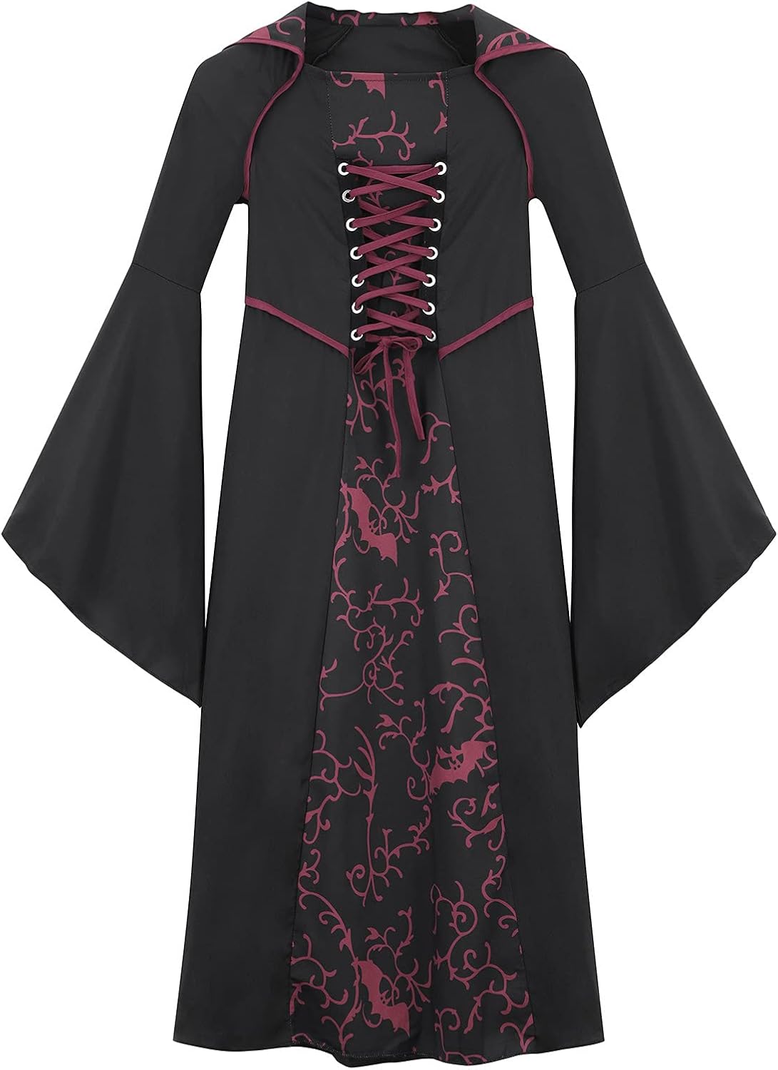 Costume Vampiro Bambina:il costume da vampiro include 1 vestito da vampiro, 1 collana, Indossando questo costume da vampiro per ragazze, la tua ragazza sarà spigolosa e fresca come un vampiro assetato di sangue, sarà la protagonista della festa,un ricco set di costumi da vampiro è sufficiente per soddisfare le esigenze di cosplay di tua figlia Diverse Taglie scelte: i nostri costumi di Halloween per bambini sono disponibili in 5 taglie. Controlla le informazioni sulla taglia nell'immagine per trovare il costume da vampiro perfetto per il tuo bambino Design con colletto rialzato:Costume Vampiro Bambina costume presenta un classico design con colletto rialzato rosso e nero, il colletto può alzarsi o piegarsi facilmente - un dettaglio di nastro rosso sul petto e stampe vintage impreziosiscono, La stampa pipistrello leggermente visibile nel tulle aggiunge un senso di mistero,mentre la classica combinazione di rosso e nero conferisce all'abito un aspetto glamour Morbido e Delicato Sulla Pelle:Costume Vampiro Bambina nostro costume da vampiro per bambini è realizzato in morbido, traspirante e confortevole, evita irritazioni cutanee, non sbiadisce, cerniera invisibile per indossarlo e toglierlo facilmente,abbigliamento per carnevale di Halloween perfetto adatto alle ragazze Ampia applicazione:Questo vestito vampiro bambina è perfetto per la festa di Halloween, la festa di carnevale, la festa a tema, il cosplay, la festa horror, il gioco dei vampiri, lo spettacolo teatrale e altro ancora,spettacoli teatrali, costumi di carnevale, ecc. Può mostrare personalità e mistero e rendere le ragazze affascinanti principesse vampiri