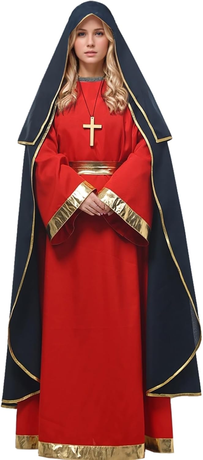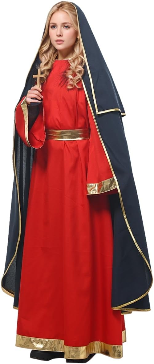 UniqKaliber Costume da Vergine Maria Alone, da donna, per adulti, Natività, costume biblico