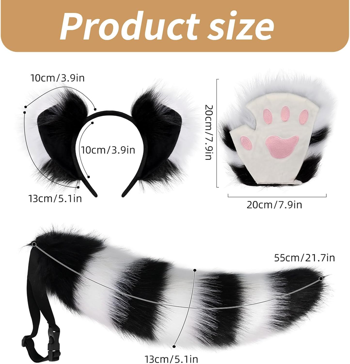 Costume da volpe per Halloween, con orecchie di peluche, fascia, coda, guanti, per cosplay di bambini e adulti, 3 pezzi Caratteristiche: La confezione include: 1 fascia per capelli con orecchie di animale; 1 coda lunga; 1 paio di guanti. Realizzato in tessuto, leggero e comodo da indossare. Halloween volpi vestire costume set per adulti cosplay feste, feste di compleanno per bambini, Halloween, mascherate Questa coda lunga volpe dotata di cintura regolabile con fibbia, comoda e facile da indossare, si adatta alla maggior parte dei bambini, adolescenti e adulti, non si sente troppo stretta e troppo larga. Questo accessorio per costume da volpe di Halloween, set di costumi cosplay per animali utilizzato per feste cosplay per bambini e adulti, feste a tema animali, travestimento di Halloween. Adatto per Halloween, feste cosplay, spettacoli di laurea, spettacoli teatrali, attività asili bambini e genitori. Specifiche tecniche: Componente: Panno Colore: Bianco Nero; Marrone Nero; Marrone Bianco; Grigio Bianco Dimensioni della fascia: ca. 25 x 17 cm. Dimensioni dei guanti: ca. 20 x 20 cm. Dimensioni della coda: ca. 55 x 13 cm. Peso: circa 320 g. La confezione include: 1 fascia per capelli. 1 coda lunga. 1 paio di guanti. Nota: Si prega di considerare un margine di errore di 0-1 cm a causa della misurazione manuale. Assicurati di non avere un problema prima di fare un'offerta. 2. L'immagine potrebbe non rispecchiare il colore reale a causa delle diverse impostazioni dei monitor