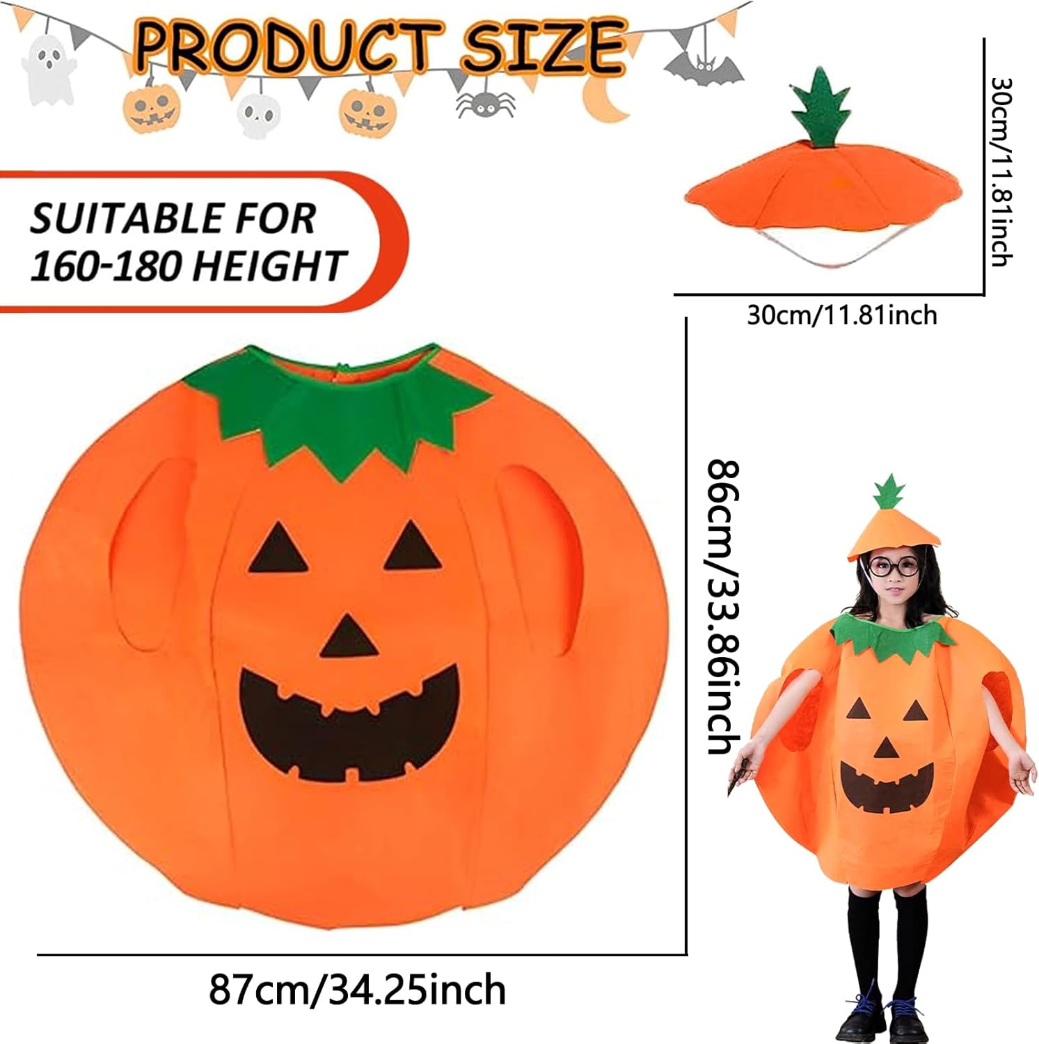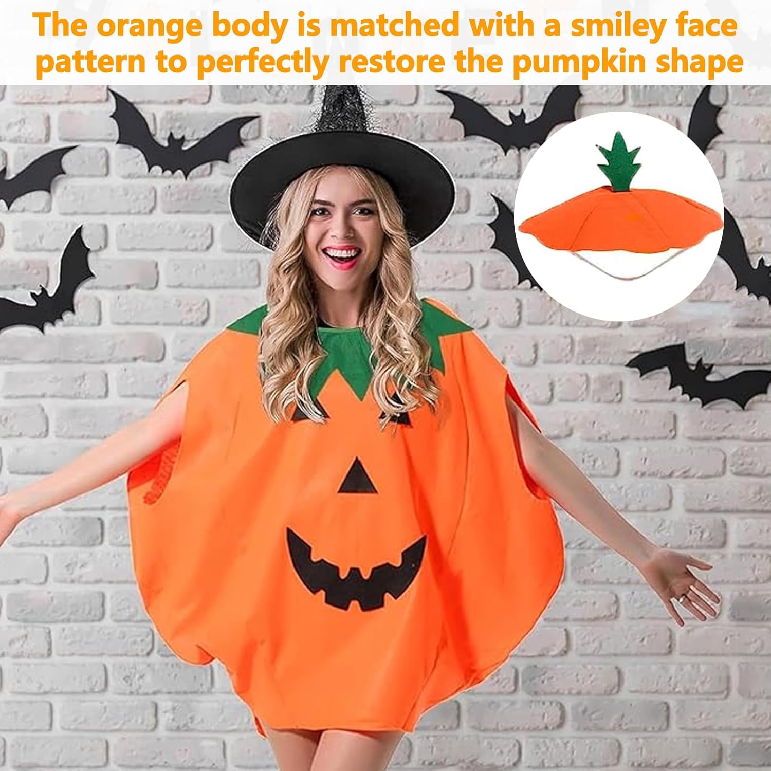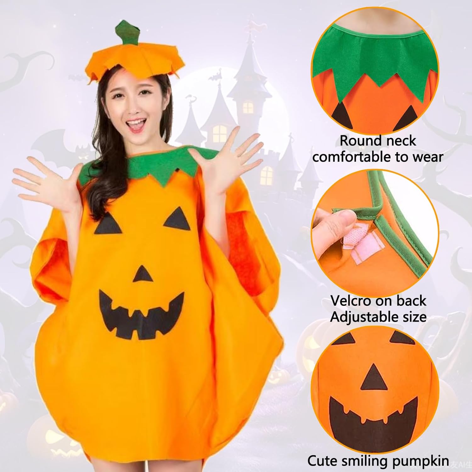 Descrizione prodotto Costume da Zucca di Halloween,Costume da Zucca per Adulto, Costumi Zuccacostume con Cappello,Vestito unisex per travestimento a forma di zucca. Caratteristiche: Costume da Zucca di Halloween materiale morbido e leggero, comodo da indossare, non aggiungerà alcun peso. Cappello ha un banda elastica per indossarlo facilmente, costumi da zucca ha una in velcro sul retro, facile da indossare e togliere. Il design classico della zucca con colori e motivi abbinabili, aggiunge l'atmosfera del festival di Halloween. Specifiche del prodotto: Materiale: Non tessuto. Dimensioni: Come mostrato nell'immagine. Colore: Arancione. Il pacchetto include: 1 x Costumi da zucca di Halloween 1 x Cappello da zucca Nota: Si prega di consentire una leggera differenza di dimensione a causa della diversa misurazione manuale. A causa della luce e della differenza di impostazione dello schermo, il colore dell'articolo potrebbe essere leggermente diverso dalle immagini. Avviso di sicurezza NO