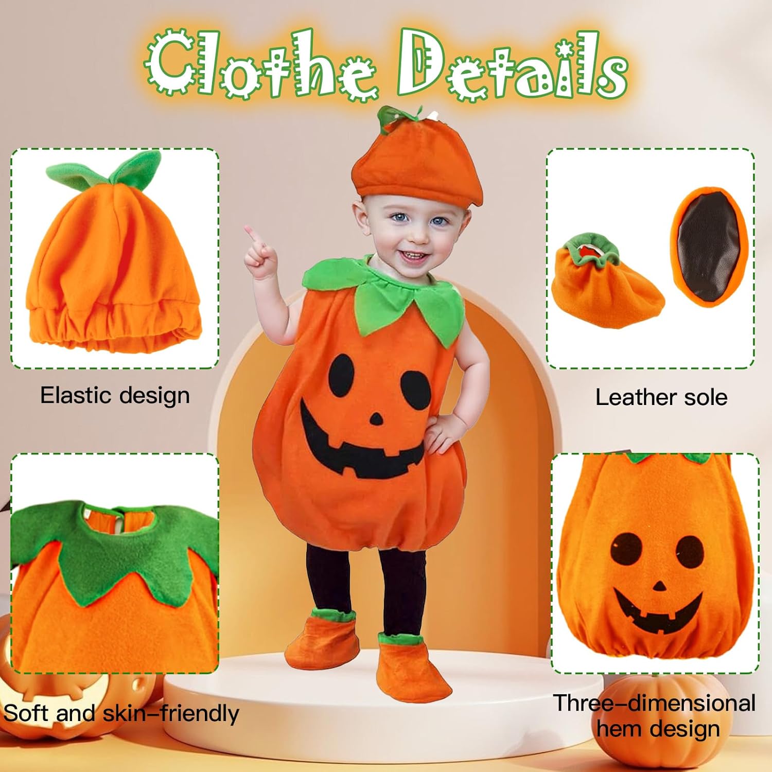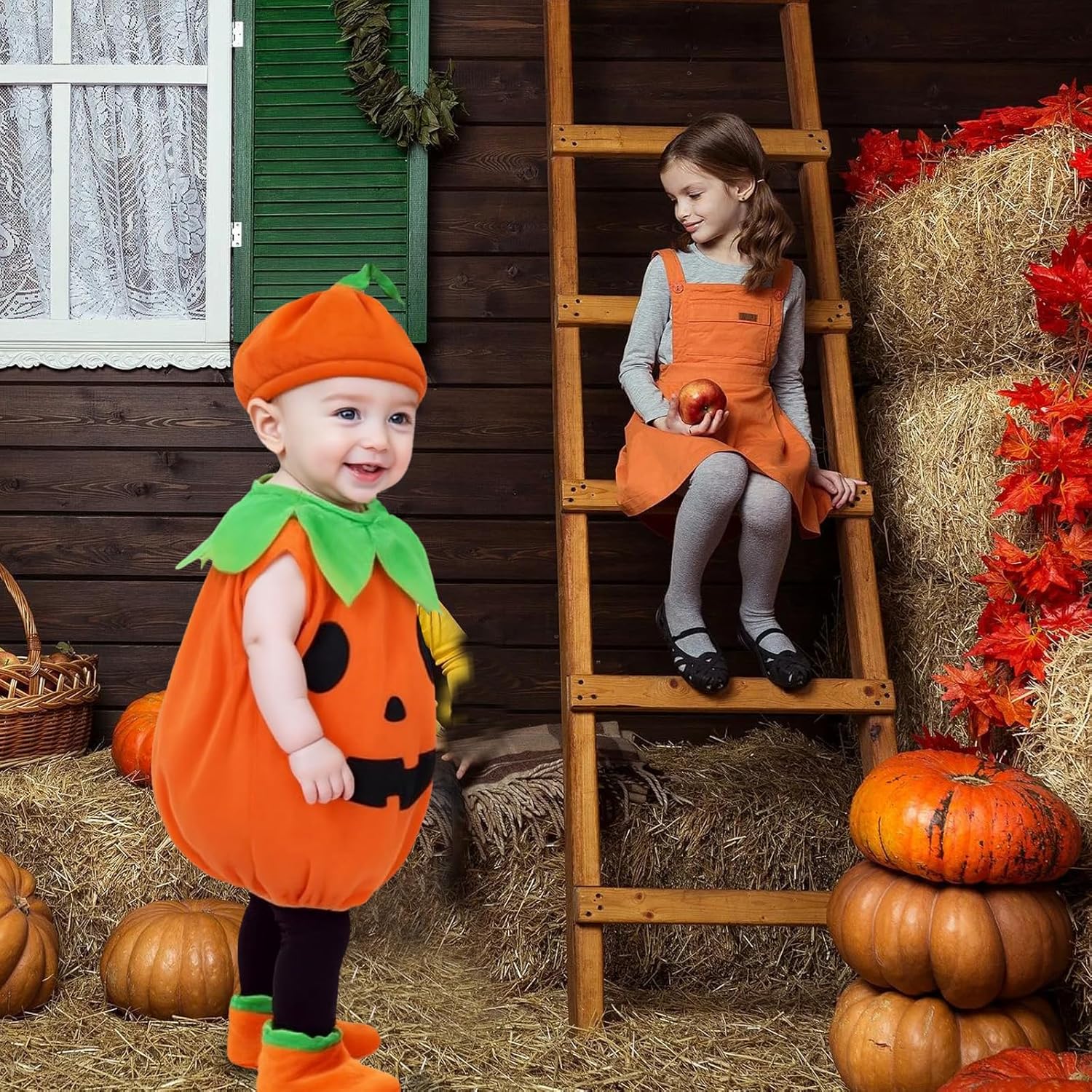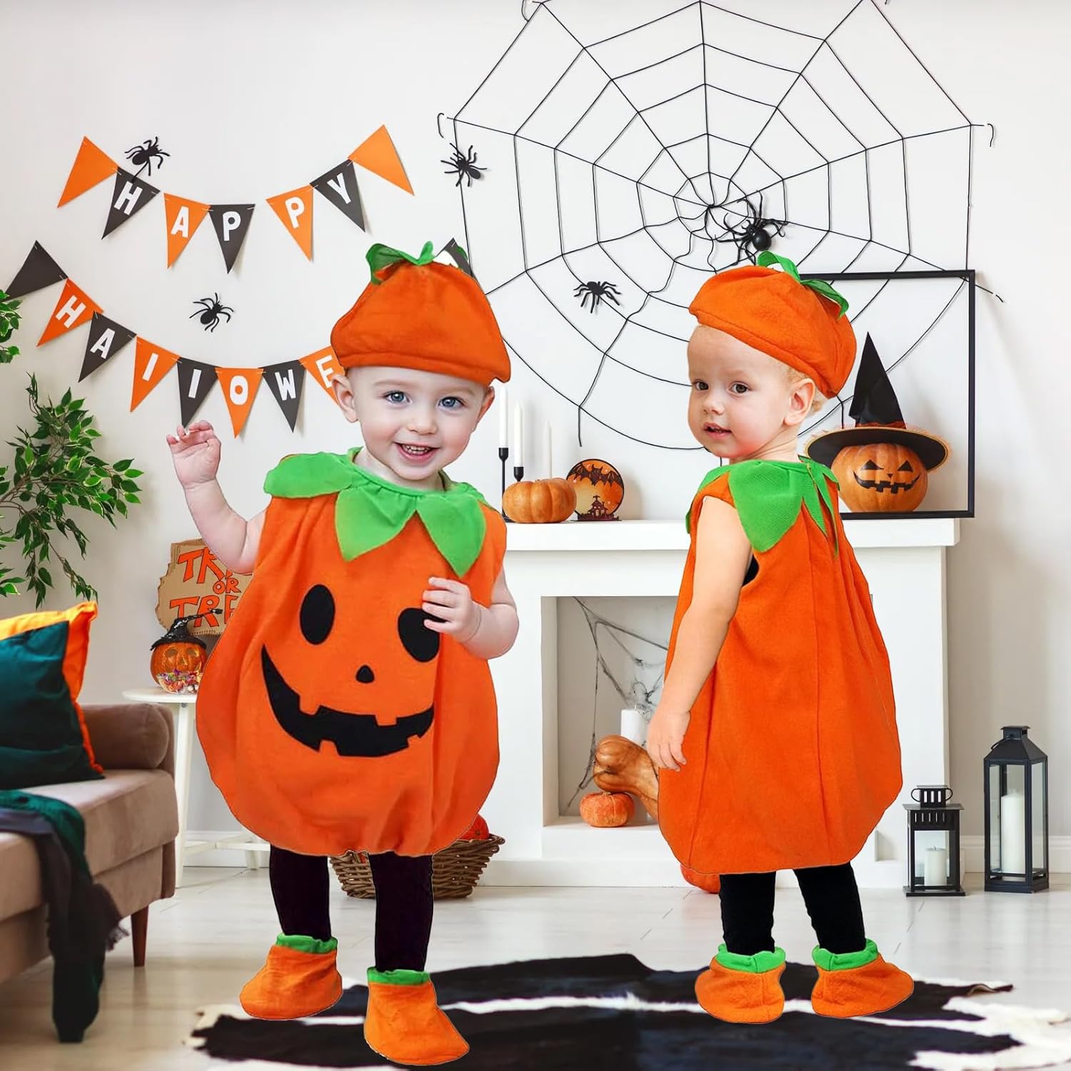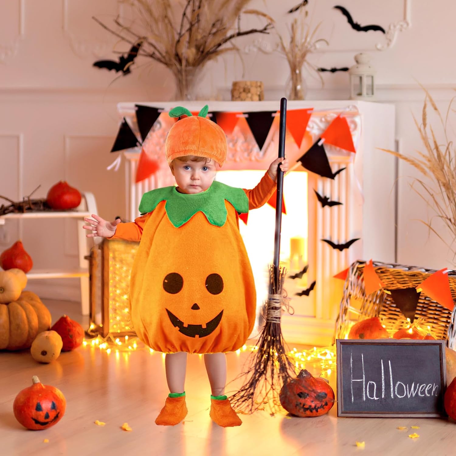 Costume da Zucca per Neonato Bambini, Costume da Zucca di Halloween, Vestito da Pumpkin con cappello e delle, Vestito Bambino Pagliaccetto per Halloween, Carnevale, Cosplay