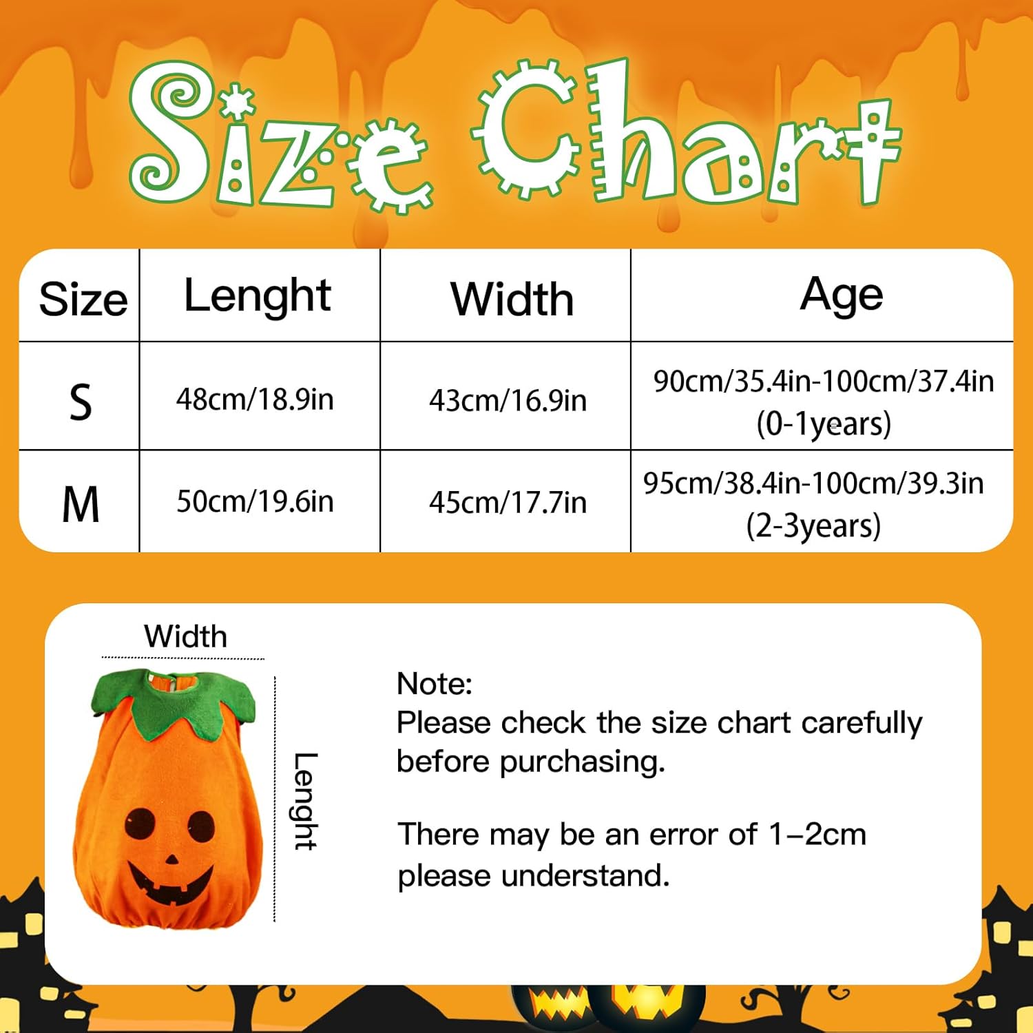 Man erhält hier für wenig Geld ein gutes Kürbis-Kostüm für Kleinkinder. Wir haben große S eigentlich für unsere neun Monate alte Tochter bestellt (gemäß Angaben ja für Kinder von 0-1 Jahre) und es ist aber definitiv zu groß. Die große Schwester hat es also anprobiert und ihr hat es noch einigermaßen gepasst, nur der Hut ist etwas eng - und meine Tochter ist nun 3,5 Jahre alt und durchschnittlich groß für ihr Alter. Meine kleinen Tochter wird es dann kommendes Jahr im Herbst tragen. Die Qualität ist nicht besonders gut, aber für den Preis in Ordnung.