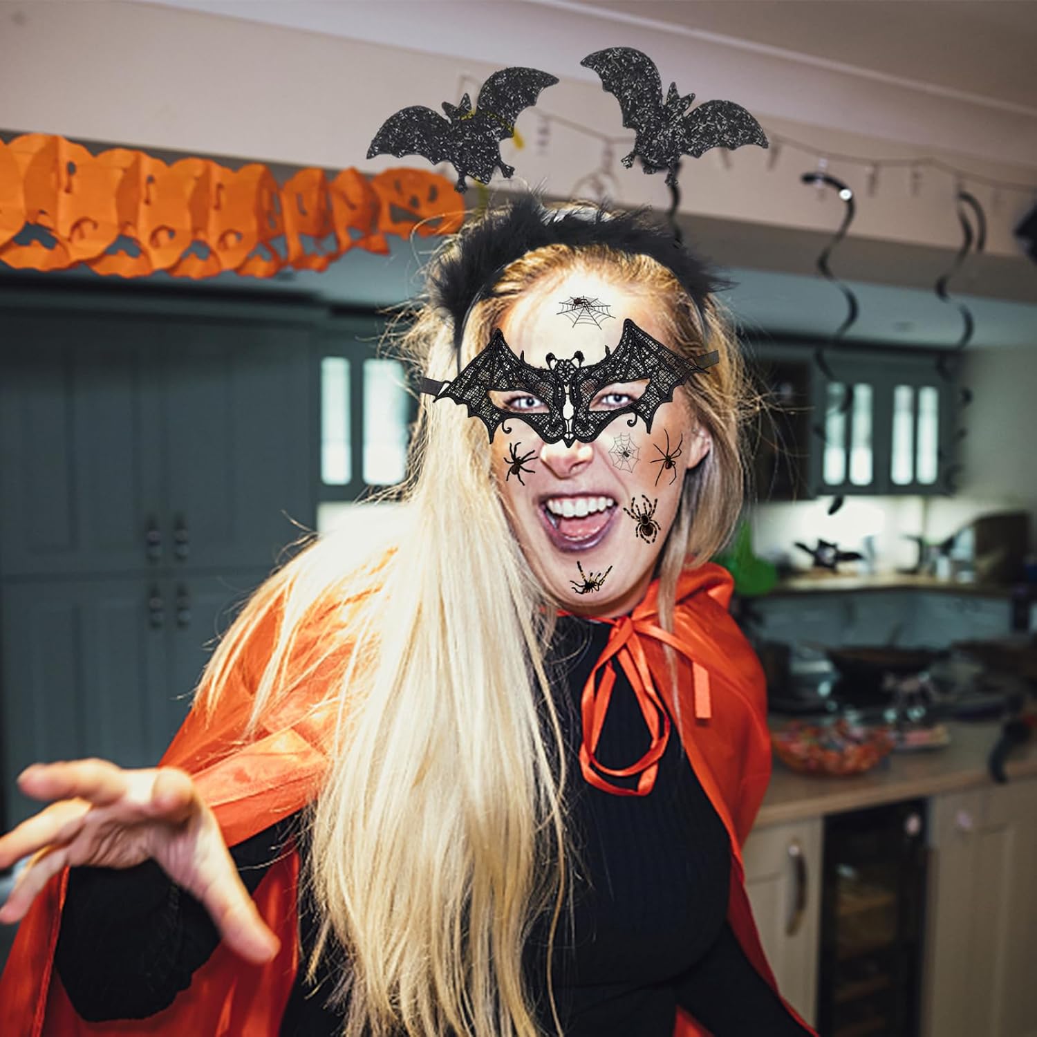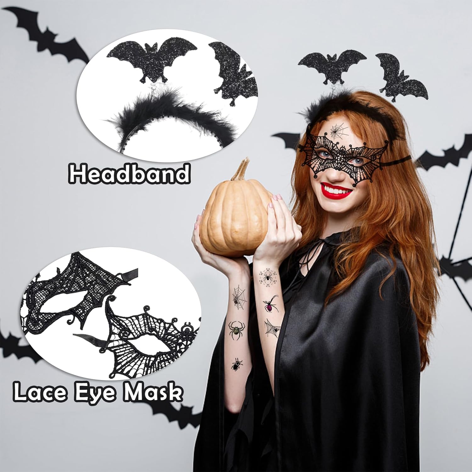 Costume di Halloween da donna, accessorio steampunk, guanti in pizzo, collana in pizzo gotico, maschere veneziane, balena, cerchietto per capelli da pipistrello, costume gotico per carnevale La confezione include: 1 paio di guanti in pizzo 1 collana in pizzo gotico. 1* Maschere Veneziane 1 cerchietto per capelli con pipistrello. Caratteristiche: Questa collana gotica è realizzata in pizzo di qualità e lega, rigoroso controllo di qualità, maggiore durata. Non è troppo stretto o troppo largo, aumenta il comfort e offre una buona sensazione, adatto per la maggior parte delle donne e delle ragazze. Questi guanti di pizzo, collana in pizzo gotico, maschere veneziane per molte attività e occasioni, come feste di Halloween, feste in maschera, balli per feste, cosplay, carnevale, compleanni, carnevali. Divertiti a mostrare la tua unicità.