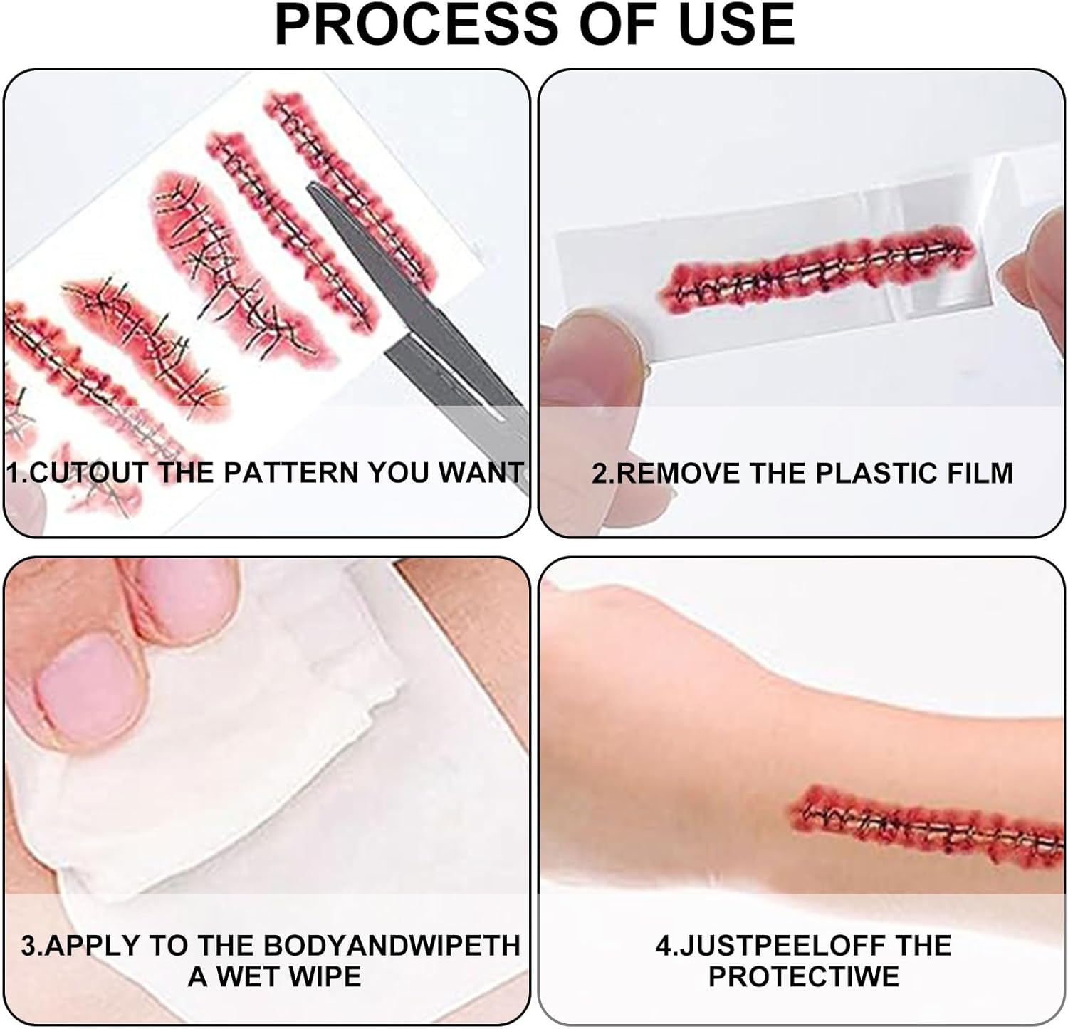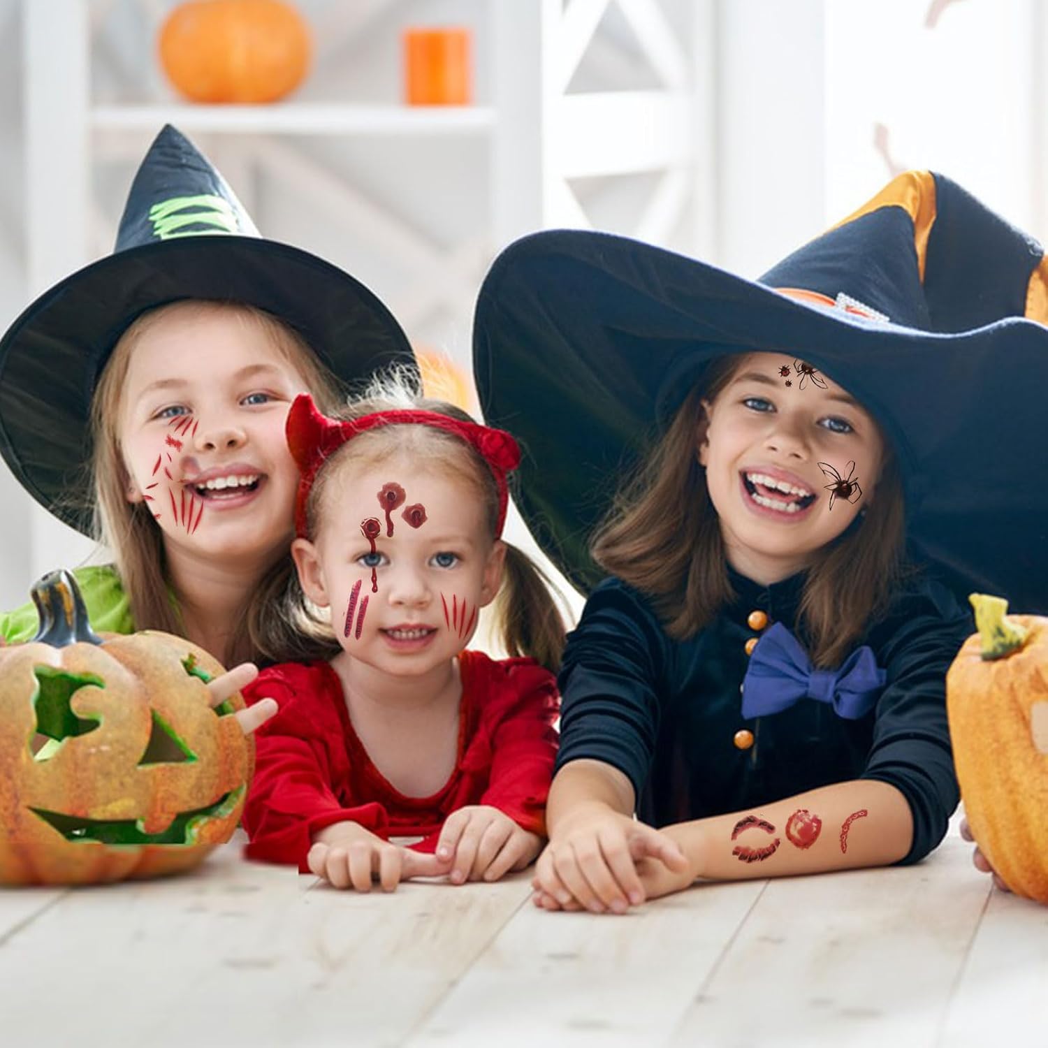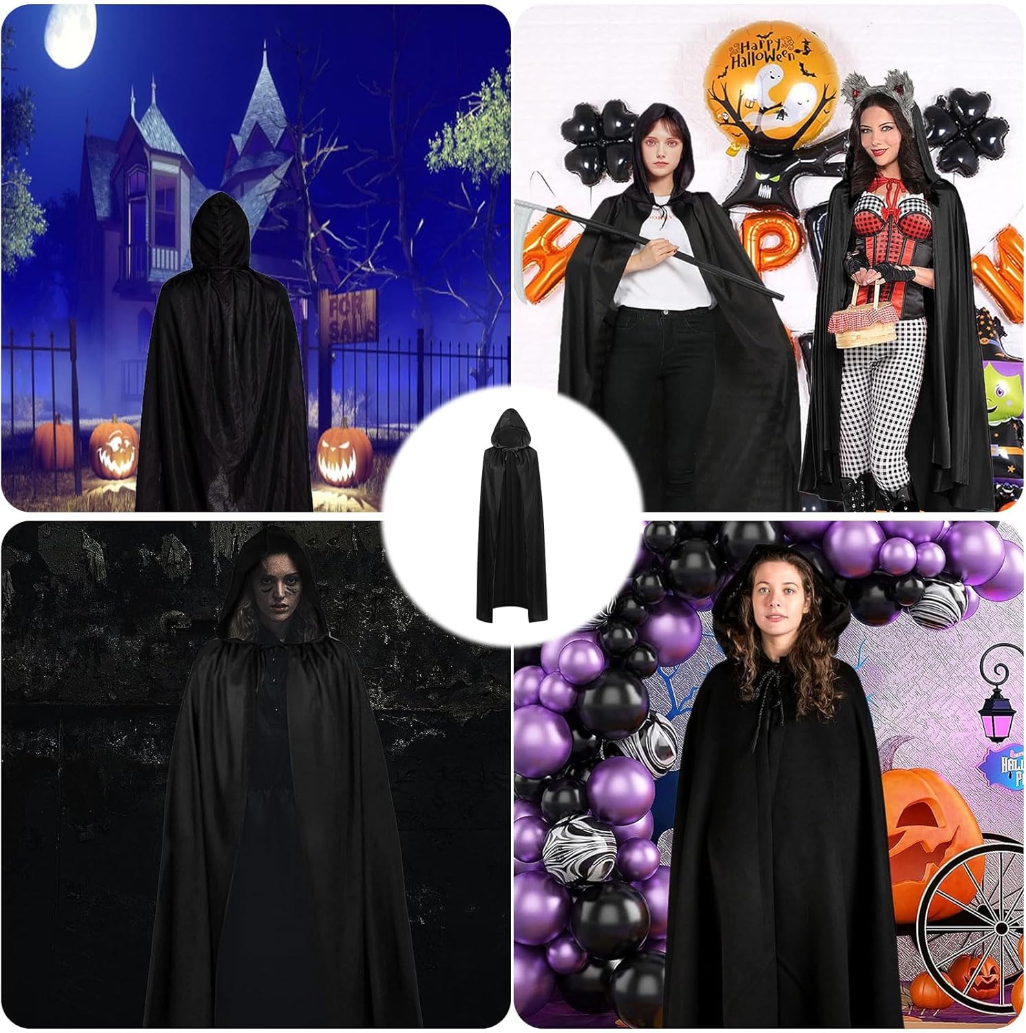 Costume di Halloween da vampiro nero con 20 ferite di Halloween Tatuaggi temporanei Costume da diavolo Mantello con cappuccio per la festa di cosplay di Halloween