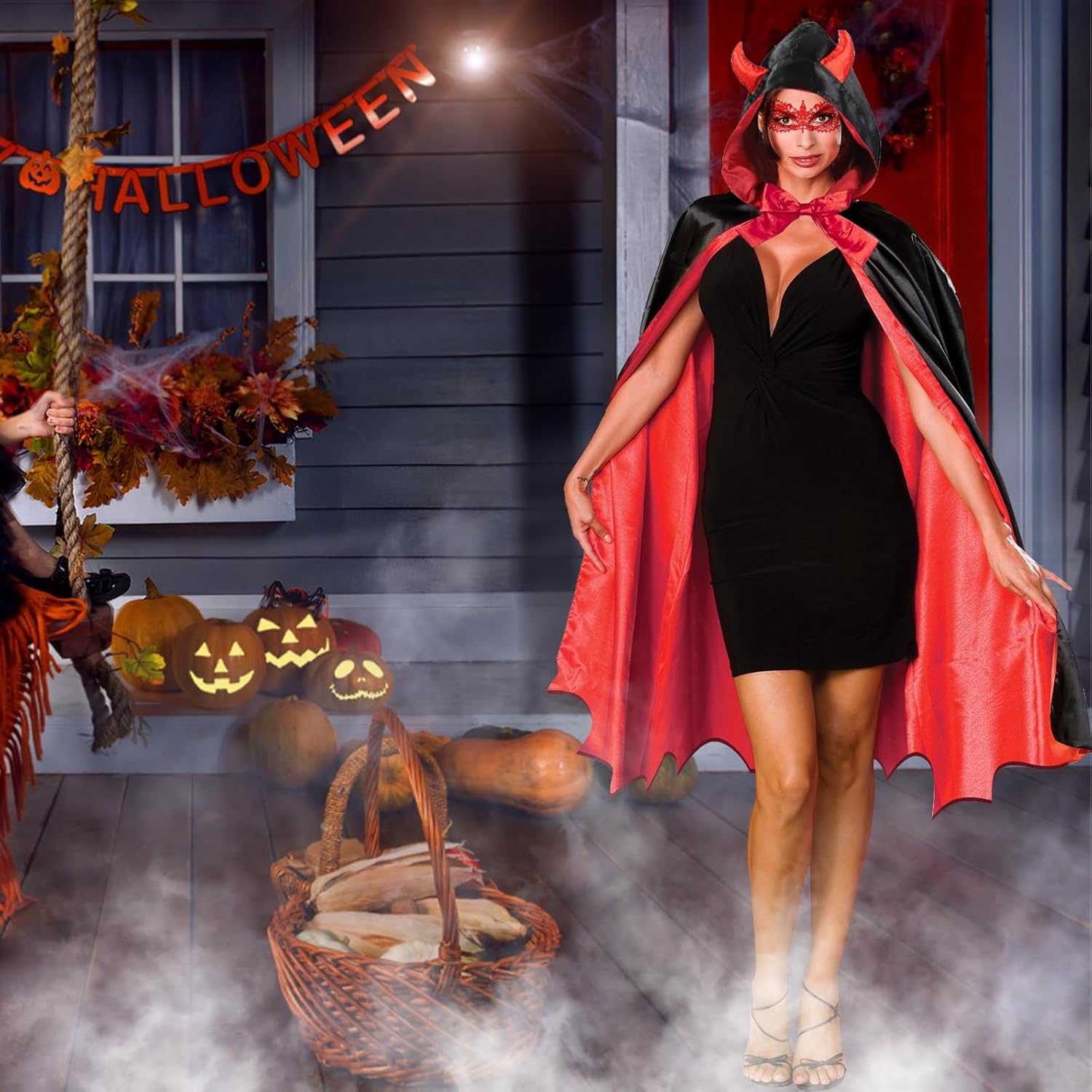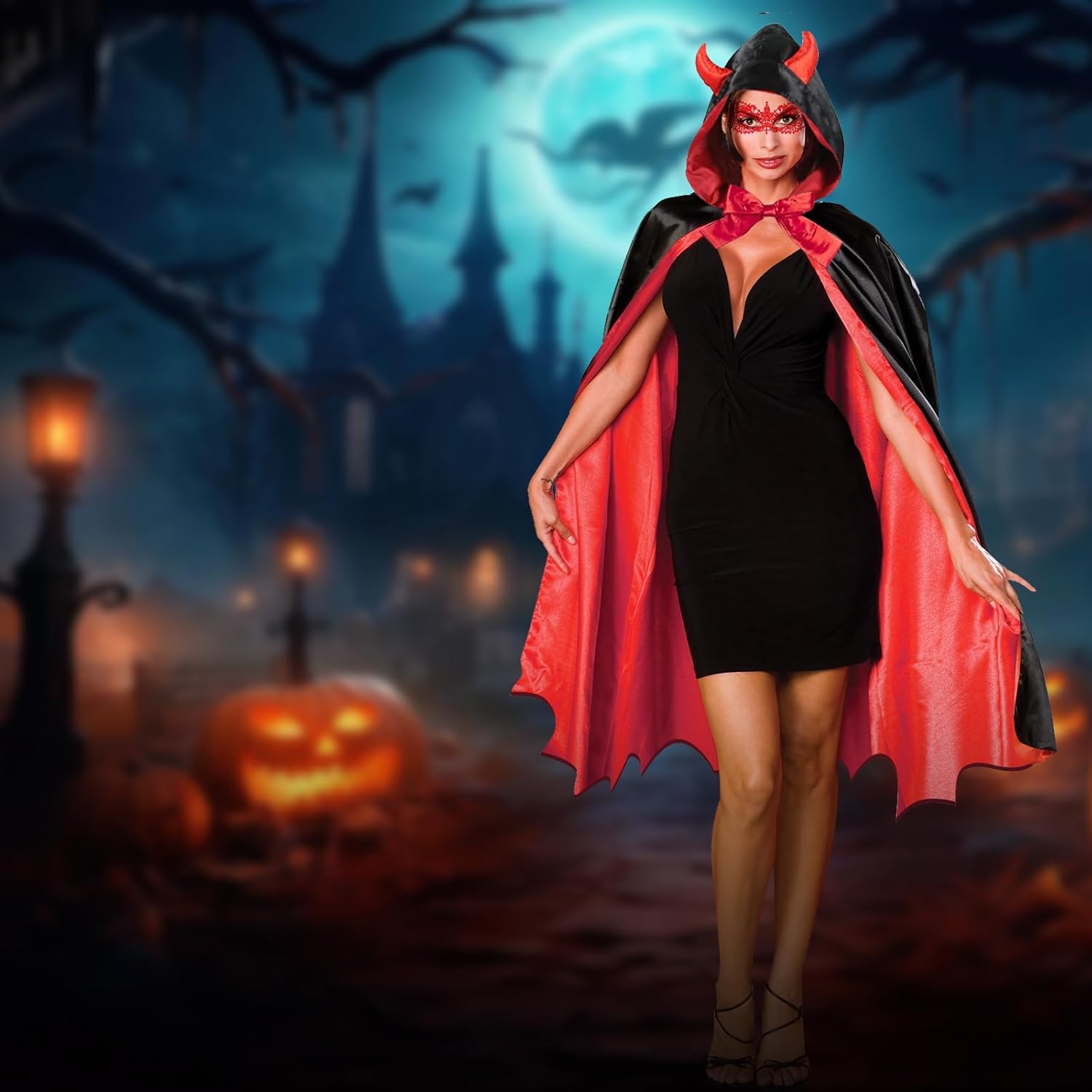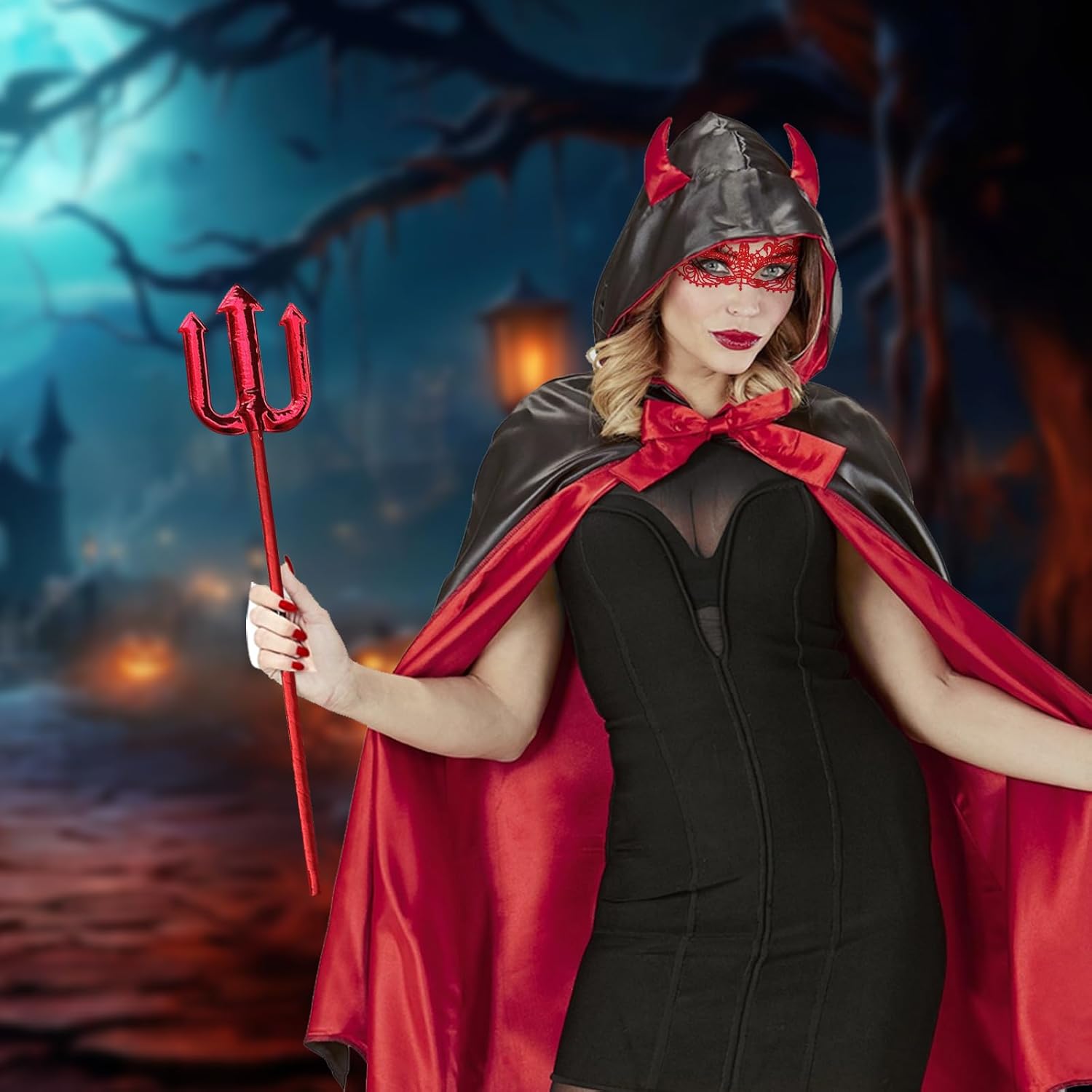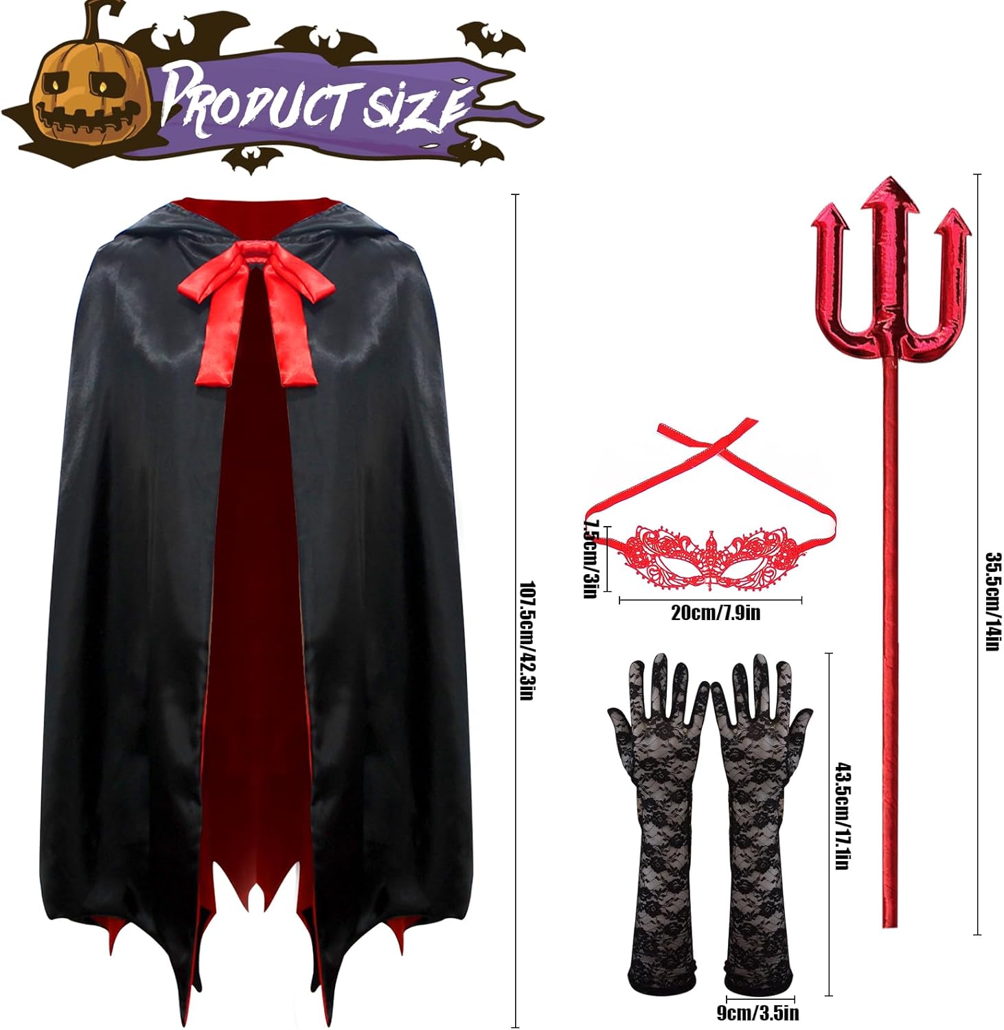 Descrizione prodotto Con il suo tessuto morbido e il design eccellente, questo mantello è ideale per Halloween, Mardi Gras, Carnevale, COSPLAY e altre occasioni.Con questo costume di Halloween, mostrati sexy e misterioso, ti distinguerai e sarai al centro dell'attenzione al ballo. Specifiche del prodotto Contenuto della confezione:Questo set di costumi di Halloween comprende 1 mantello, 1 paio di guanti di pizzo, 1 maschera di pizzo e 1 paio di forchette da diavolo. Colore del prodotto: come mostrato nell'immagine Dimensioni del prodotto: 30 x 15 x 3 cm Peso del prodotto: 390 g Avviso di sicurezza Nessuno