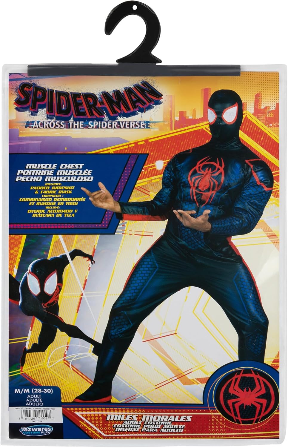 Tuffati nel Ragnoverso con il costume Qualux di Miles Morales. Ispirata al costume da ragno definitivo di Miles, questa tuta corposa ti trasformerà nel nuovissimo eroe ragno. È realizzato in poly jersey e imbottito con polyfill su braccia, corpo, gambe e tacchetti per scarpe. Presenta inoltre l'esclusivo simbolo del ragno di Miles sulla parte anteriore e posteriore del costume con una maschera in tessuto per mantenere la tua identità al sicuro. Colleziona questo costume di Miles Morales Qualux e dimostra che chiunque può essere Spider-Man. Prodotto Marvel con licenza ufficiale. Da 8 anni. Include: (1) costume Miles Morales Qualux (adulto). Da 8 anni. Combinazione: cappuccio/maschera