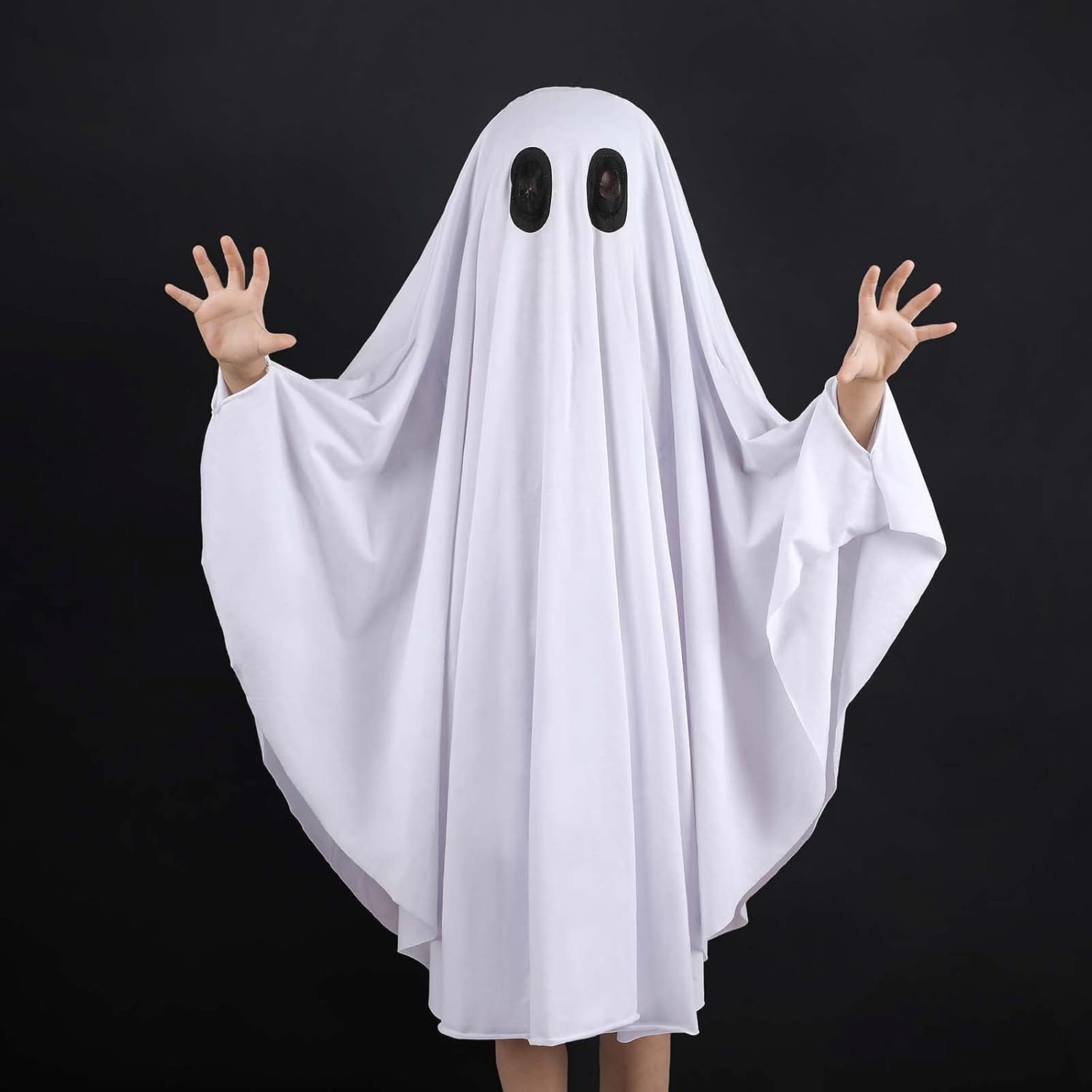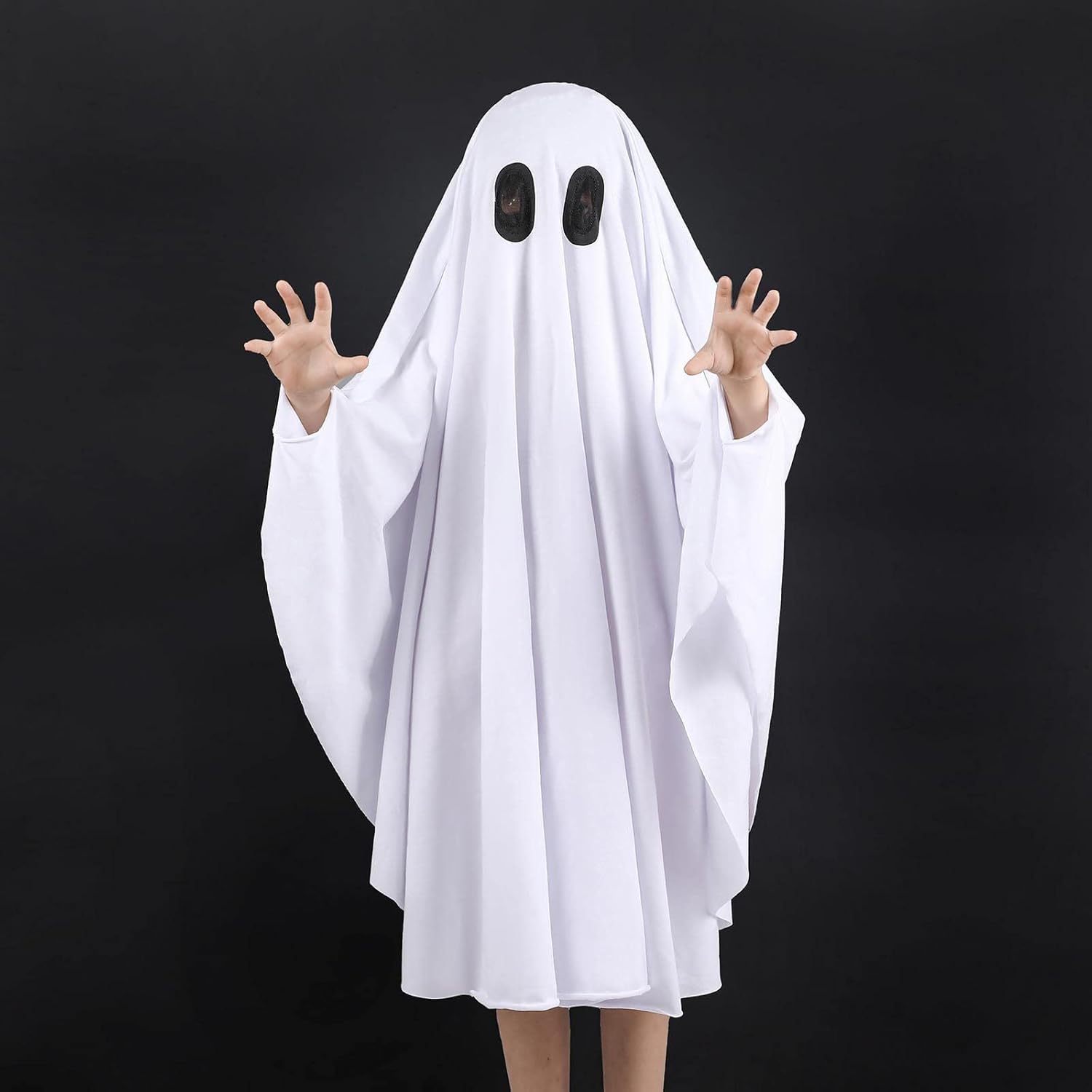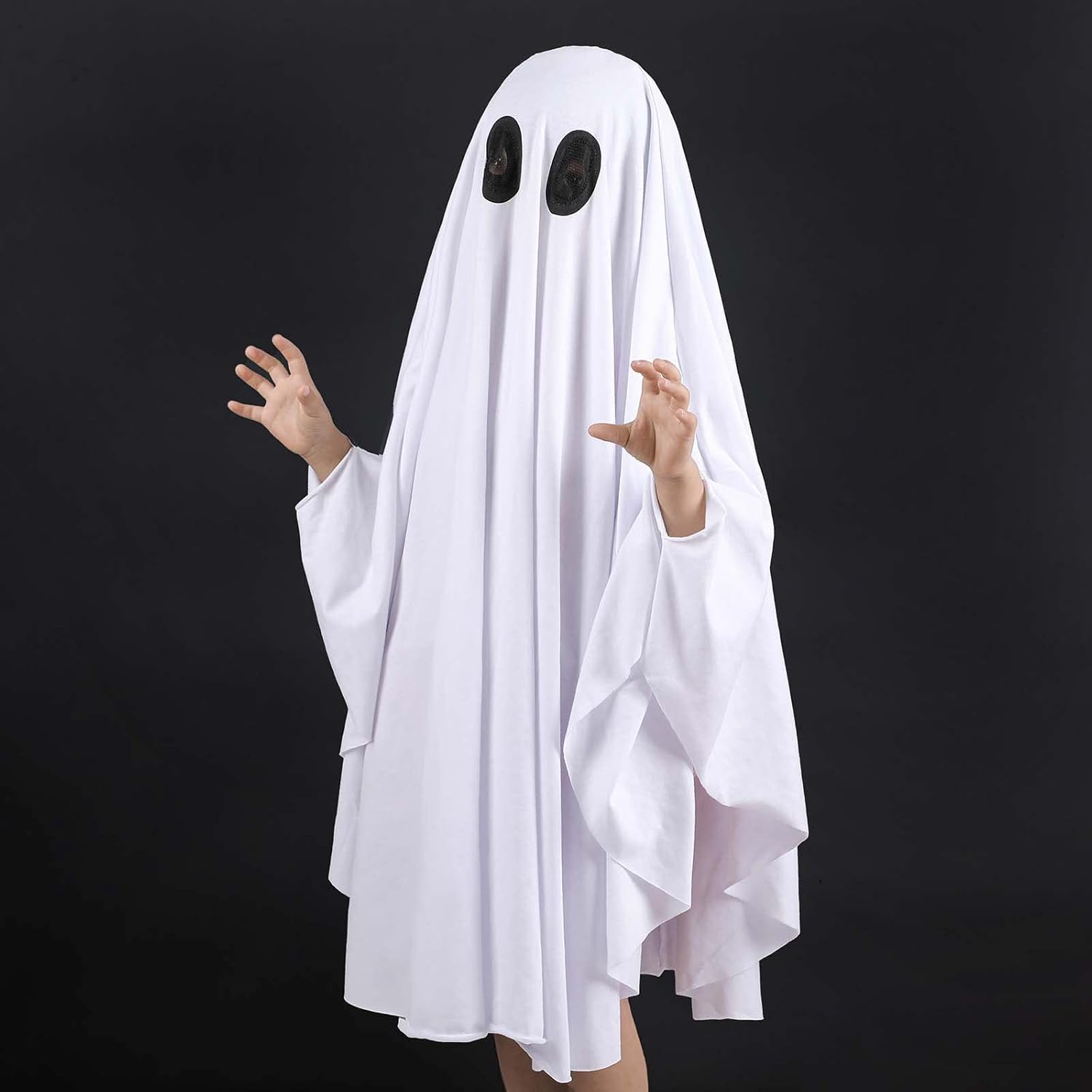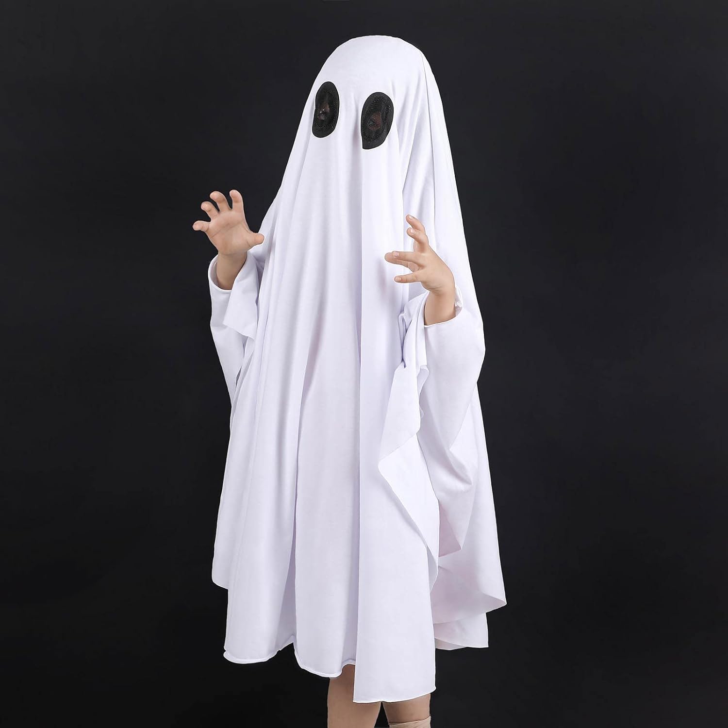 Si tratta di un costume da fantasma bianco per bambini, che può essere utilizzato anche come abbigliamento da festa, contiene mantello da brivido lavorato a maglia con cappuccio, comodo, adatto per giochi di ruolo di Halloween e travestimento per bambini