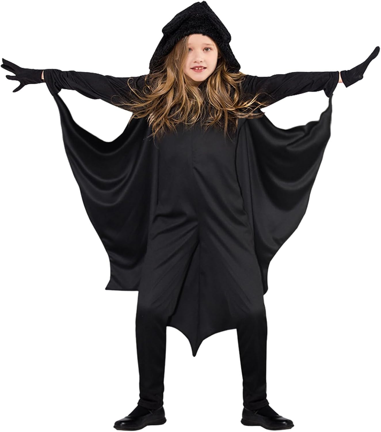 Si tratta di un costume da pipistrello per ragazze, che può essere utilizzato anche come costume di carnevale, include mantello da vampiro con tappi, guanti e tuta, in stile festa spaventosa, adatto per cosplay di Halloween